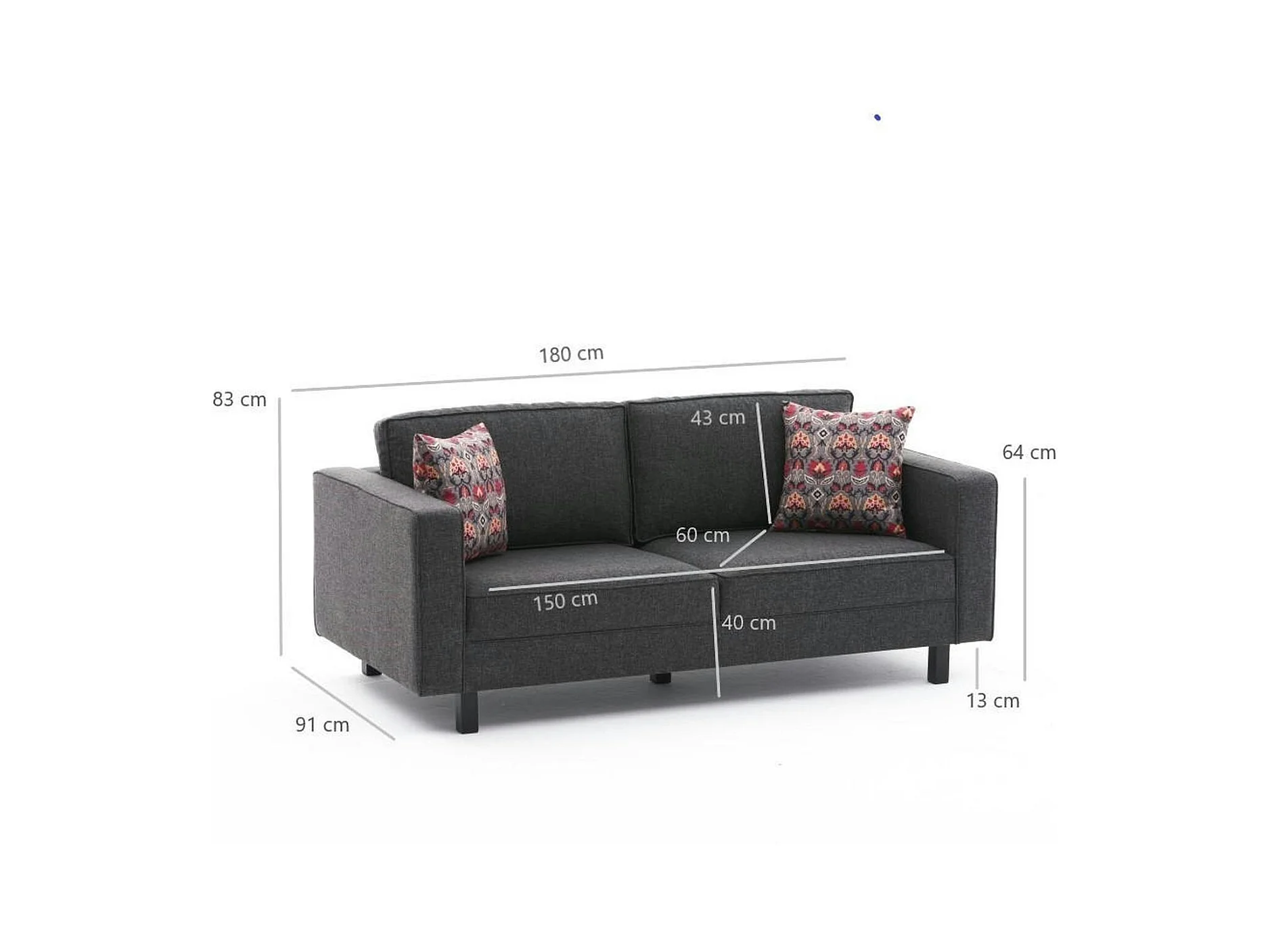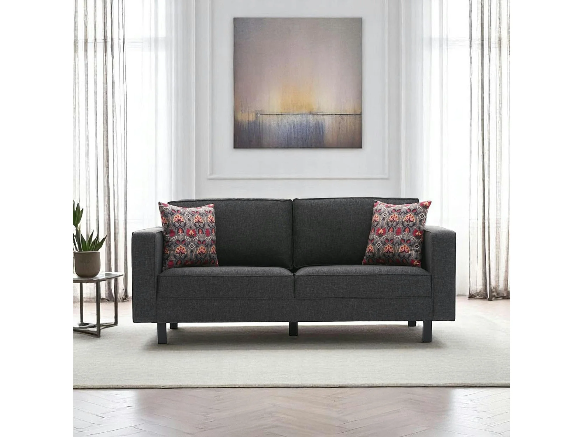 Canapé 2 places anthracite - pieds droits CORTONA