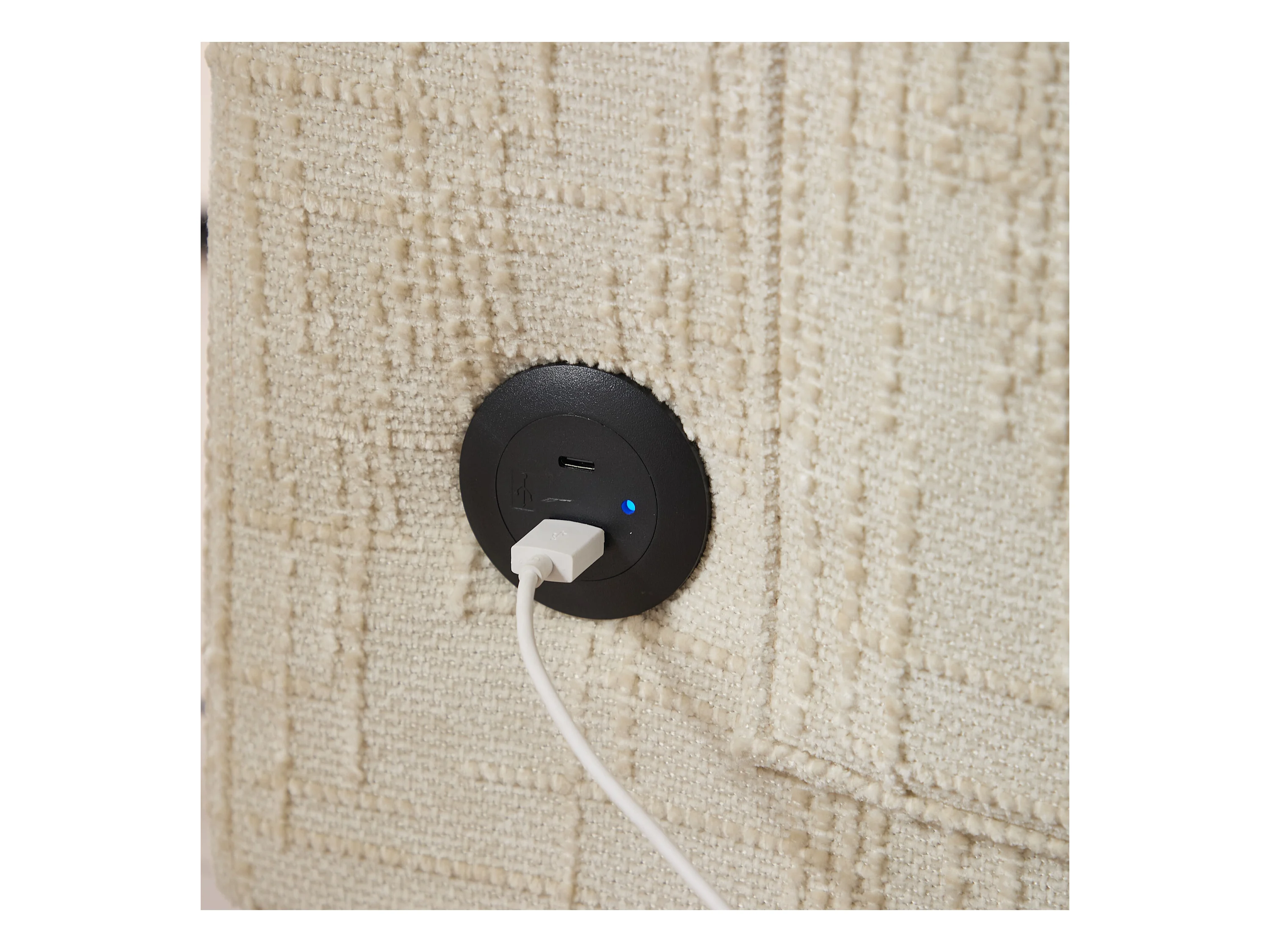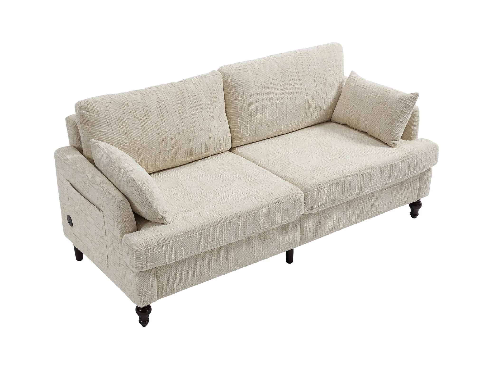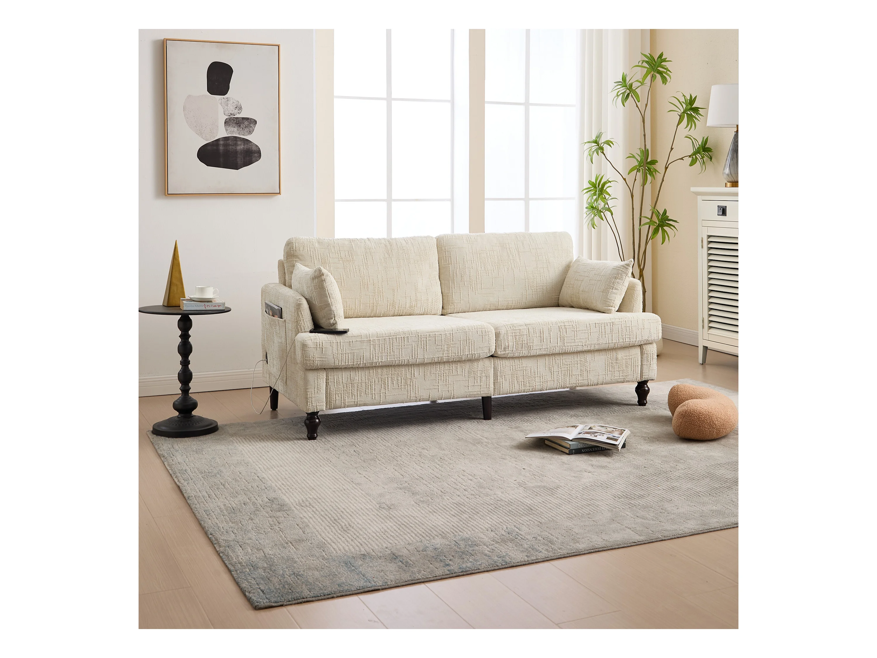 Canapé 2 places avec éclairage LED et port USB, pieds en bois - tissu chenille beige