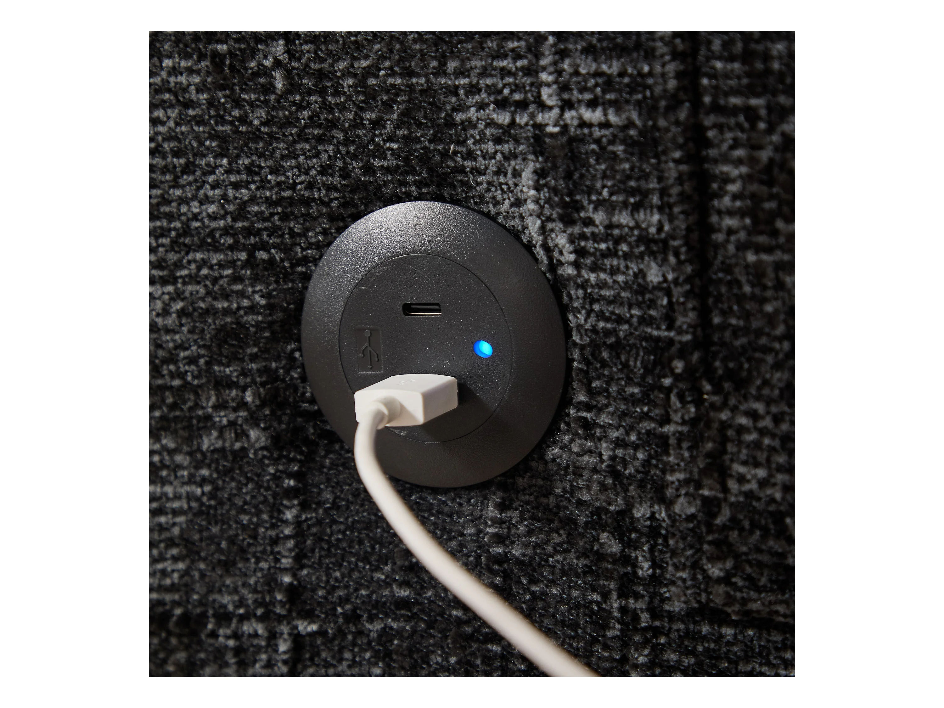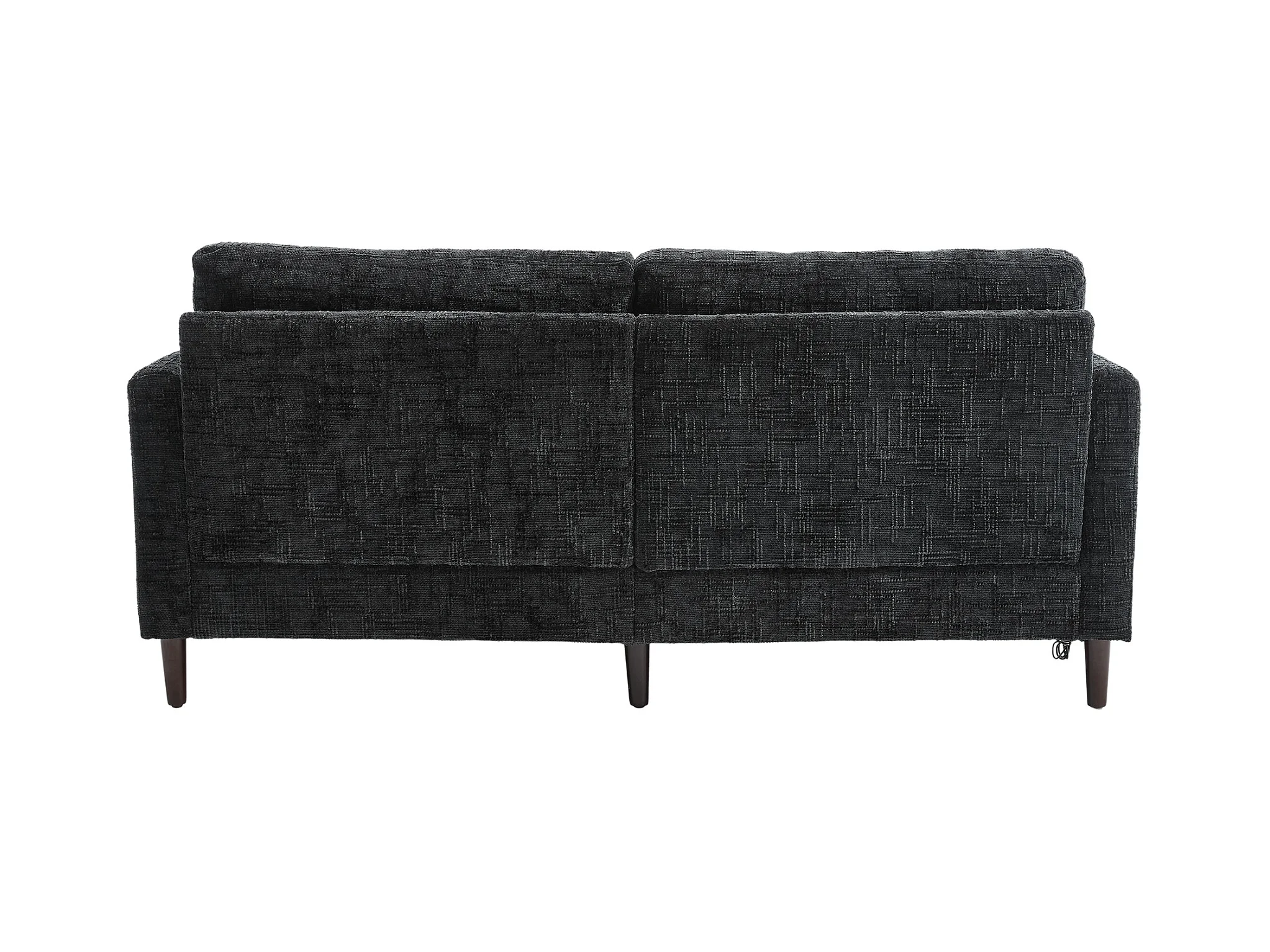 Canapé 2 places avec éclairage LED et port USB, pieds en bois - tissu chenille noir