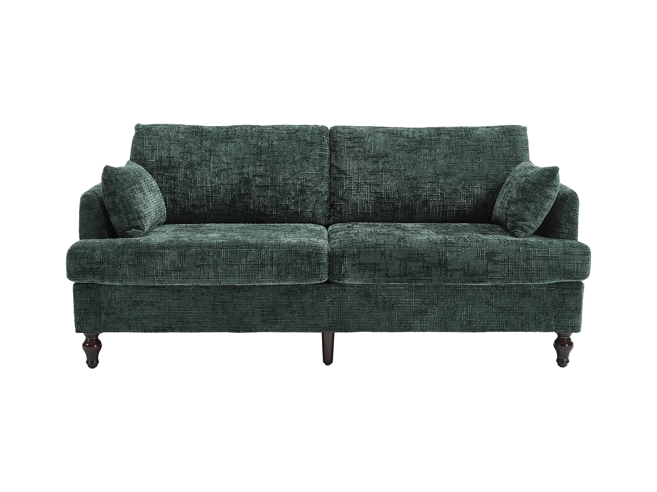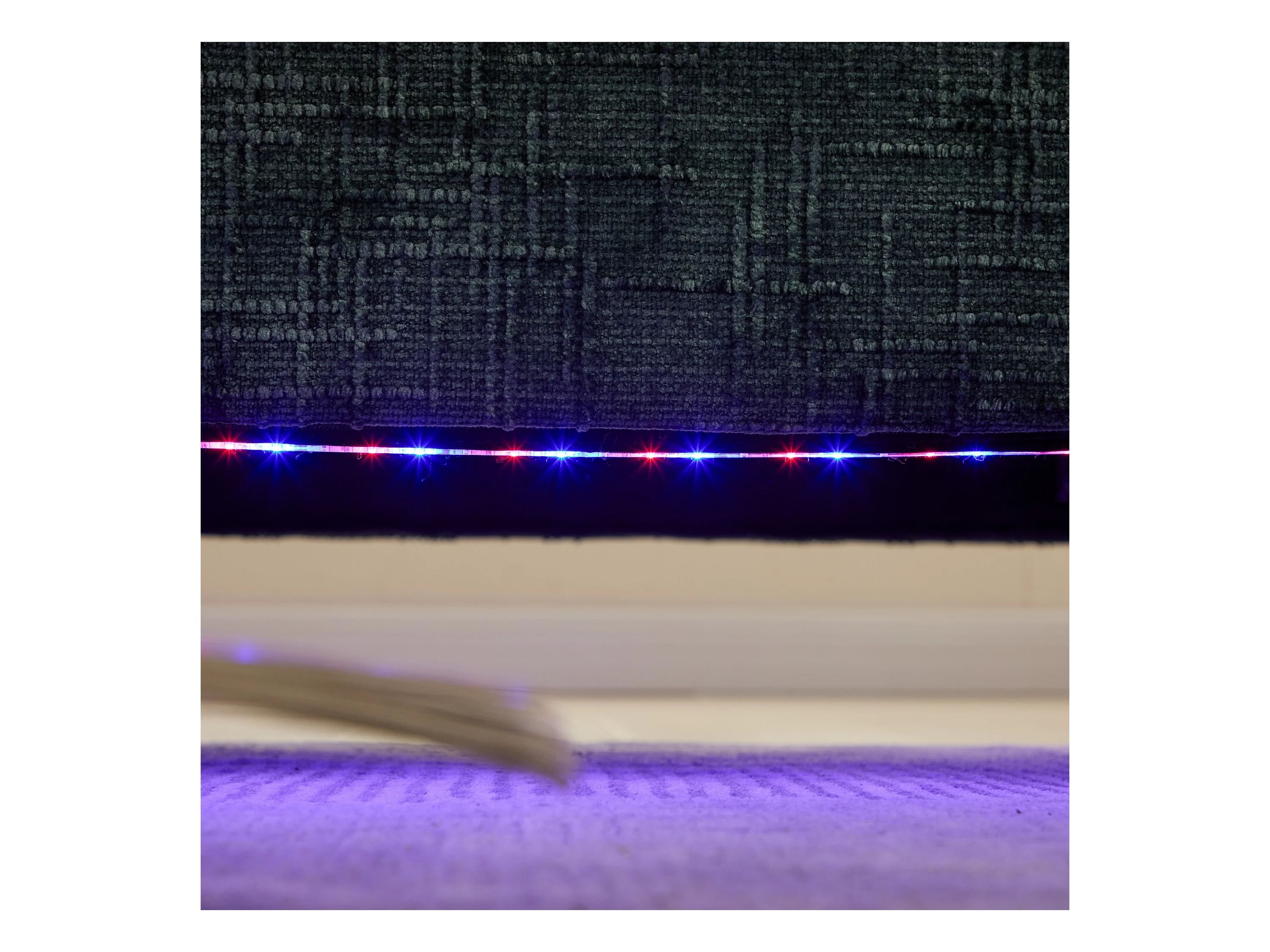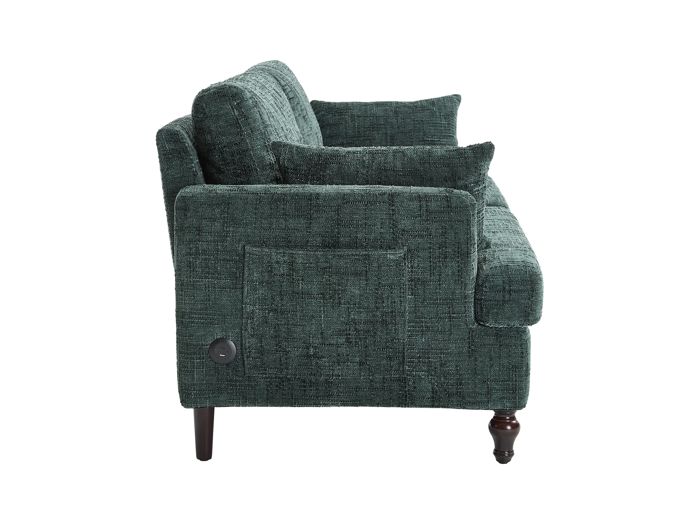 Canapé 2 places avec éclairage LED et port USB, pieds en bois - tissu chenille vert foncé