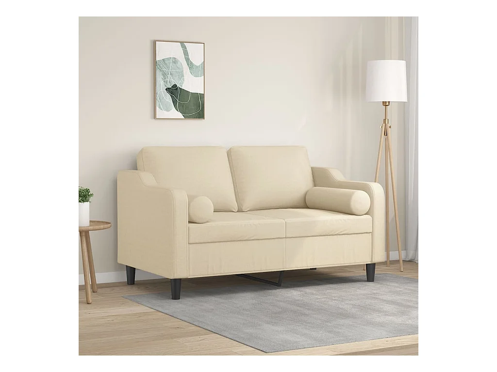 Canapé 2 places avec oreillers décoratifs crème 120 cm tissu REO99196