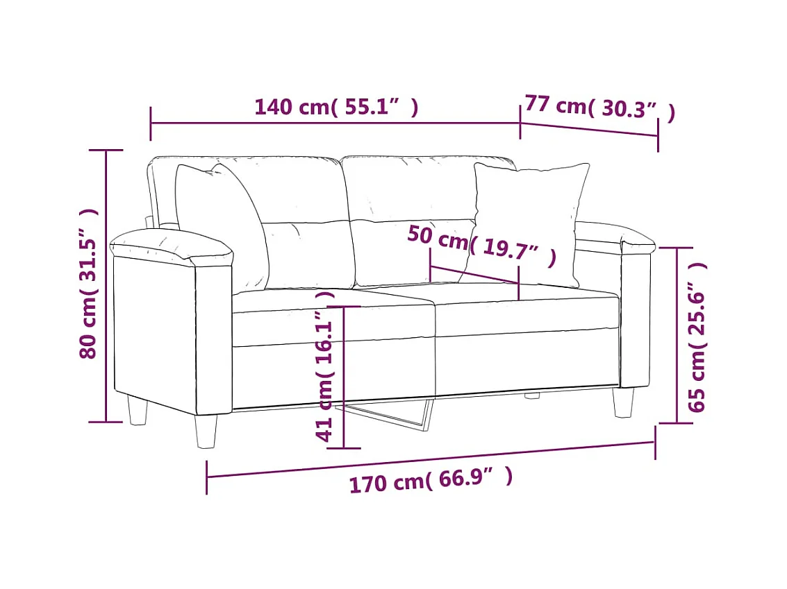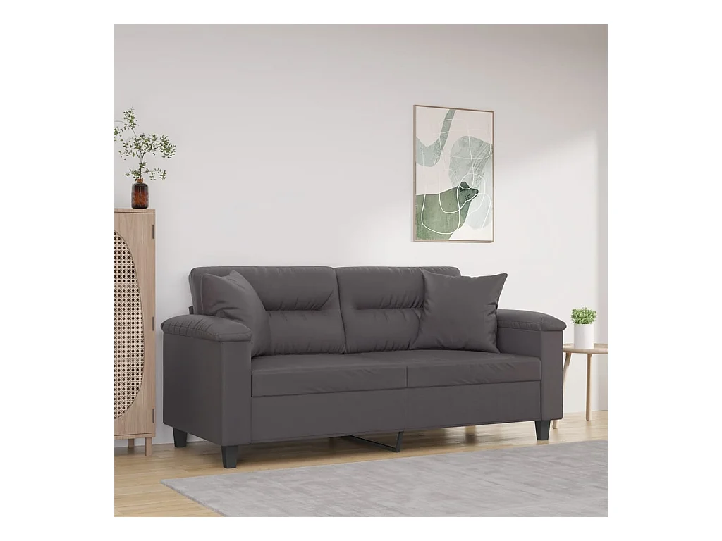 Canapé 2 places avec oreillers décoratifs gris 140cm similicuir