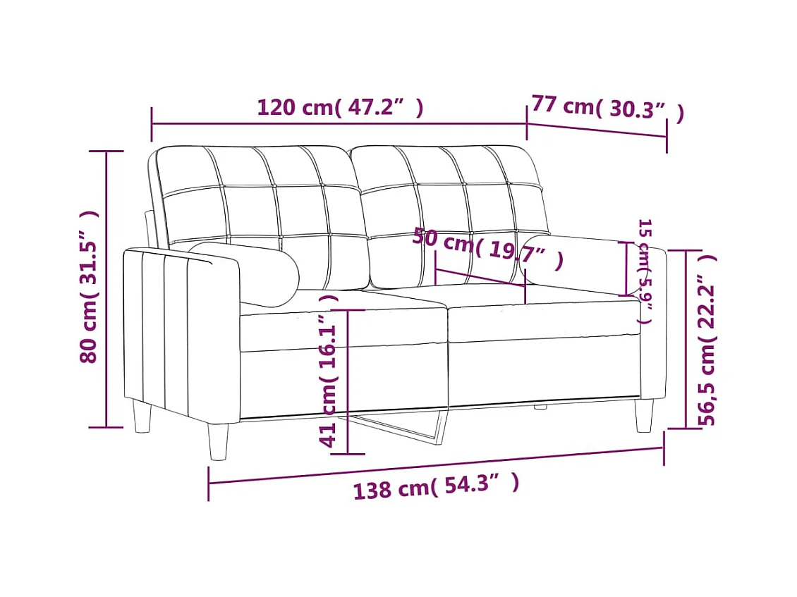 Canapé 2 places avec oreillers décoratifs marron 120 cm tissu