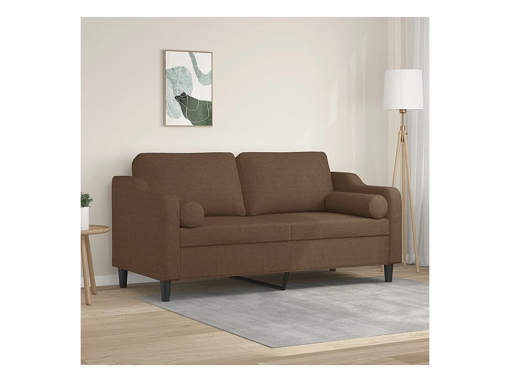 Canapé 2 places avec oreillers décoratifs marron 140 cm tissu