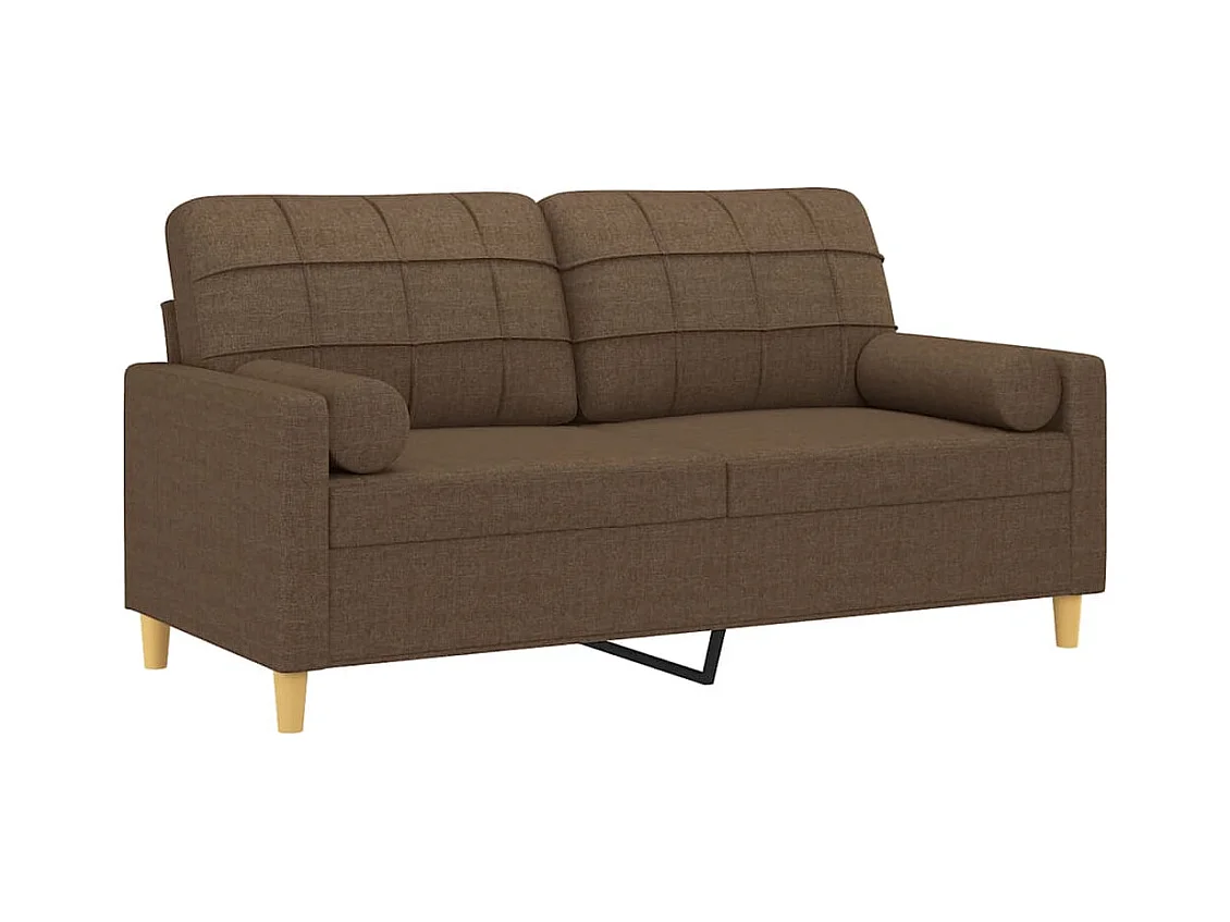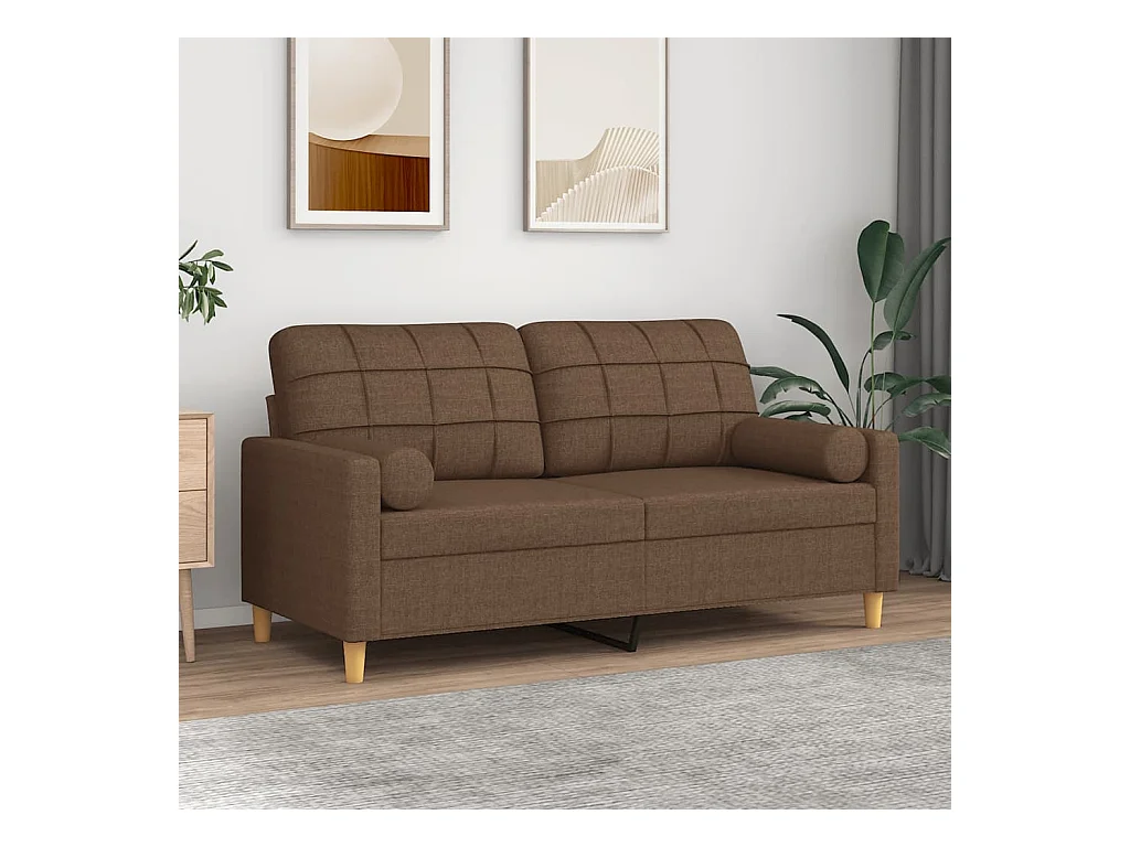 Canapé 2 places avec oreillers décoratifs marron 140 cm tissu
