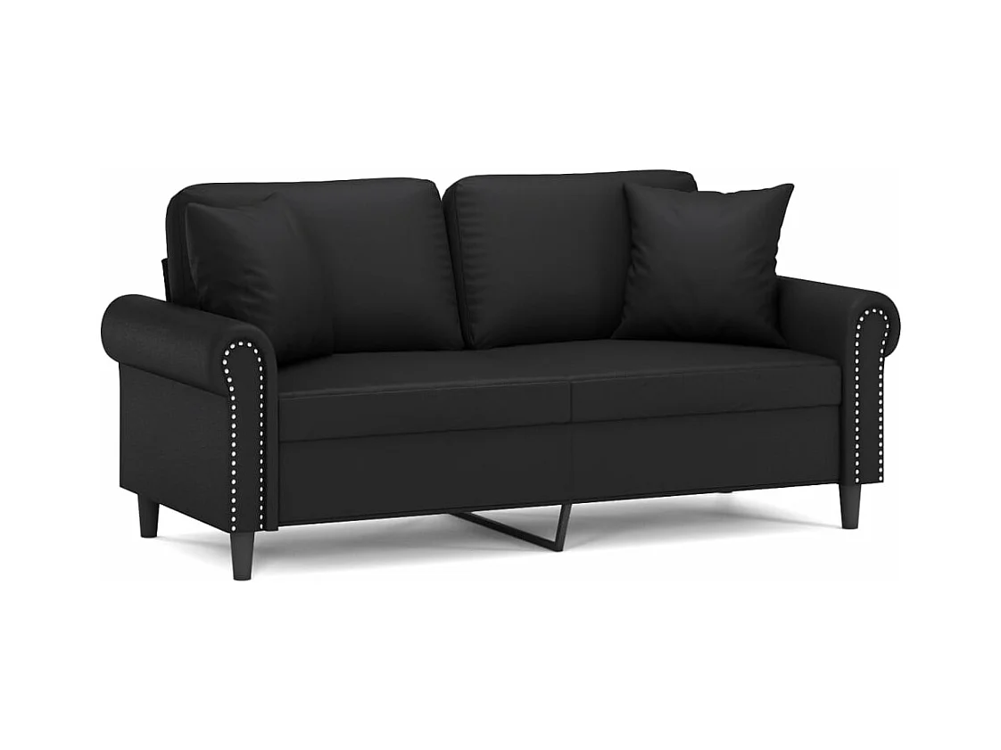 Canapé 2 places avec oreillers décoratifs noir 140cm similicuir REO30194