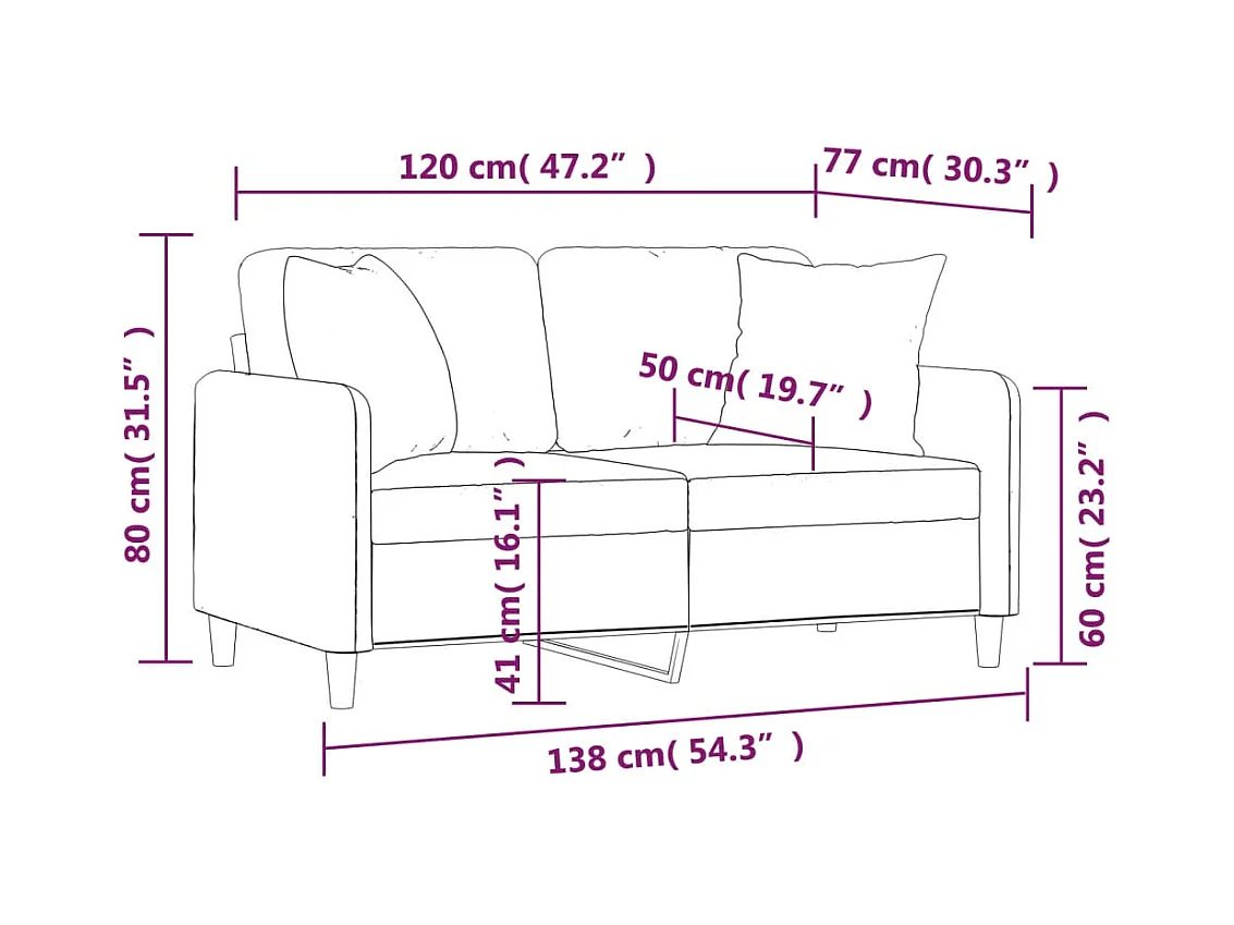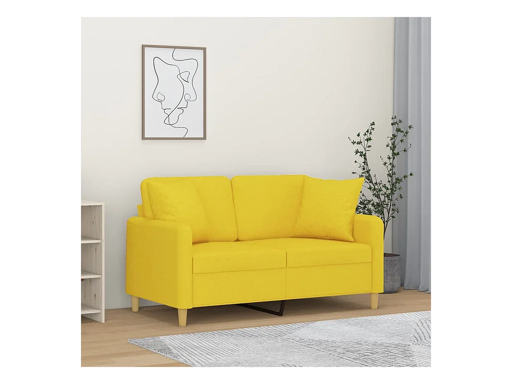 Canapé 2 places avec oreillers jaune clair 120 cm tissu