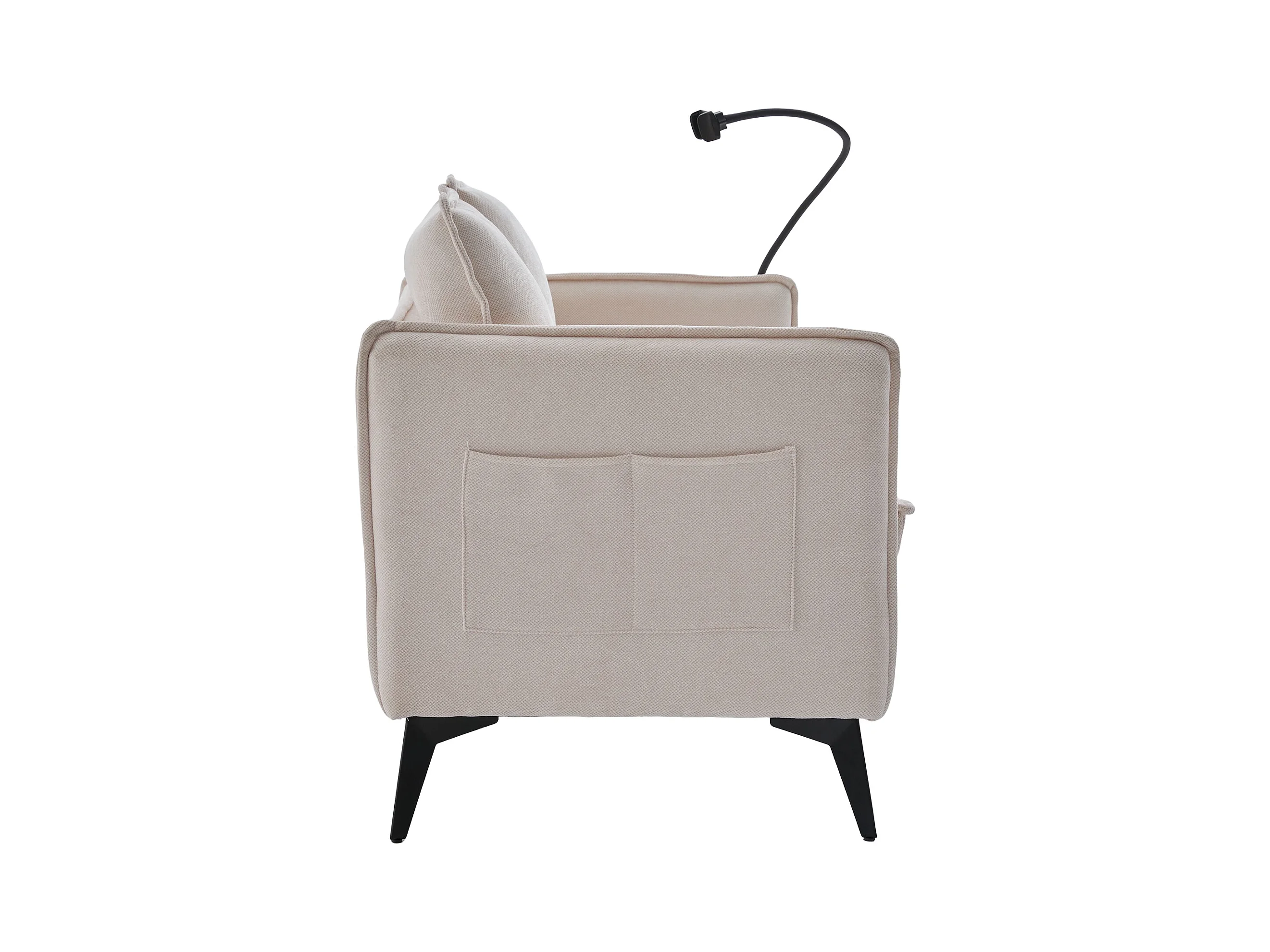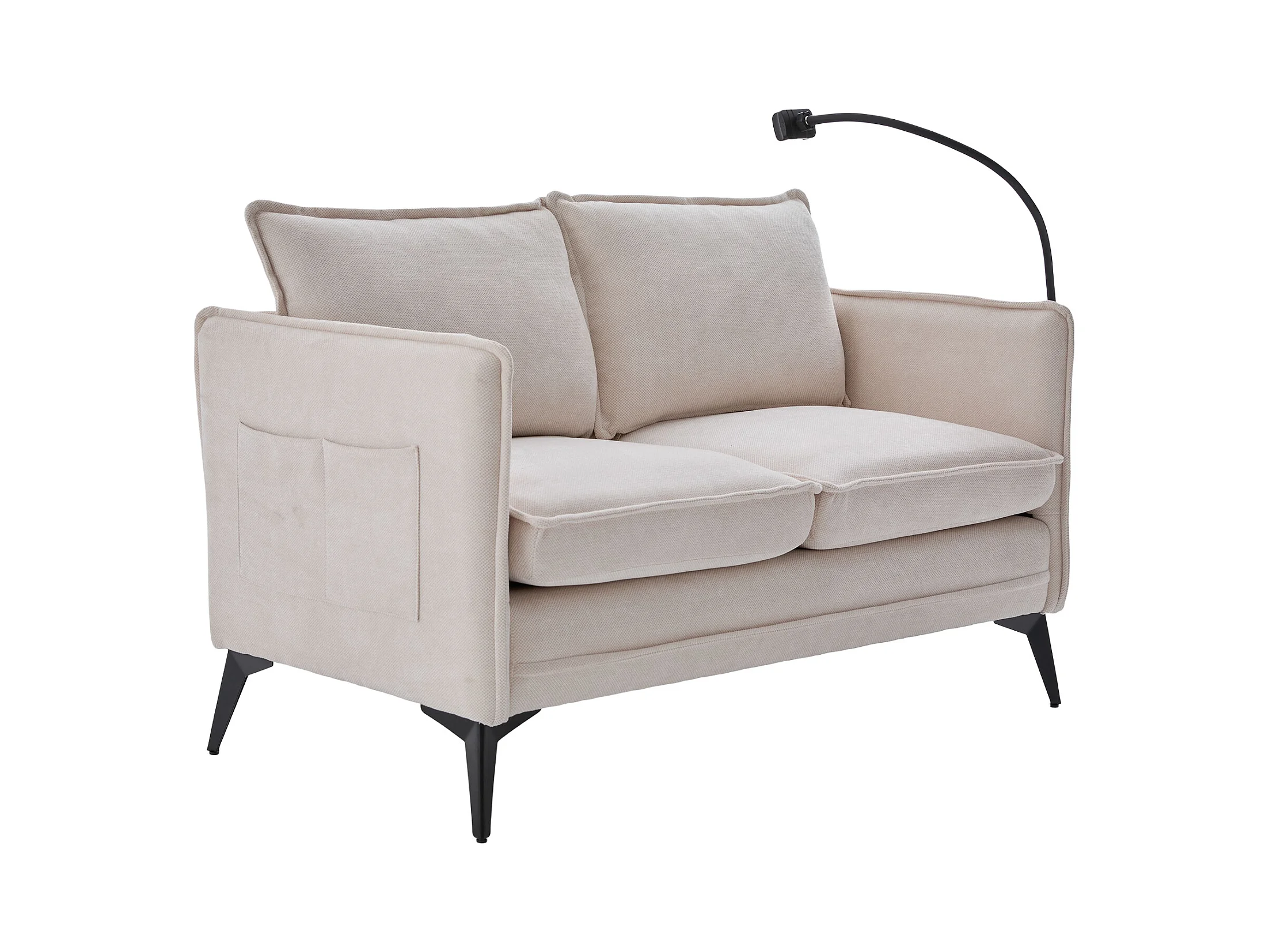 Canapé 2 places beige - Canapé avec poches latérales de rangement et support pour téléphone - pour salon et chambre