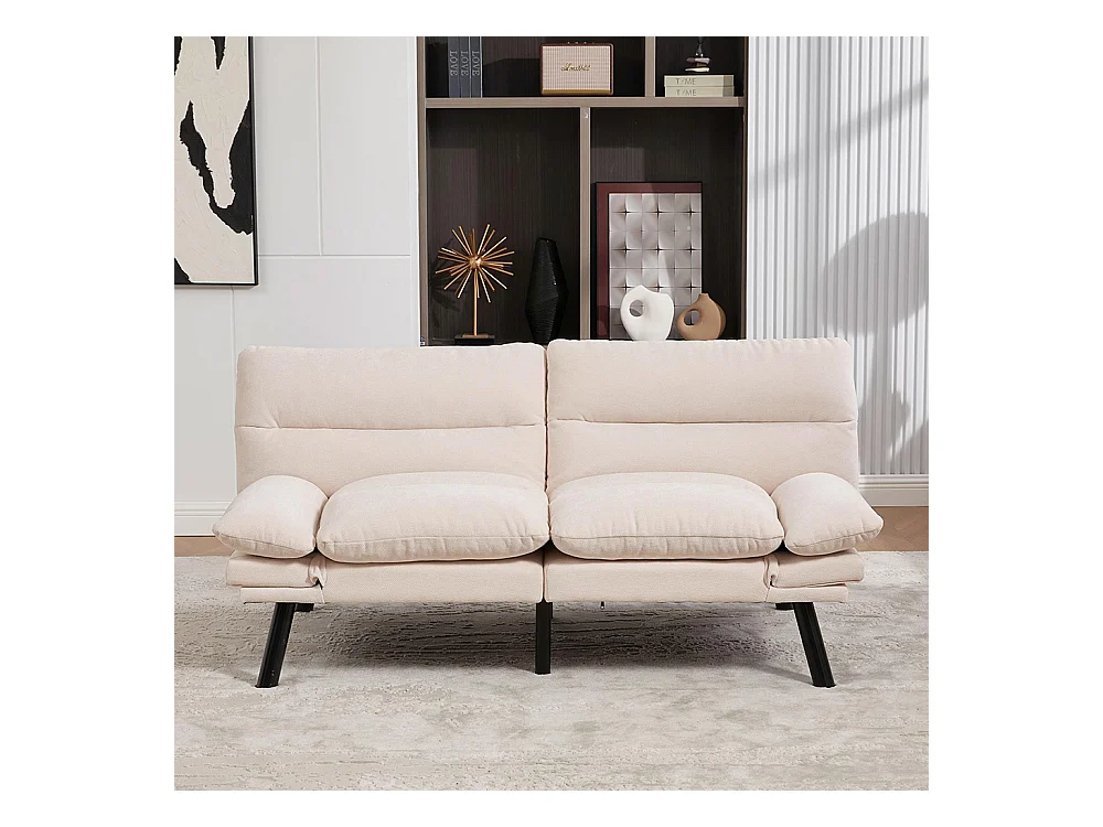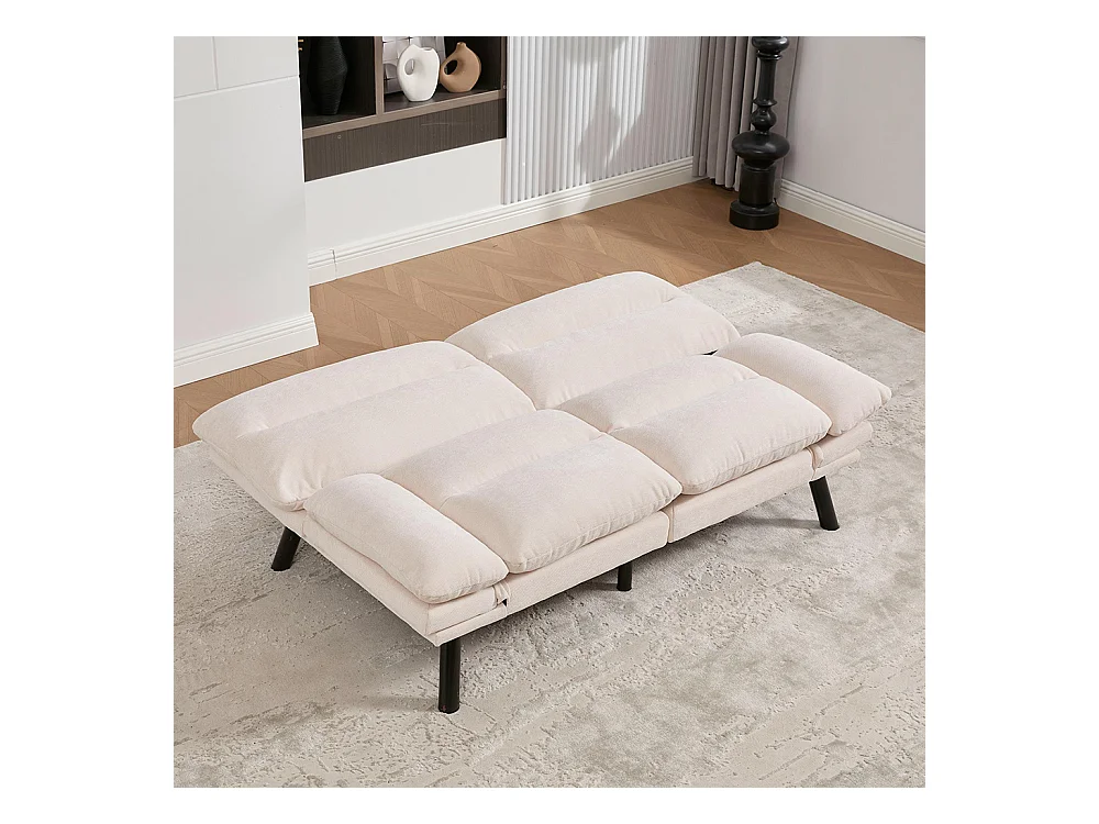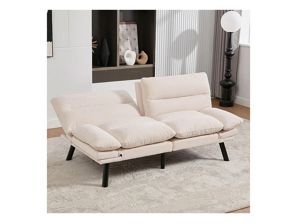 Canapé 2 places chenille ergonomique assise dossier accoudoirs réglables pieds métal confort stable beige
