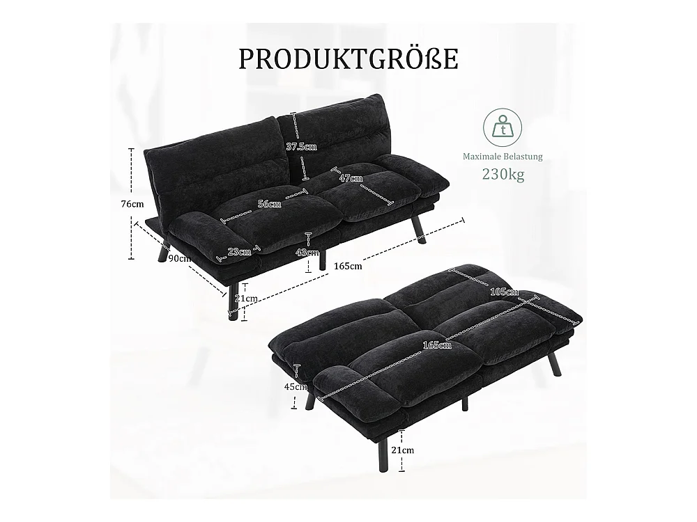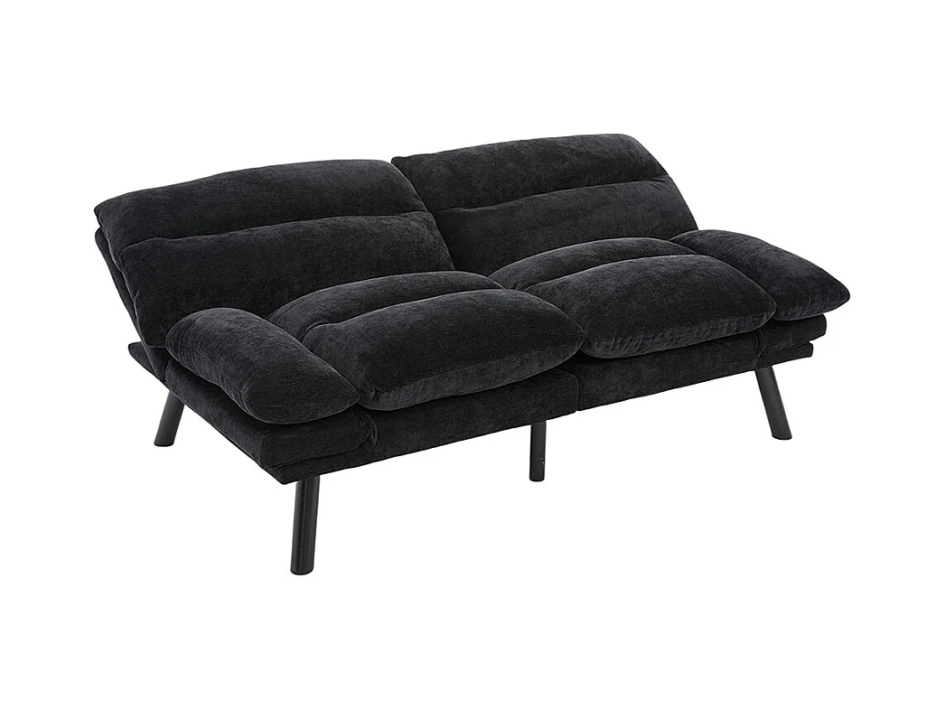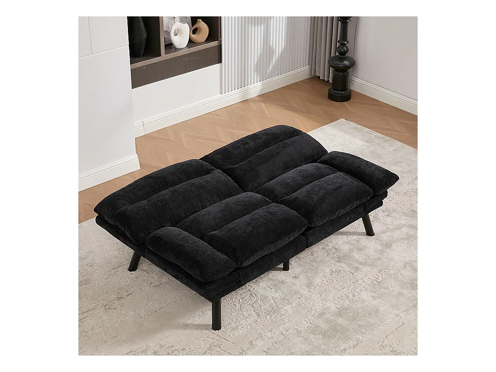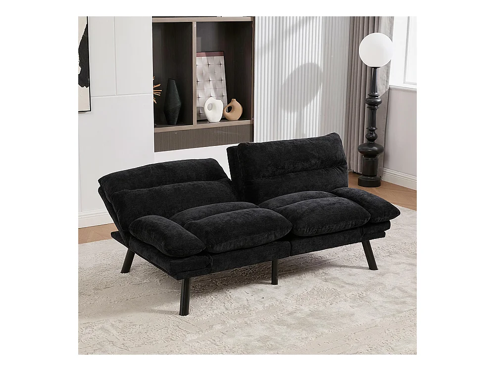 Canapé 2 places chenille ergonomique assise dossier accoudoirs réglables pieds métal confort stable noir