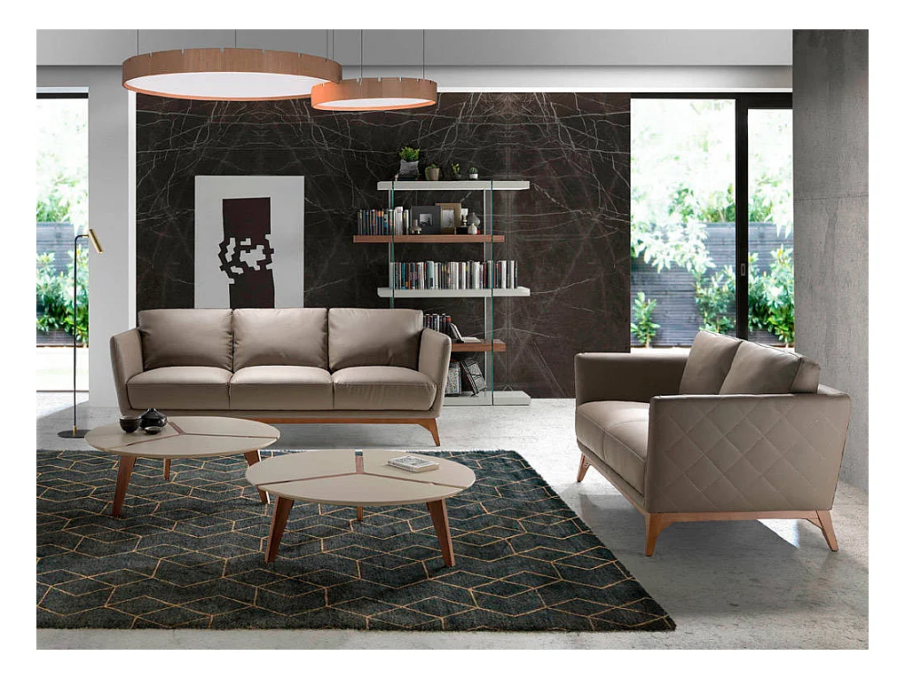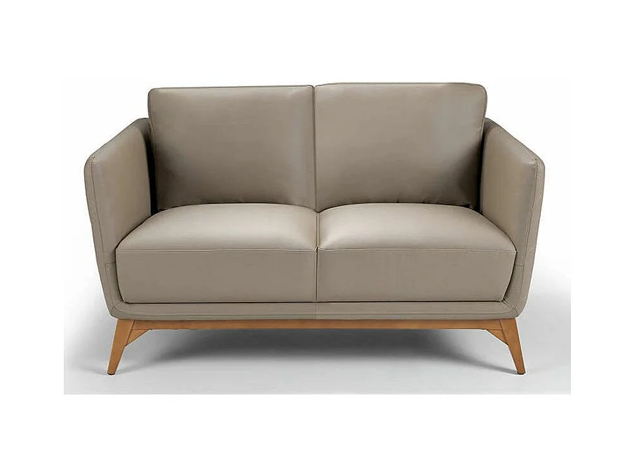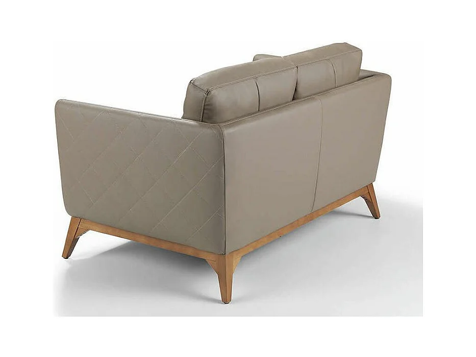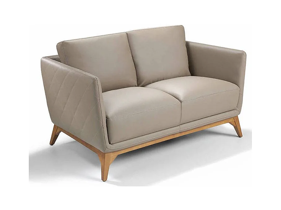 Canapé 2 places contemporain cuir capitonné et bois noyer Kila-Couleur Aqua 11 Camel