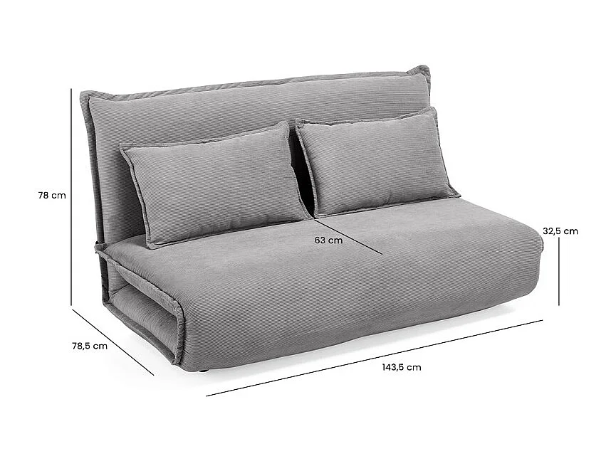 Chauffeuse 2 places 3-en-1 en velours côtelé gris – GRACIE