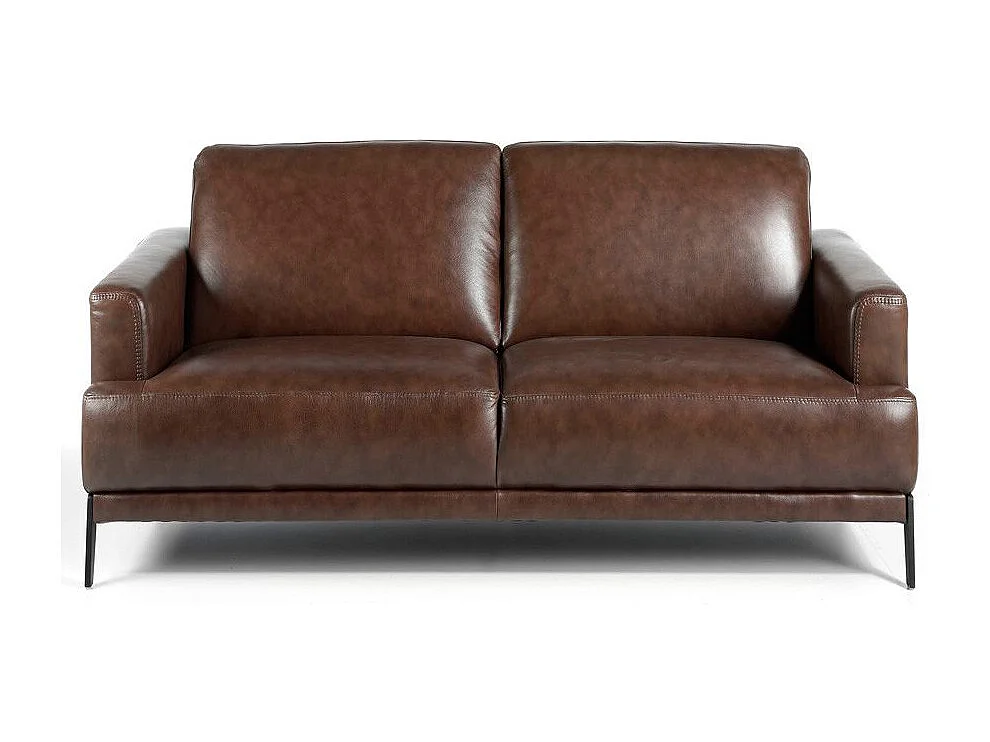 Canapé 2 places cuir et pieds acier noir inoxydable noir Yaro-Cuir Piel blanc