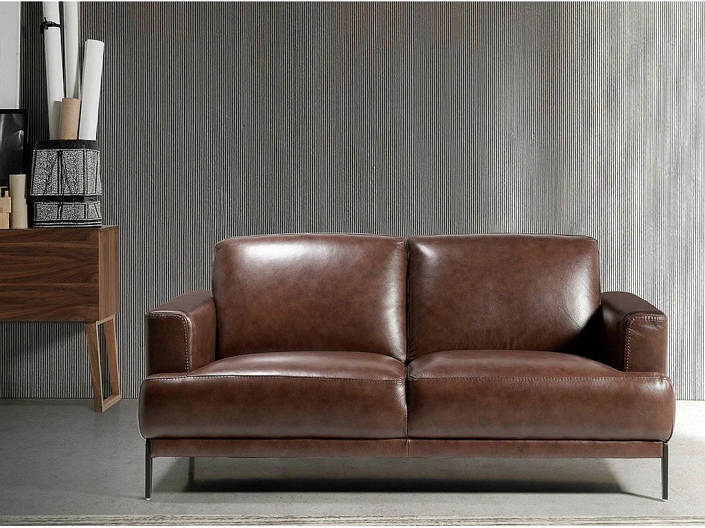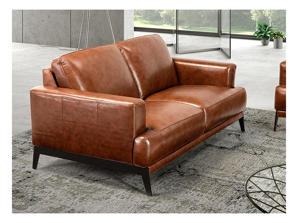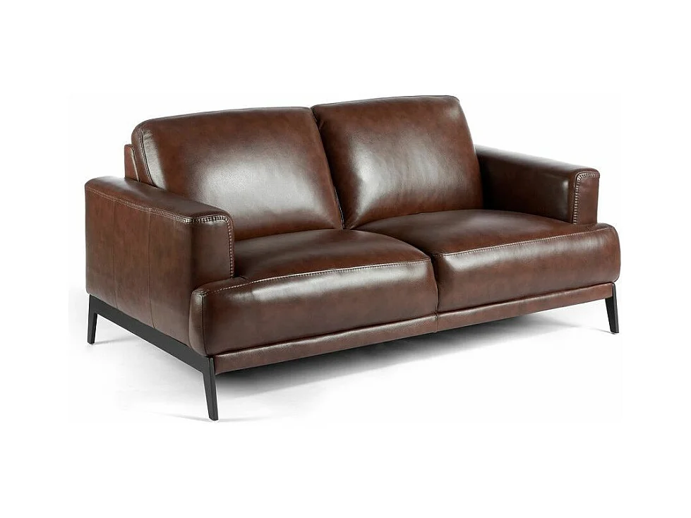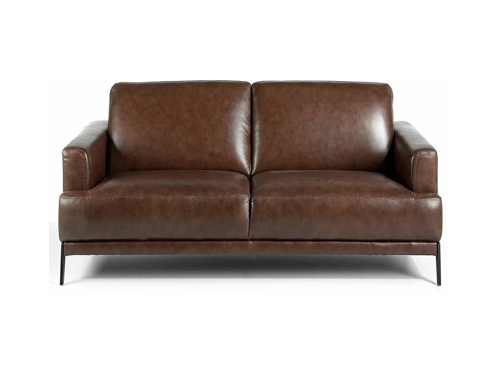 Canapé 2 places cuir et pieds acier noir inoxydable noir Yaro-Couleur Cuir Piel café