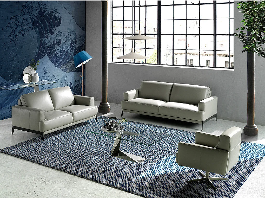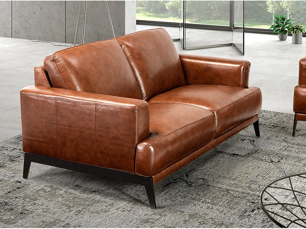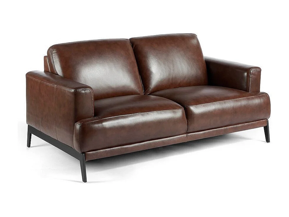 Canapé 2 places cuir et pieds acier noir inoxydable noir Yaro-Couleur Cuir Piel marine