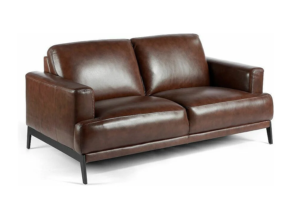Canapé 2 places cuir et pieds acier noir inoxydable noir Yaro-Couleur Cuir Piel noir