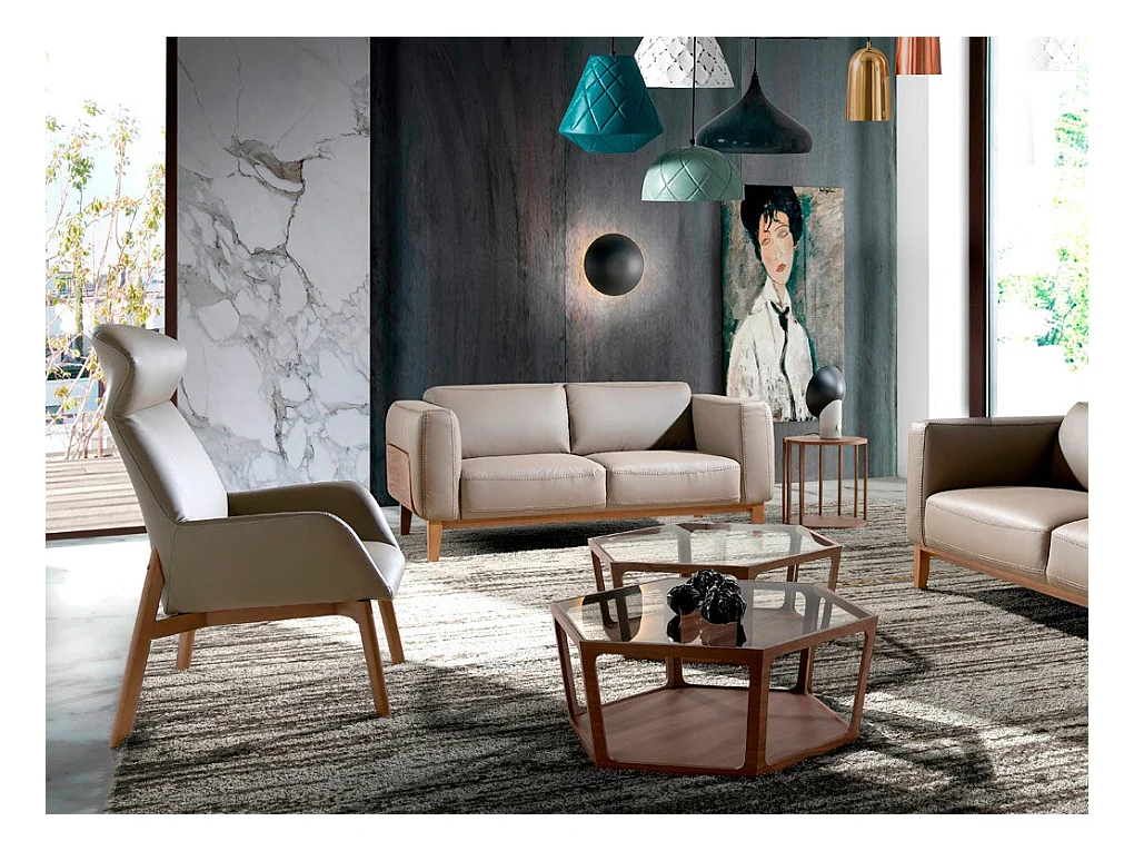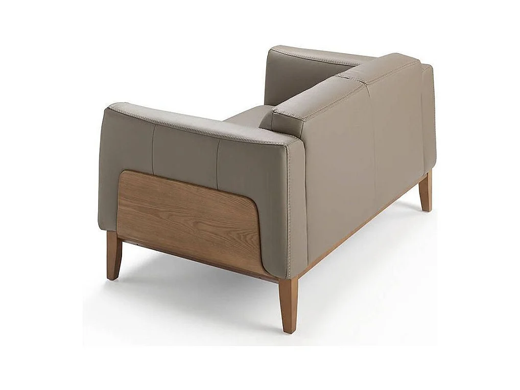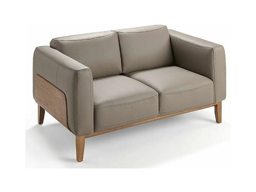 Canapé 2 places cuir et pieds bois noyer Kina-Couleur Cuir Piel blanc