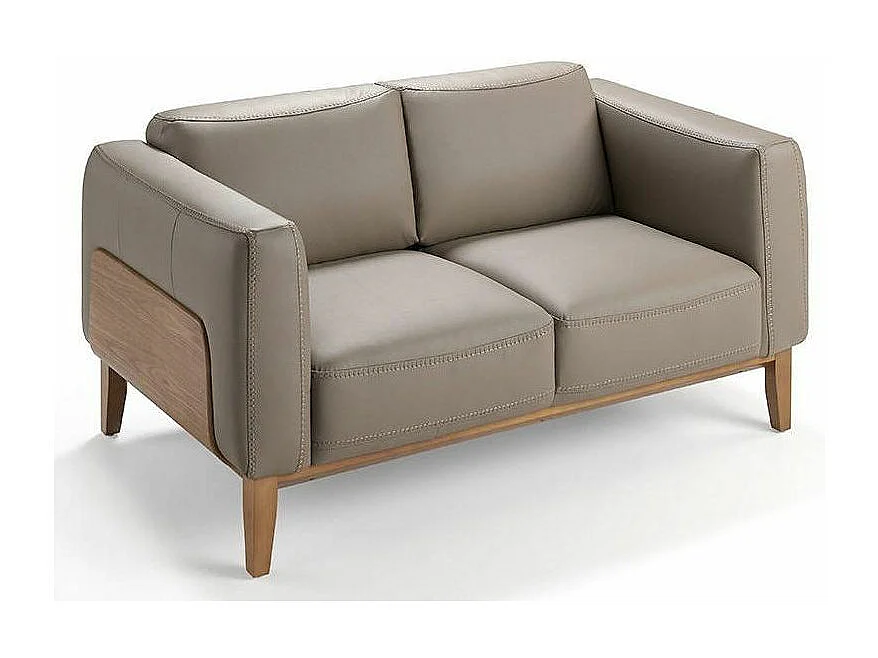 Canapé 2 places cuir et pieds bois noyer Kina-Couleur Cuir Piel cuero