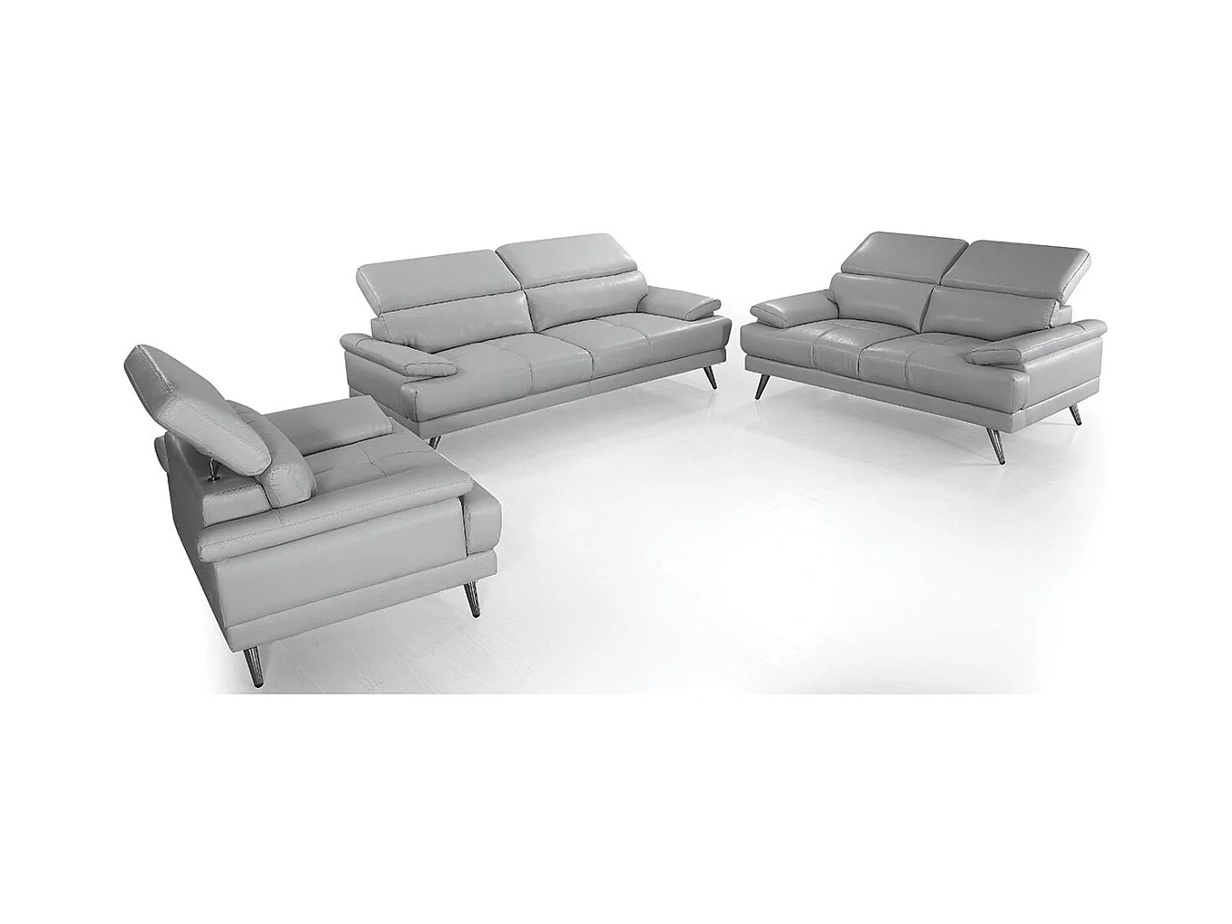 Canapé 2 places Cuir LENA Gris - Angle Droit