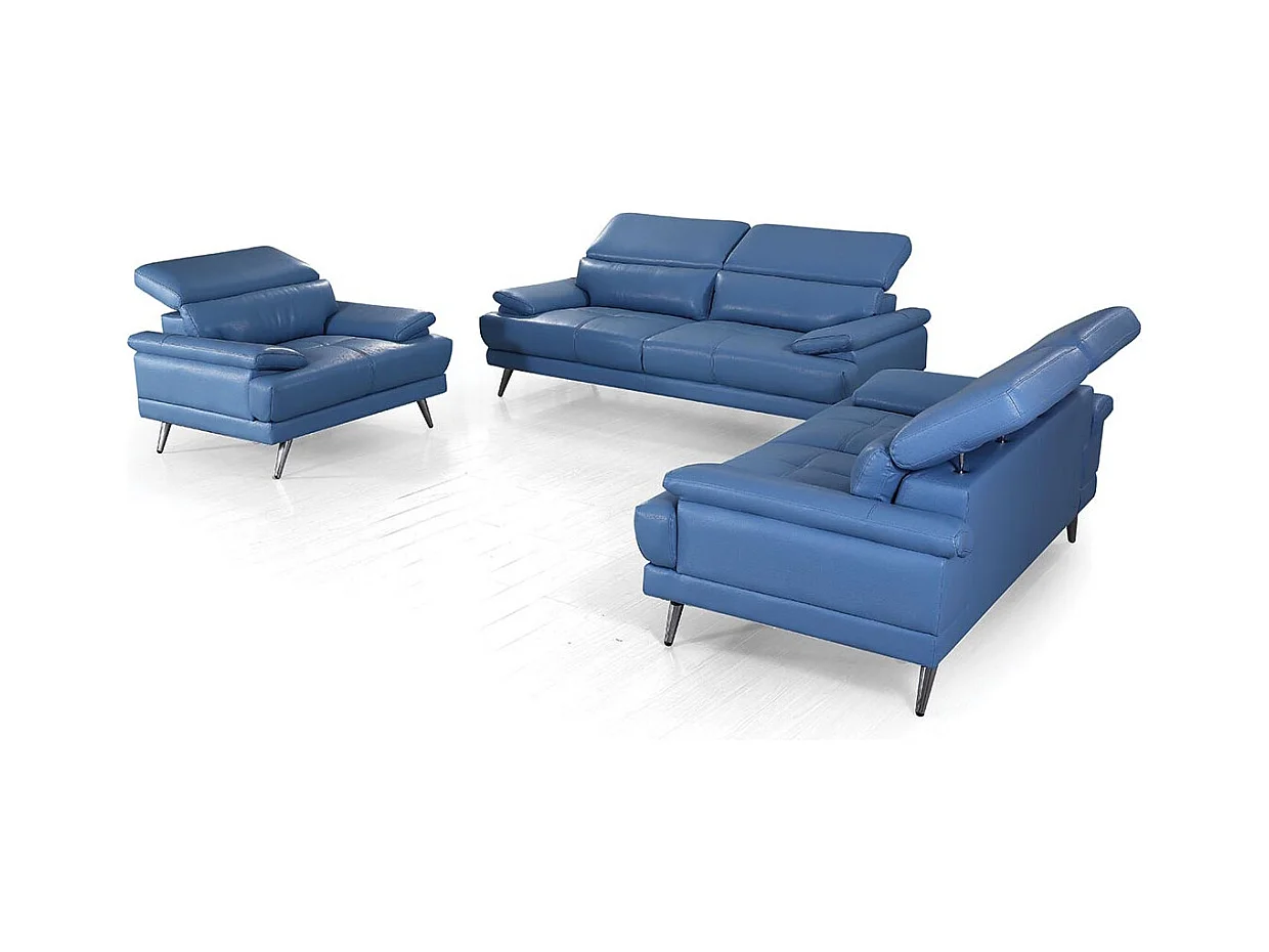 Canapé 2 places Cuir LENA Bleu - Angle Droit