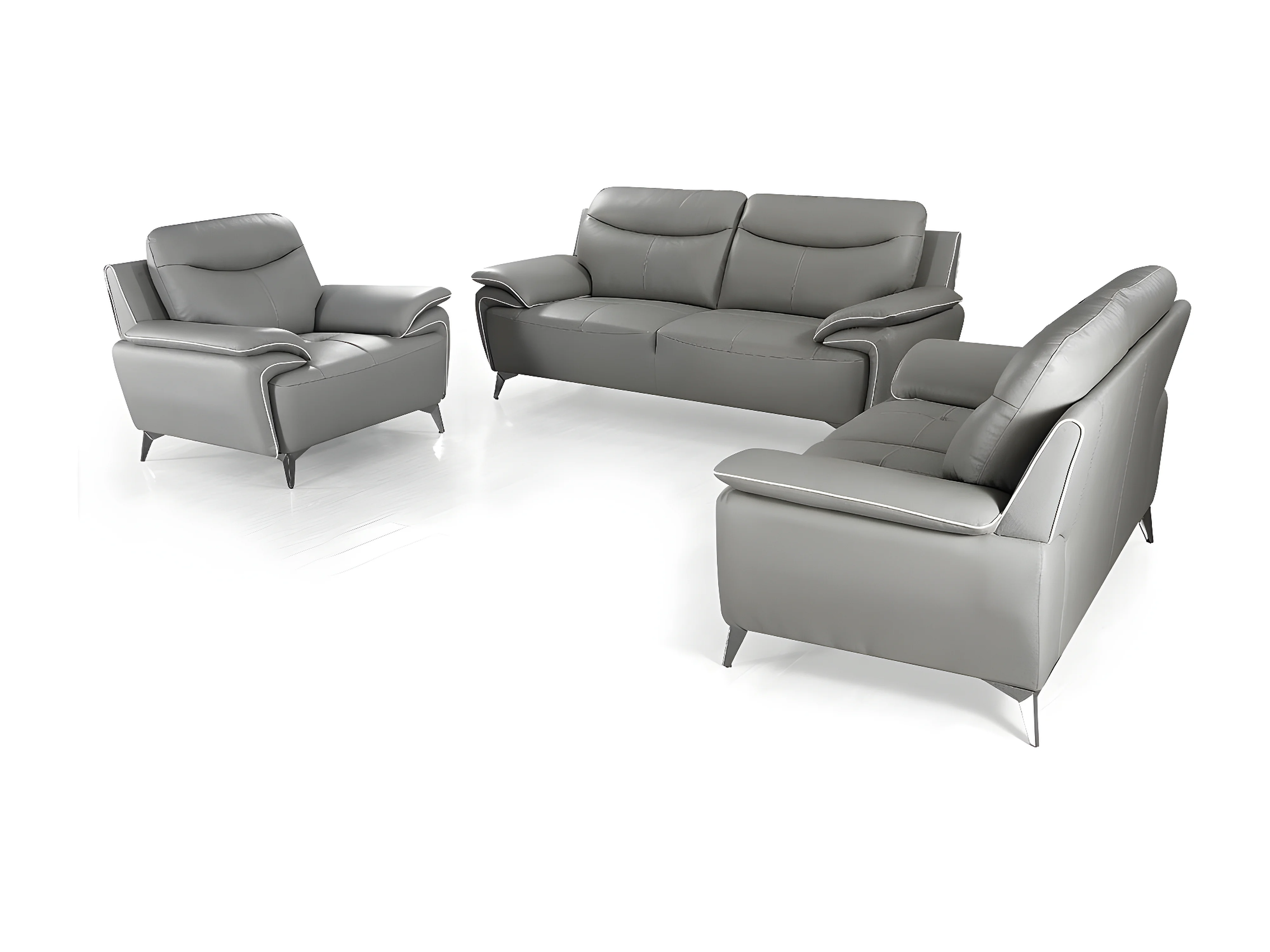 Canapé 2 places Cuir MAEL Gris - Angle Droit
