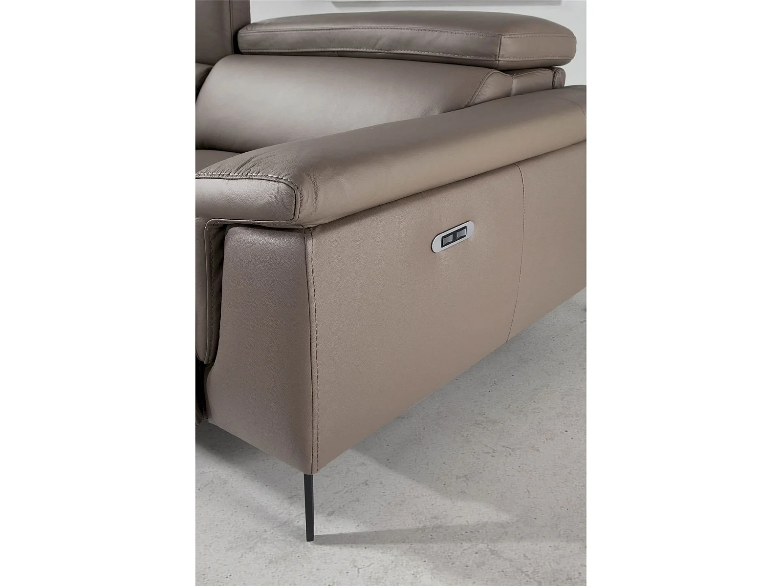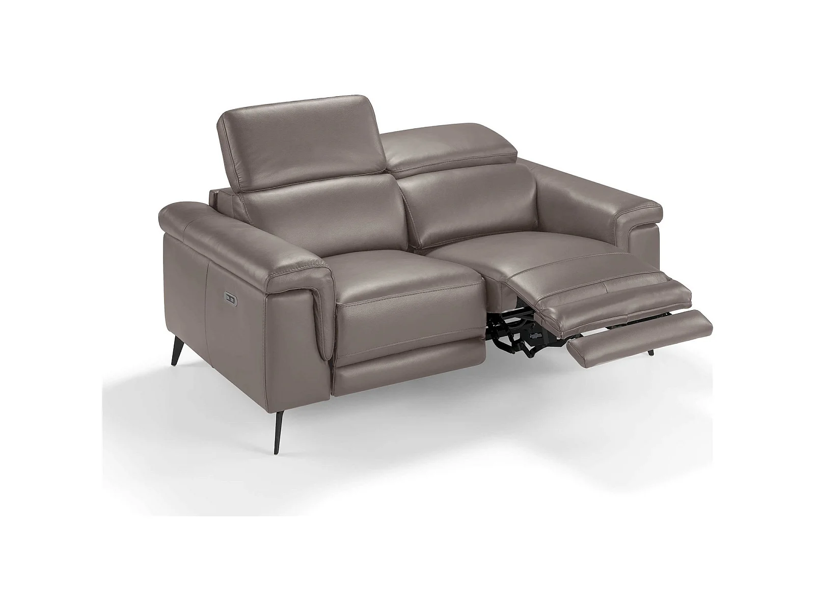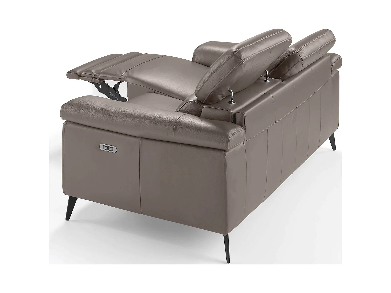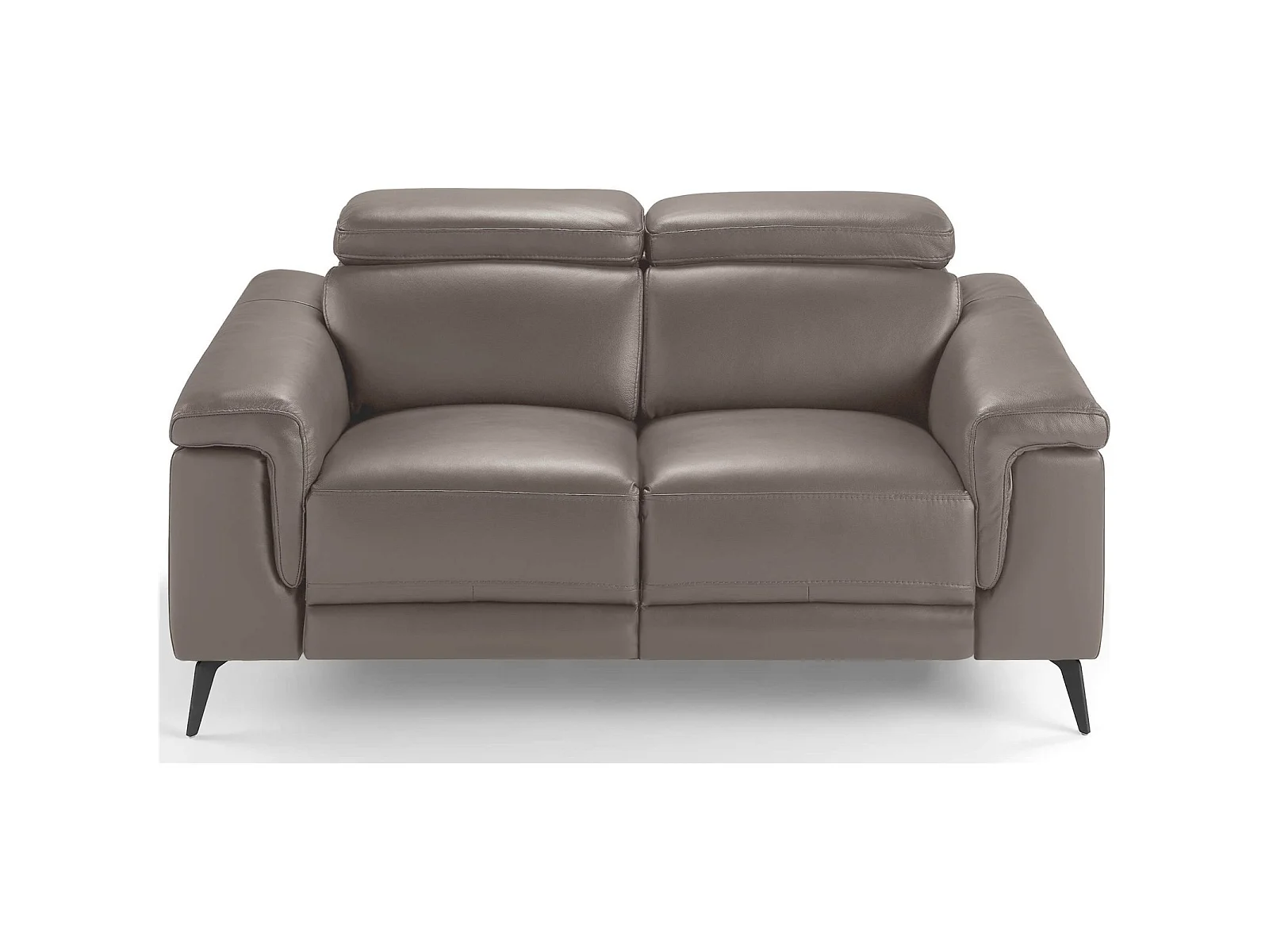 Canapé 2 places cuir vachette simili structure bois appuis-tête articulés pieds acier peint