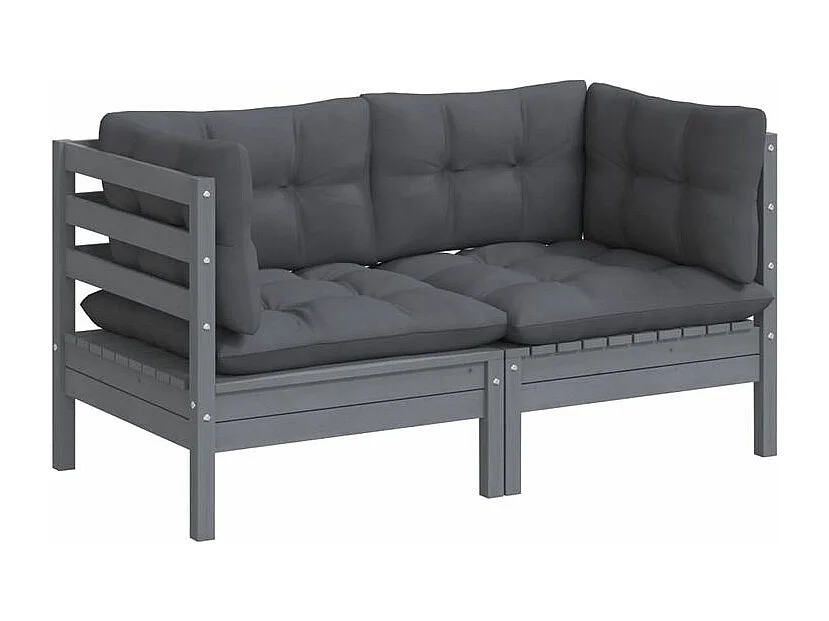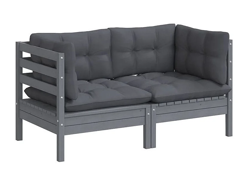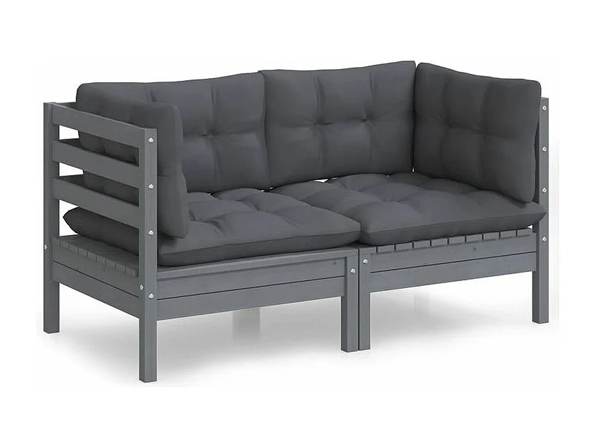 Canapé 2 places de jardin avec coussins anthracite Bois de pin
