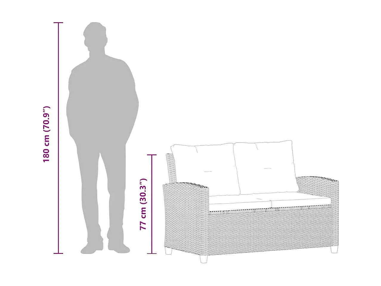 Canapé 2 places de jardin et coussins Noir 124cm Résine tressée