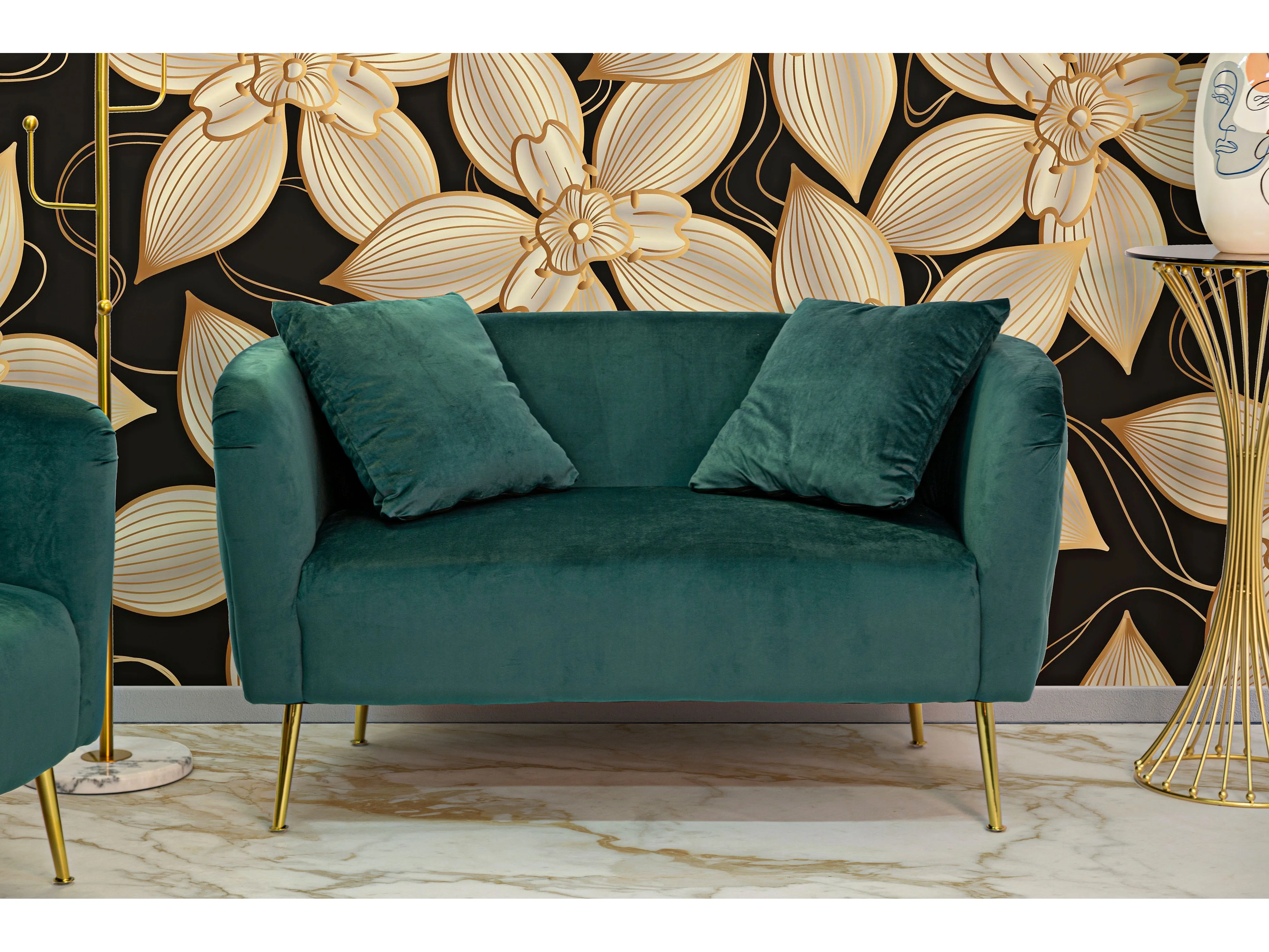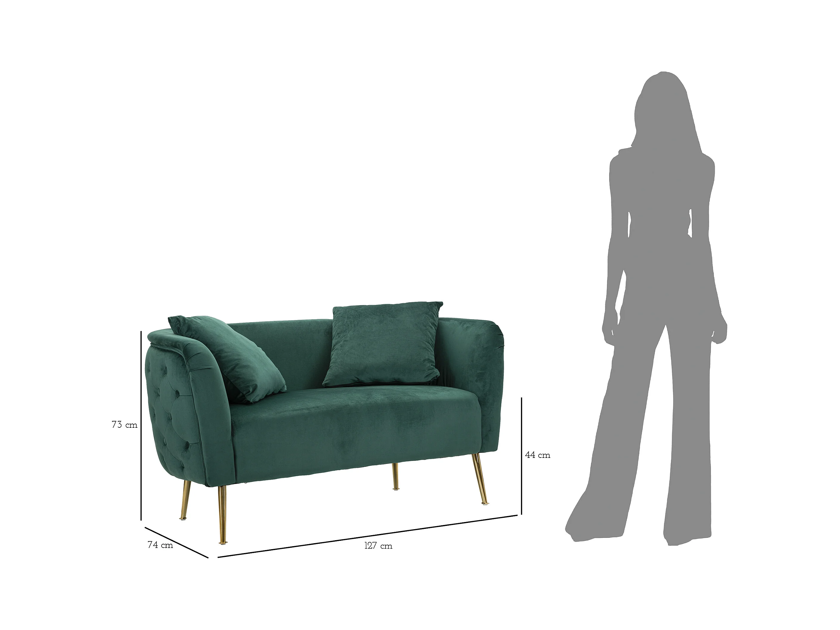 Canapé 2 places en métal et tissu doré et vert cm 127x74x73
