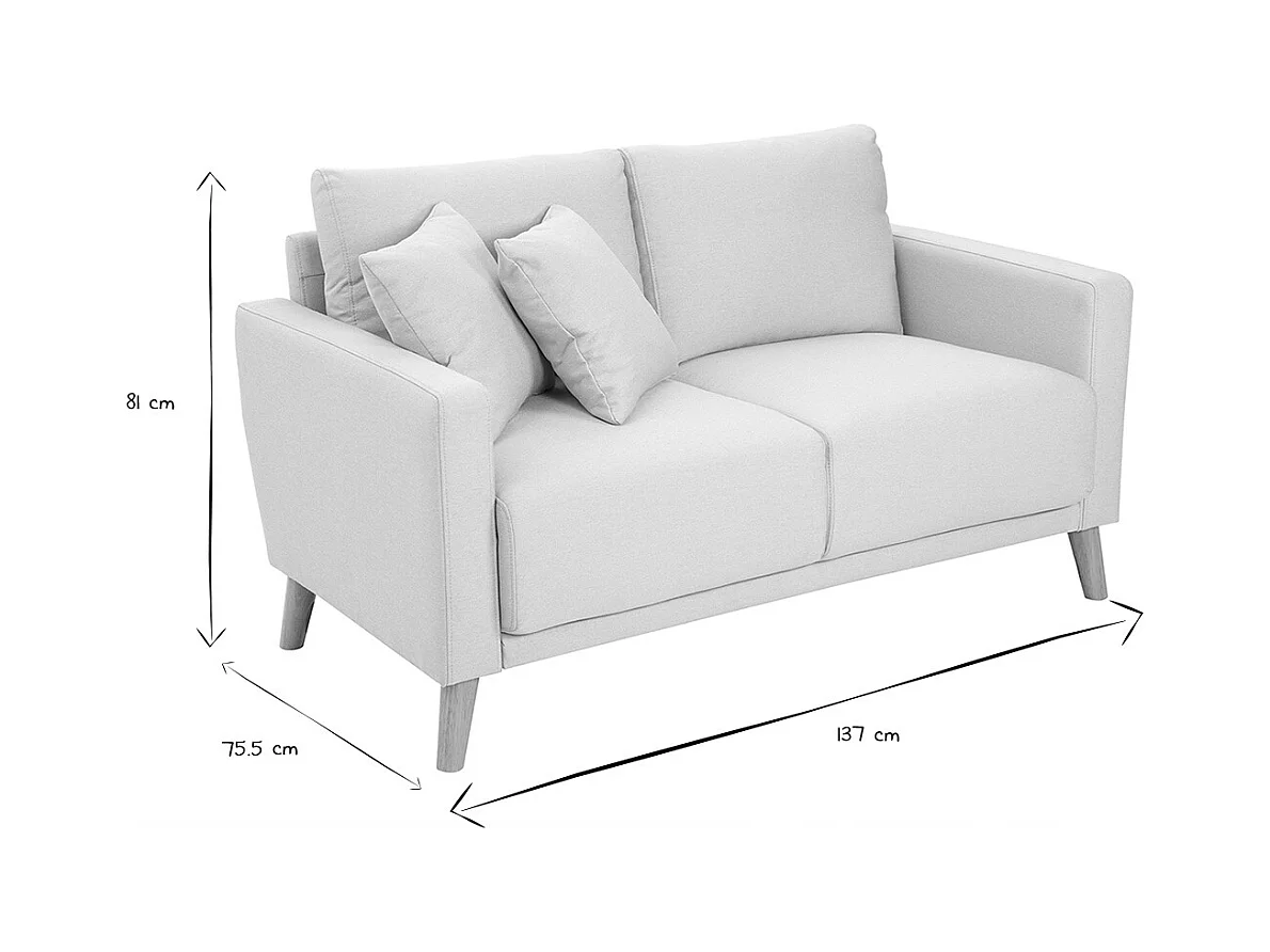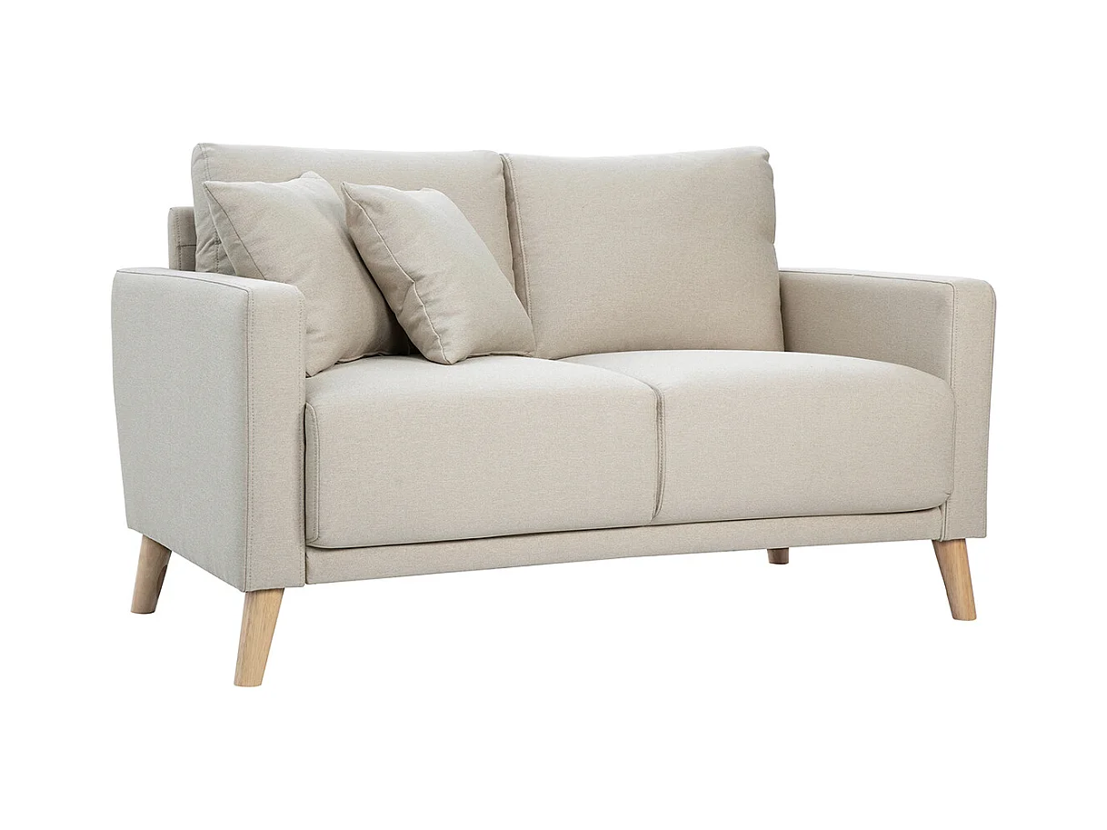 Canapé 2 places en tissu beige et bois clair MUNIK