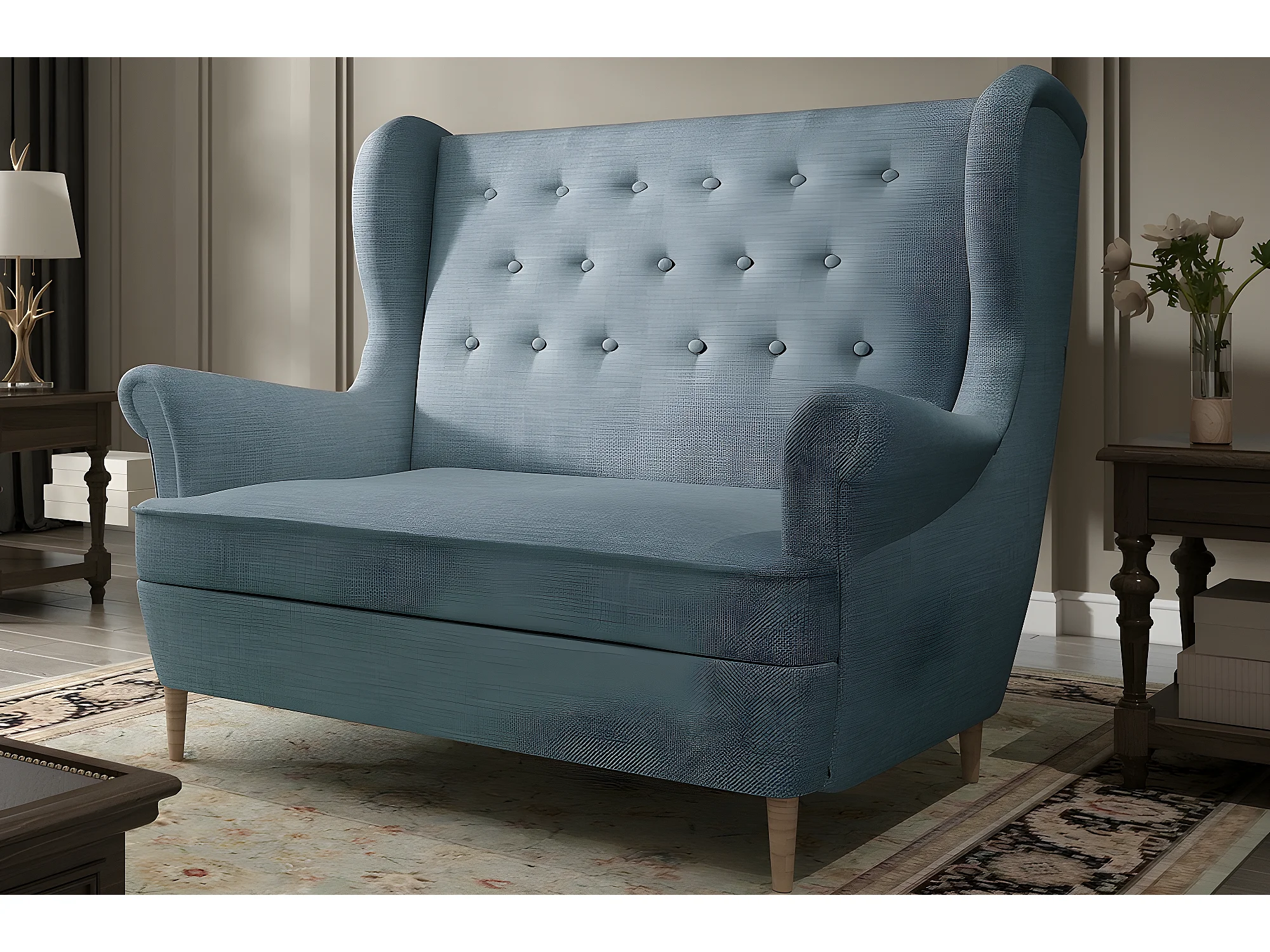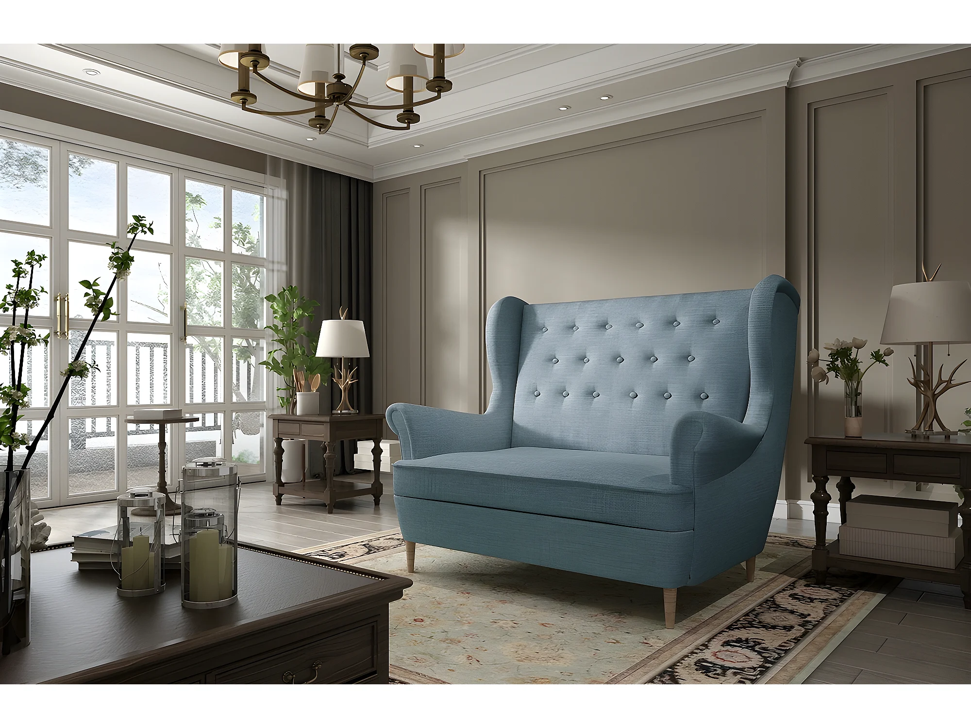 Canapé 2 places en tissu de catégorie Luxe, Bleu clair - ARNAUD