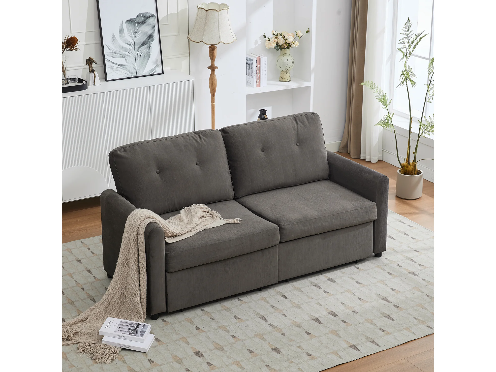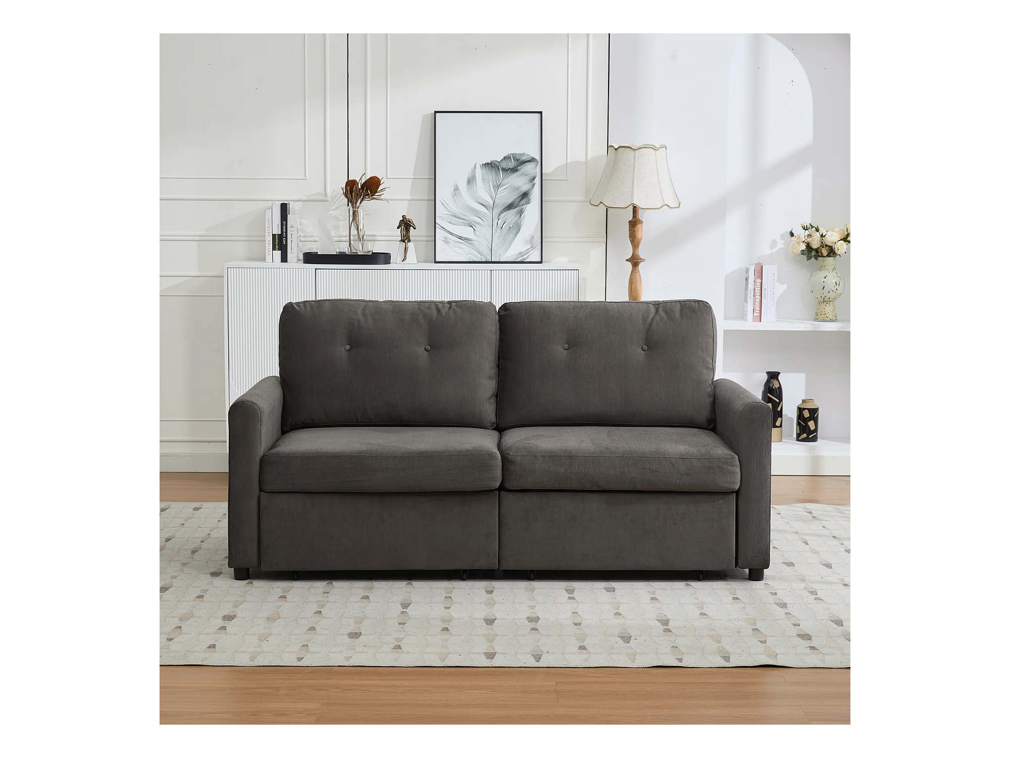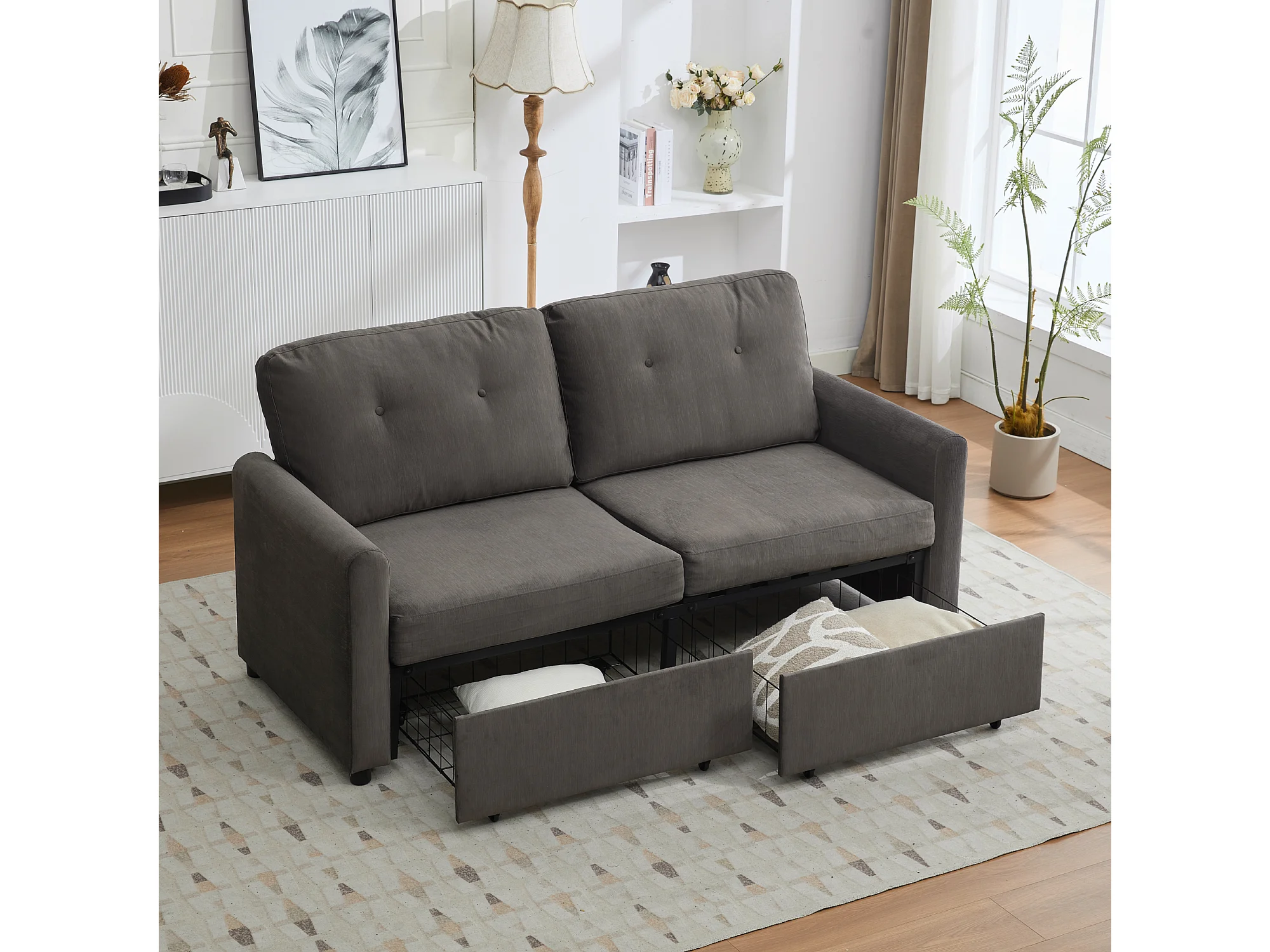 Canapé 2 places en tissu gris foncé avec 2 tiroirs de rangement - Style moderne