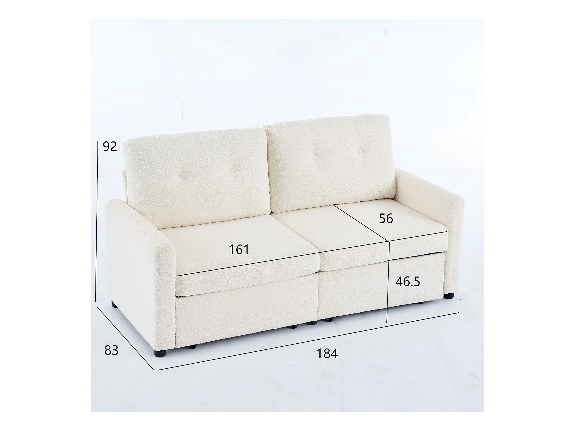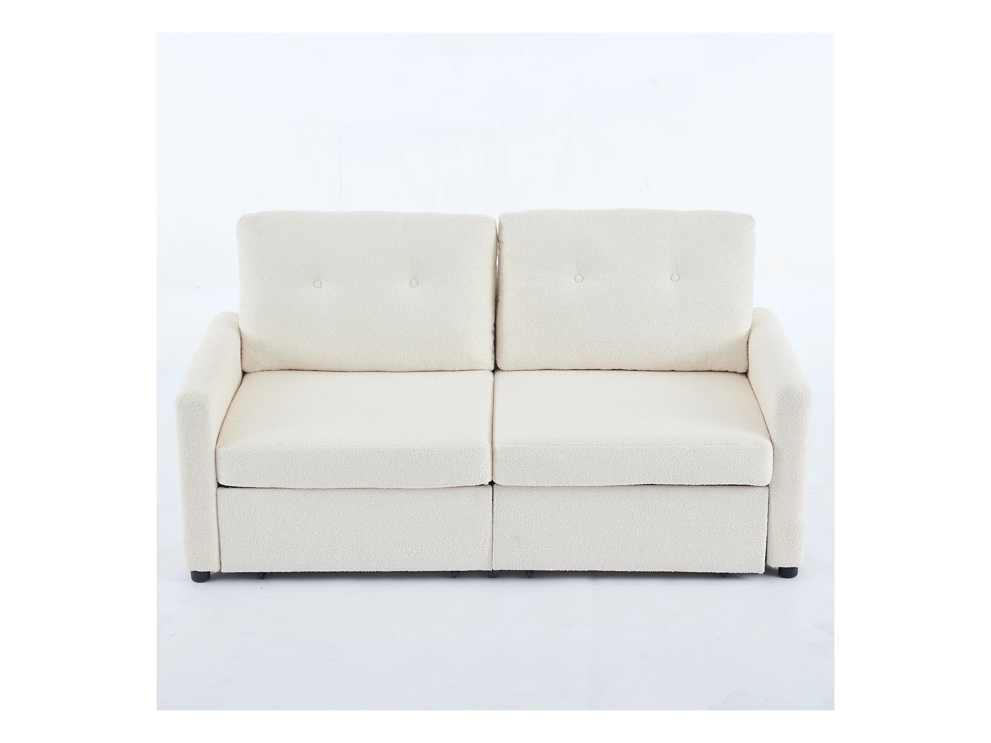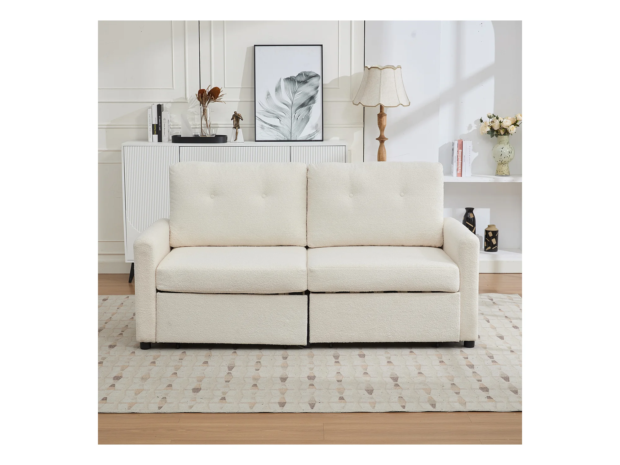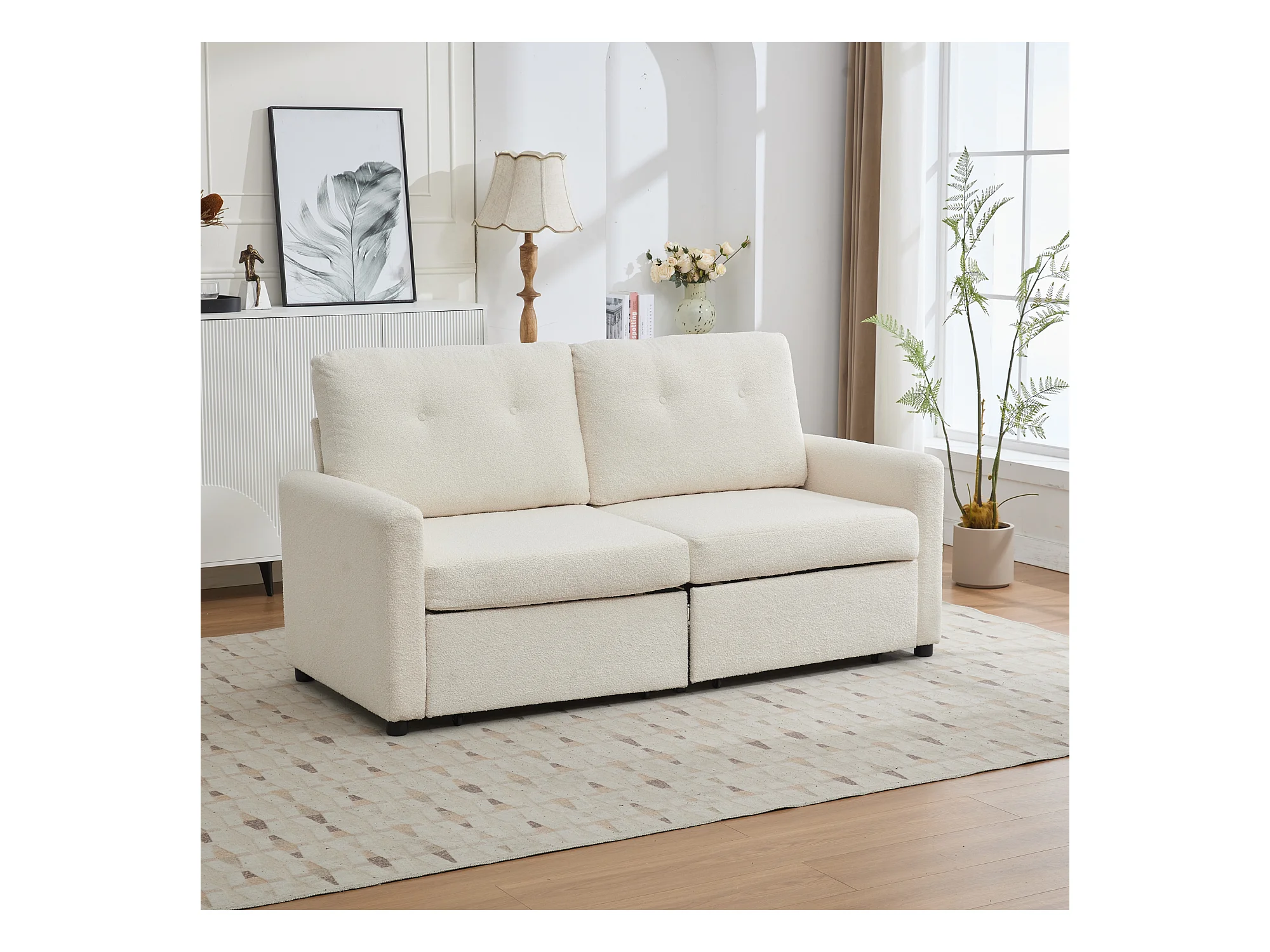 Canapé 2 places en tissu ivoire avec 2 tiroirs de rangement - Style moderne