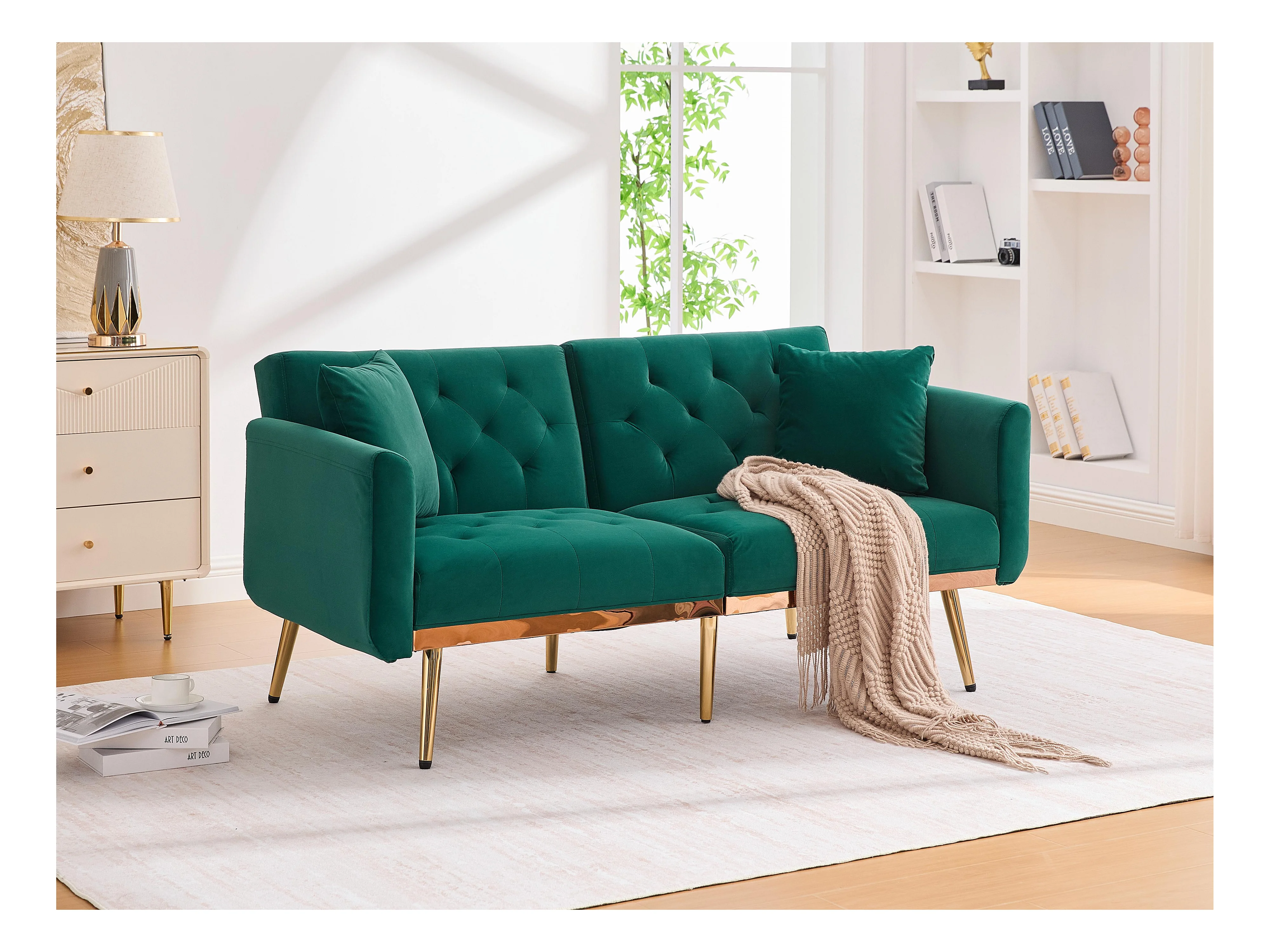 Canapé 2 Places en Tissu Velour Noir - avec dossier réglable et pieds dorés - Élégant et pratique pour votre salon