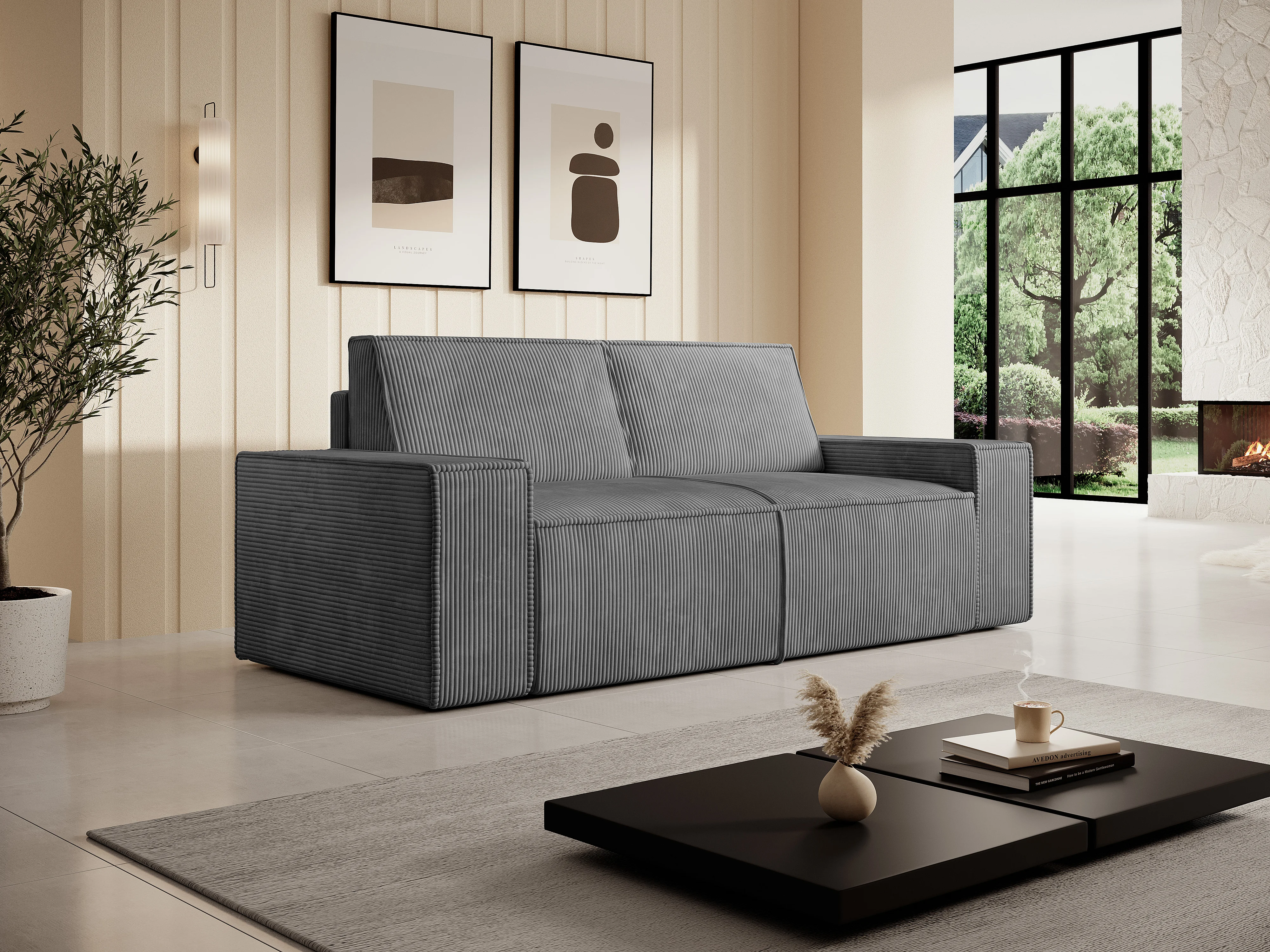 Canapé 2 places en velours côtelé gris anthracite AMELIA