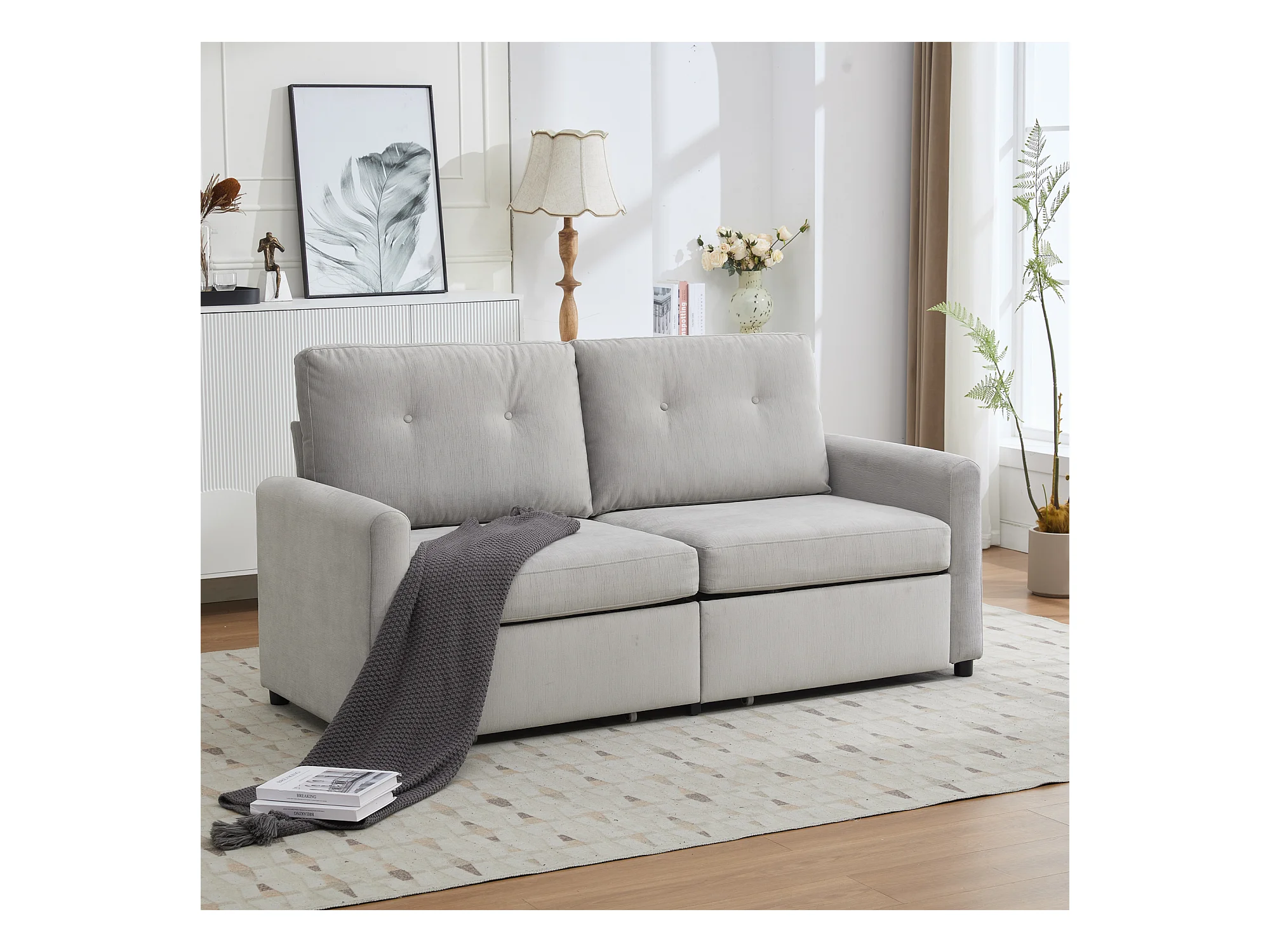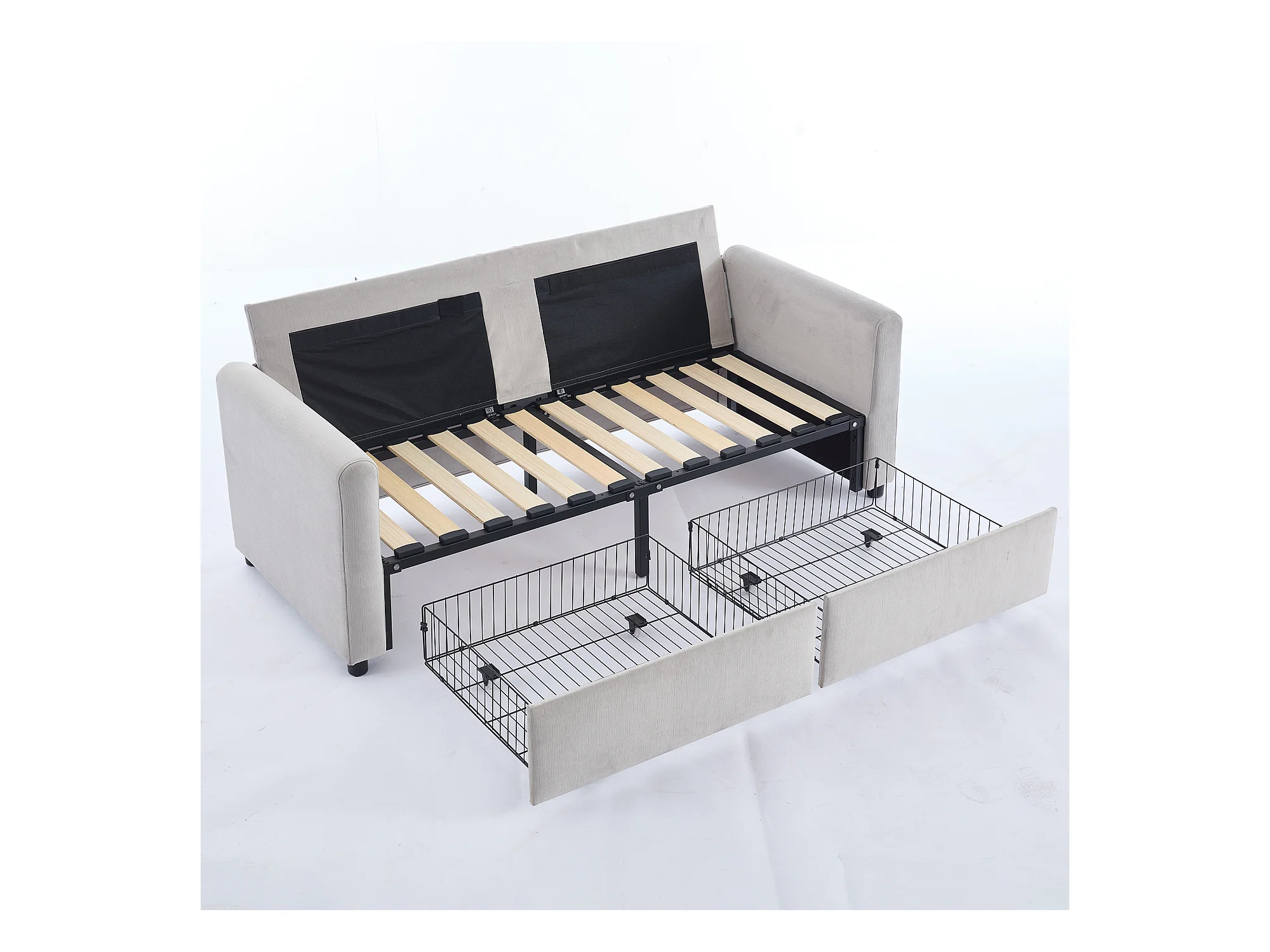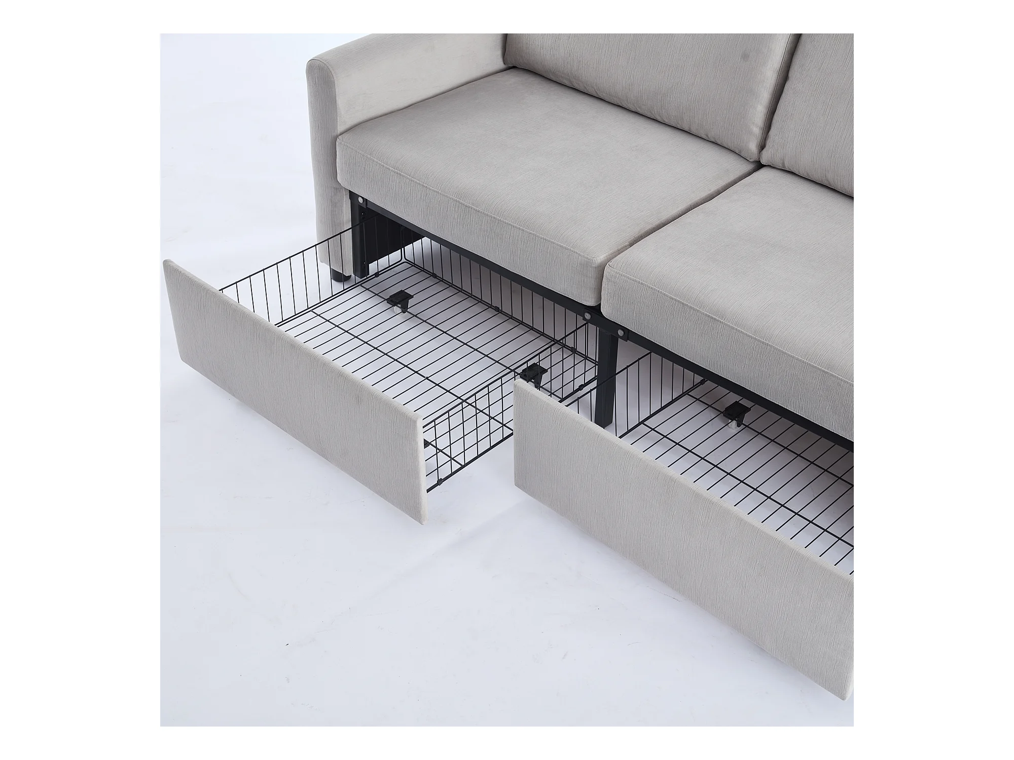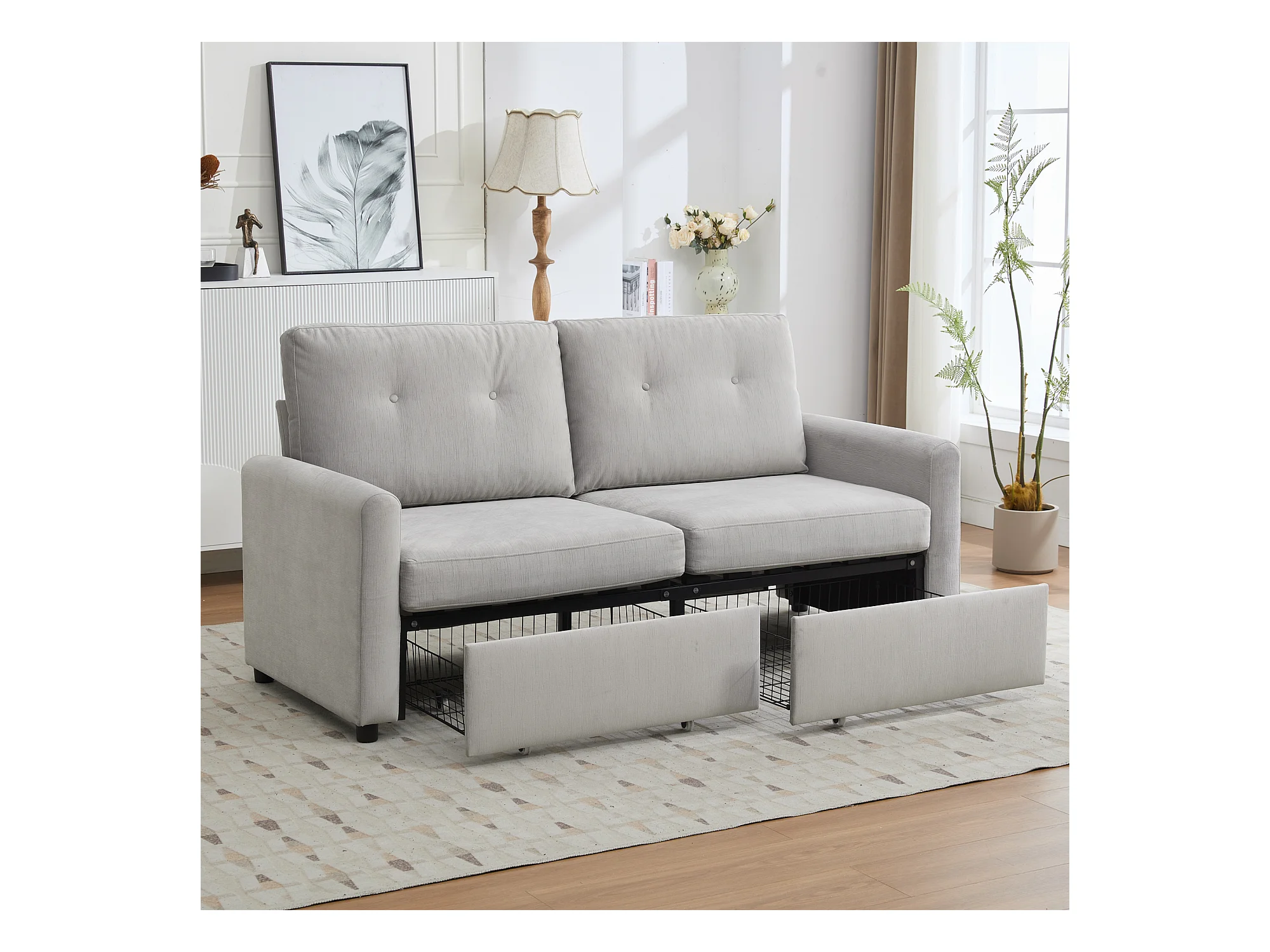 Canapé 2 places gris clair - Canapé droit avec 2 tiroirs et dossier - tissu - pour salon