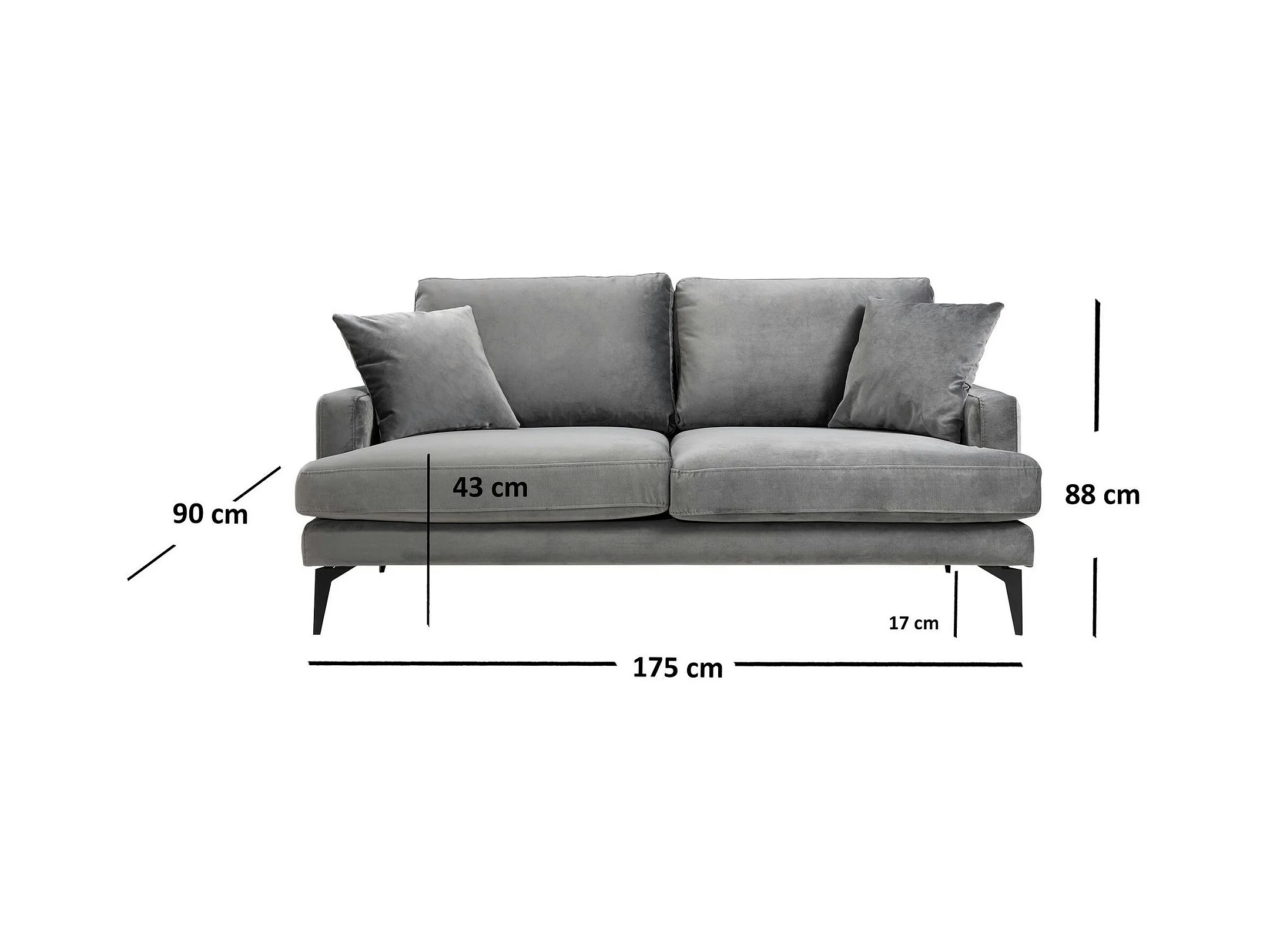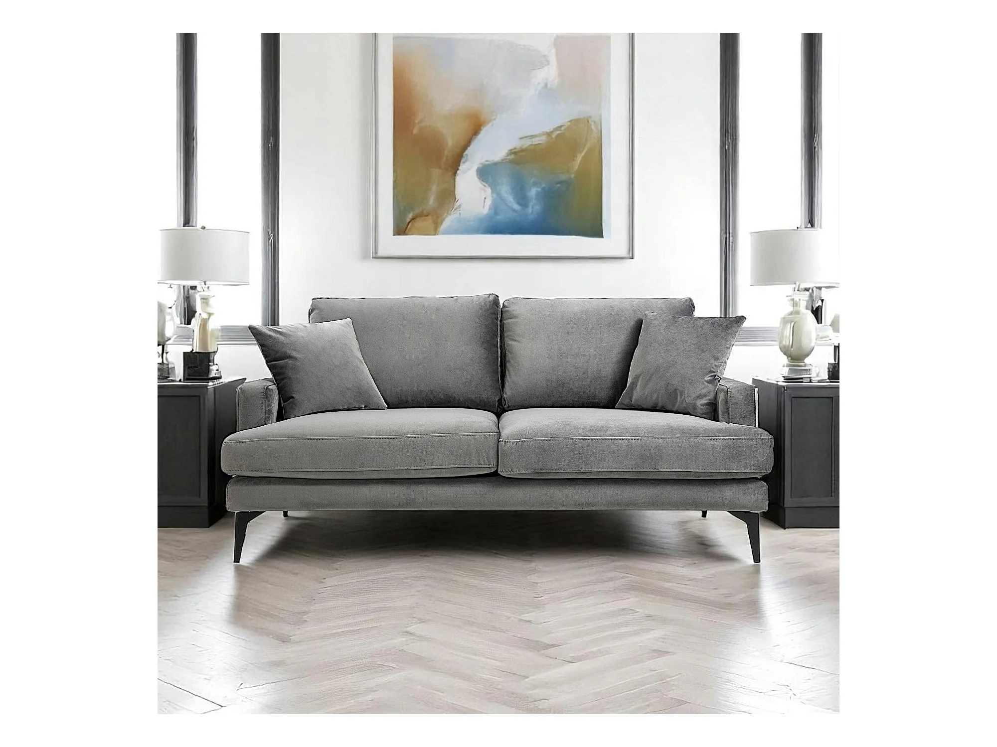 Canapé 2 places gris en velours SEATTLE