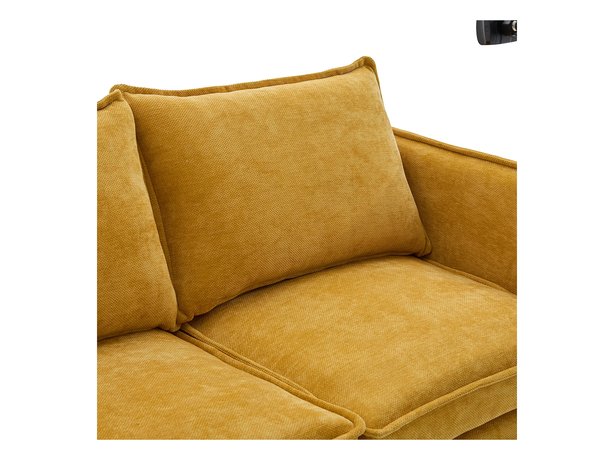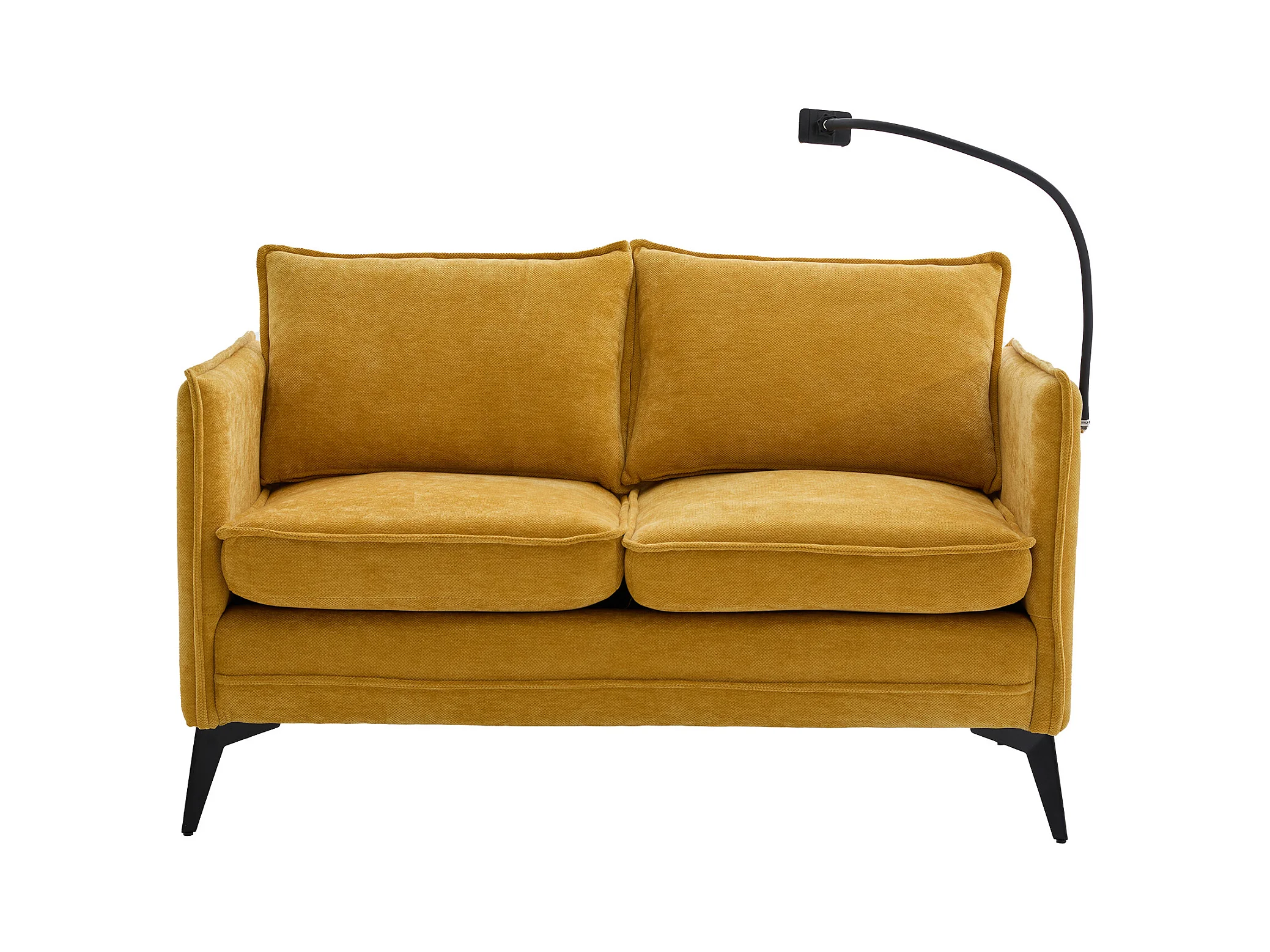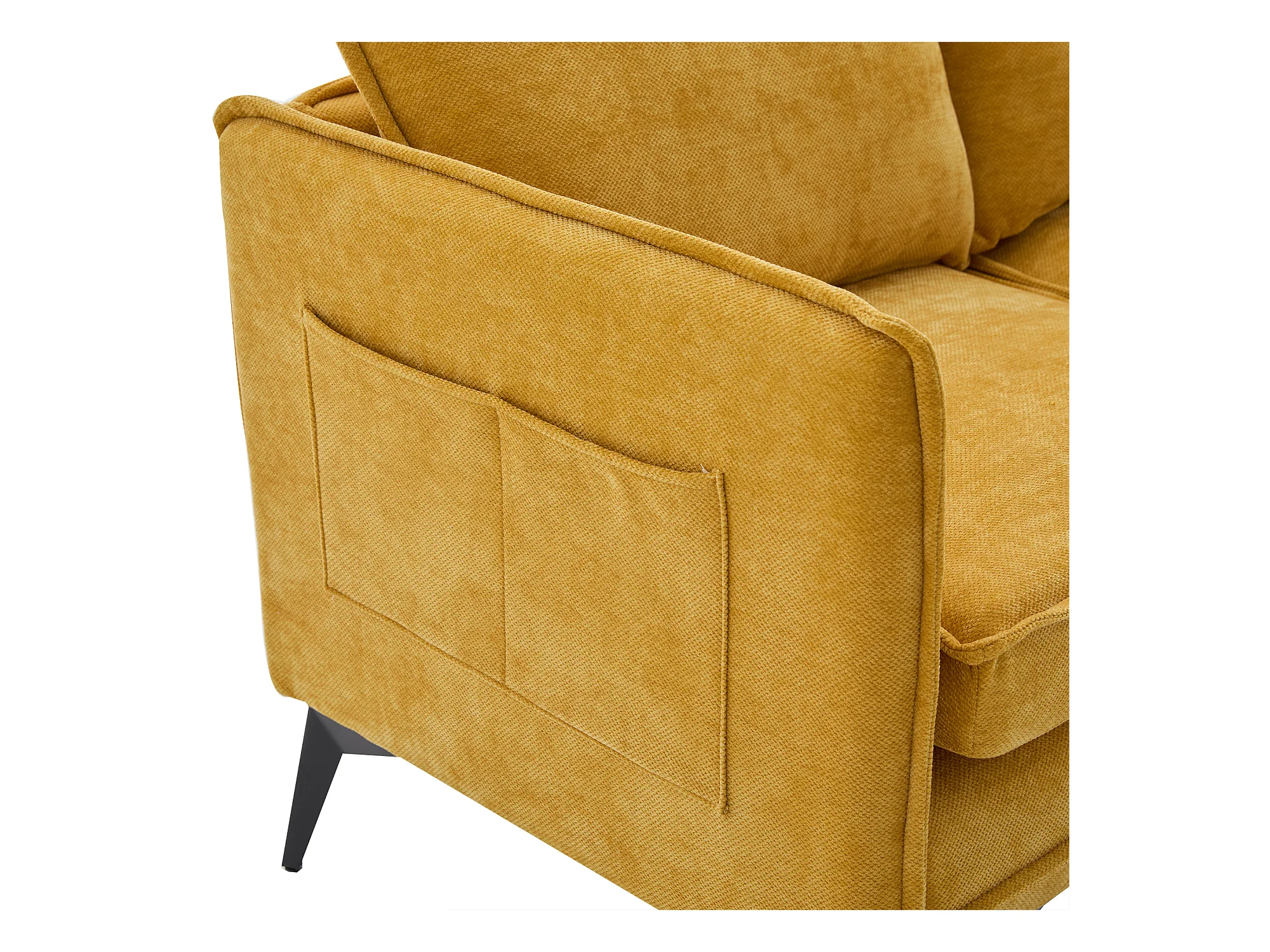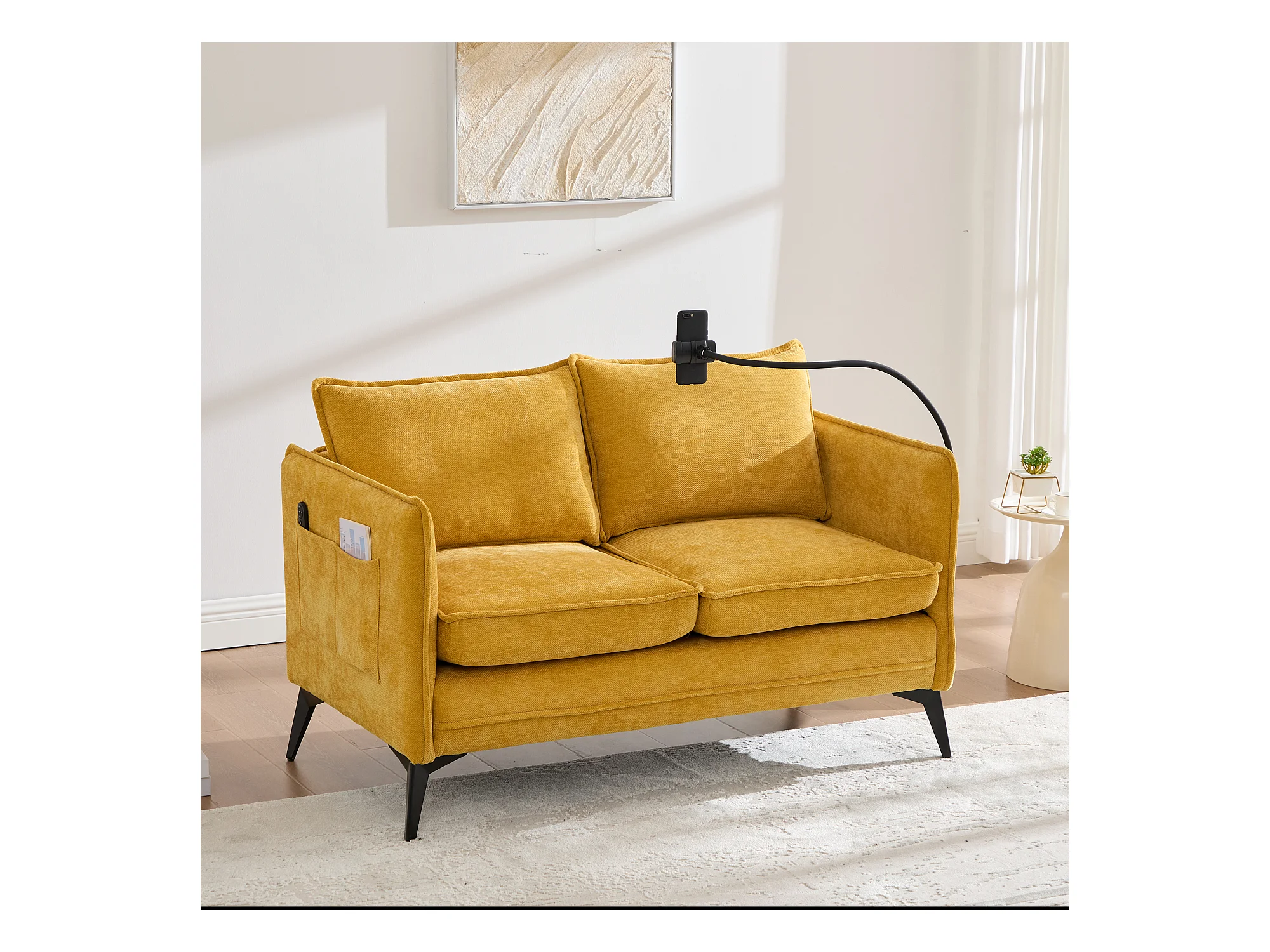 Canapé 2 places jaune - Canapé avec poches latérales de rangement et support pour téléphone - pour salon et chambre