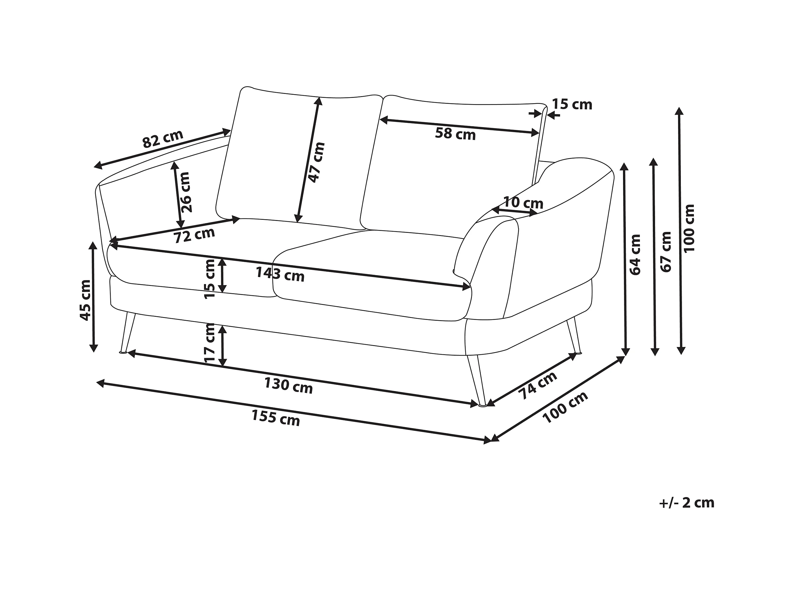 Canapé 2 places KJAER Tissu chenille Taupe