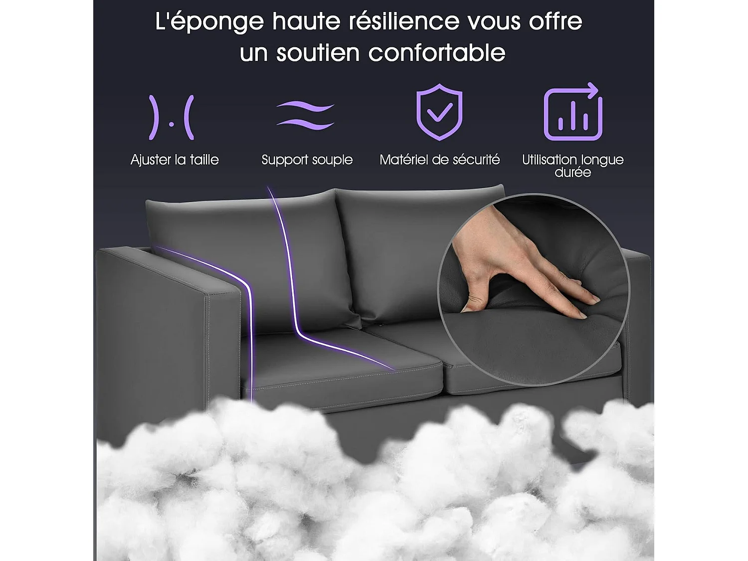 Canapé 2 Places Moderne en Cuir PU avec Coussin Souple et Pieds en Métal pour Salon,Réception,Chambre à Coucher,Bureau Gris
