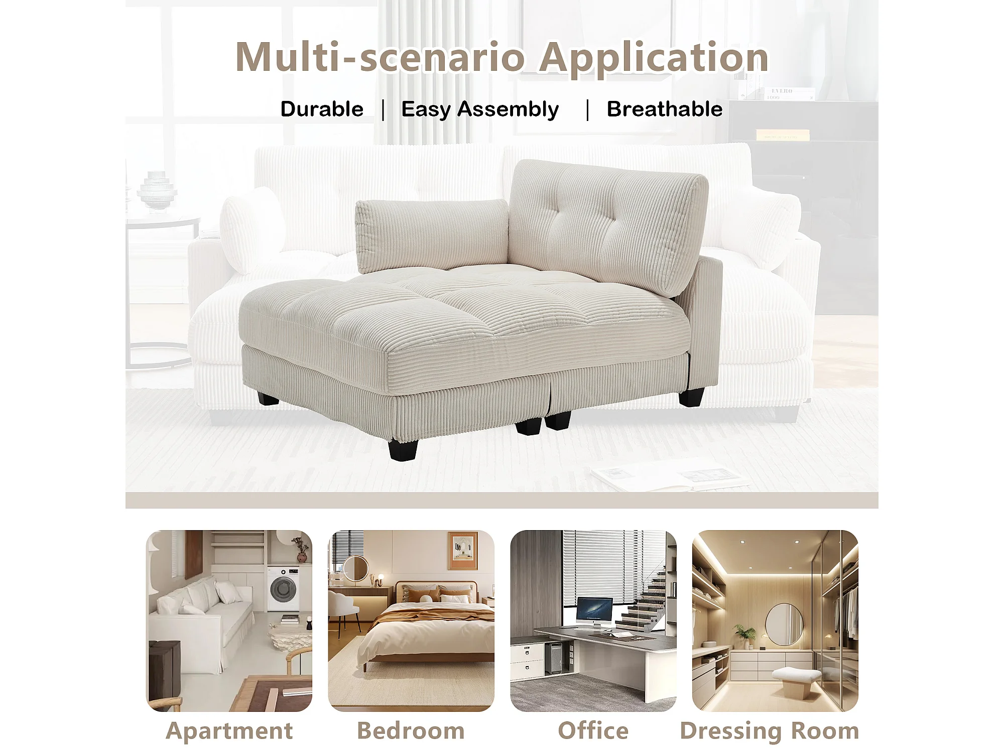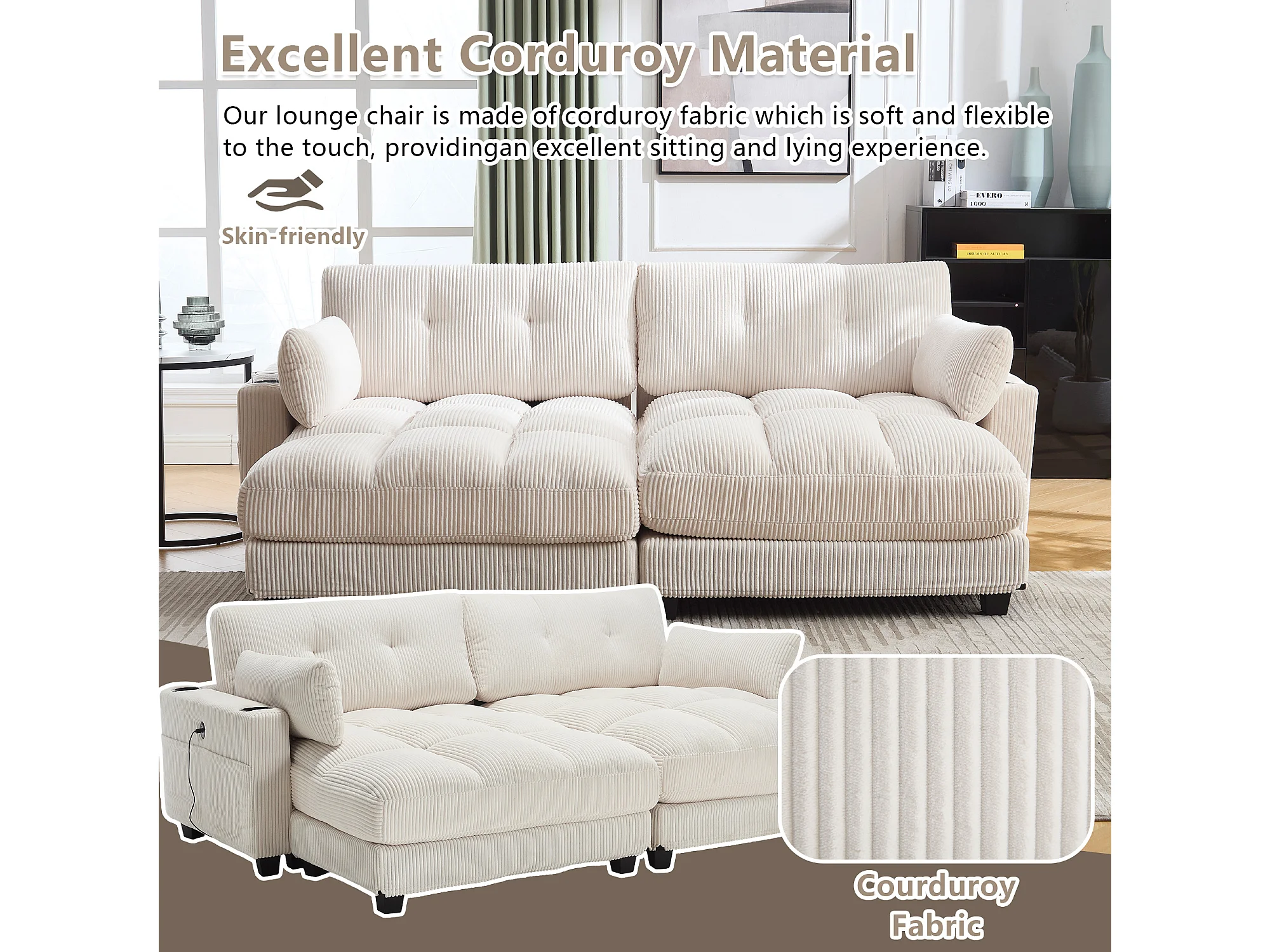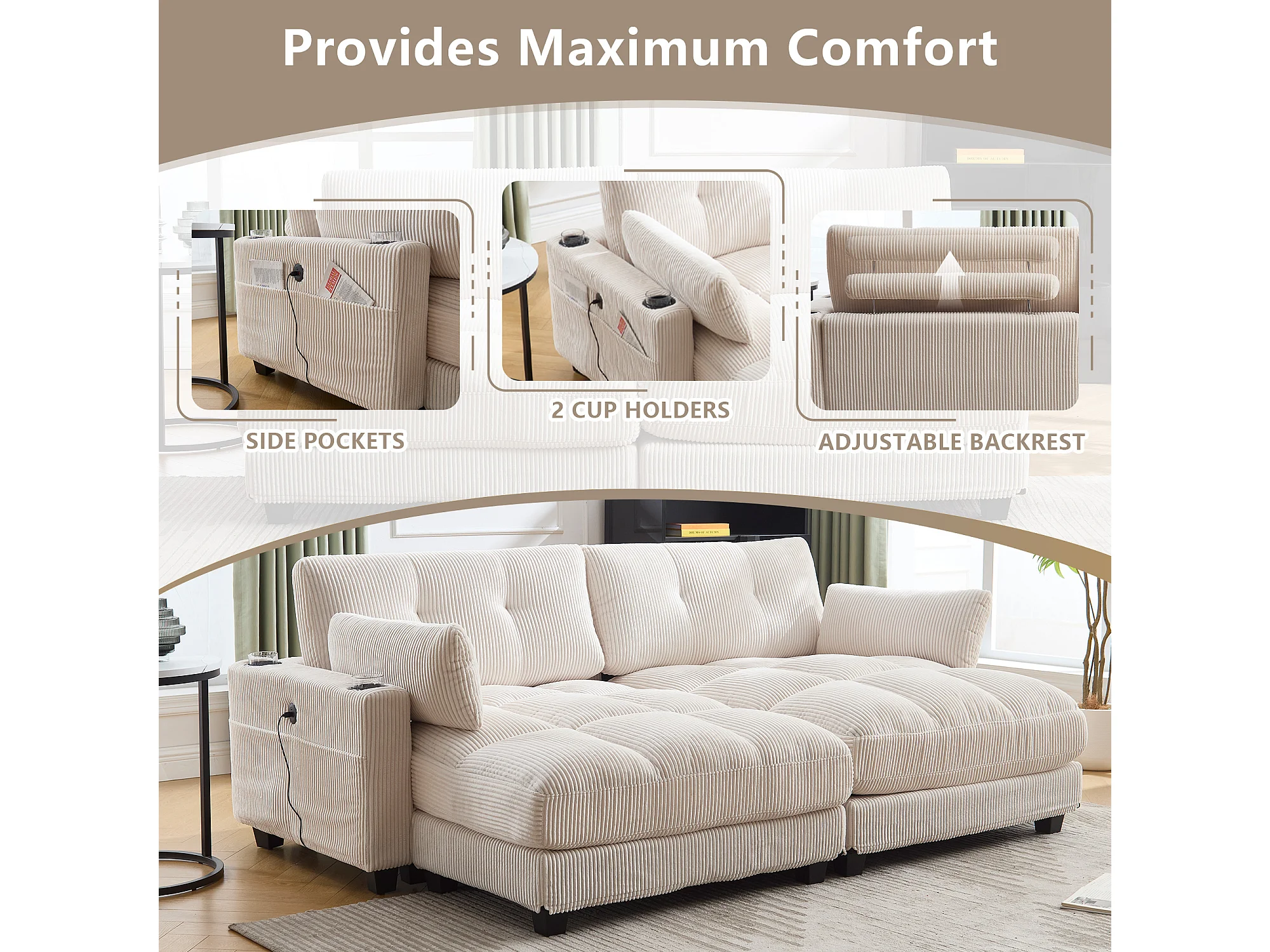 Canapé 2 places modulable en velours beige – avec USB et porte‑gobelet – multifonction pour petit espace - 112x140x81cm