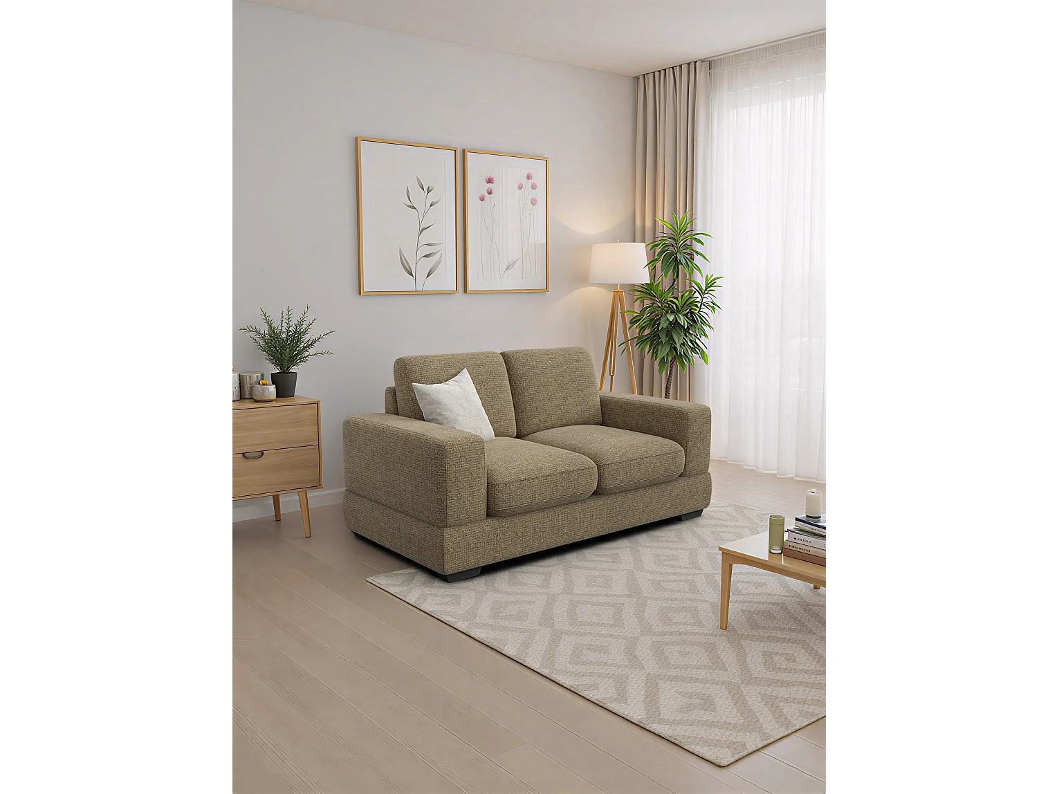 Canapé 2 places OTTO, tissu taupe