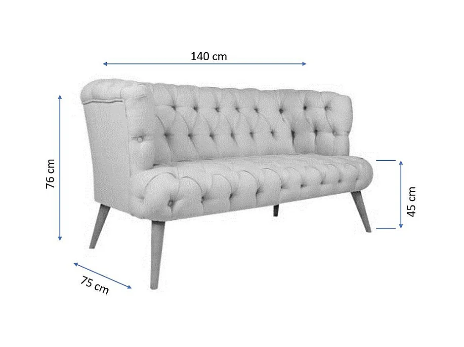 Canapé 2 places style Chesterfield tissu beige clair Wester 140cm