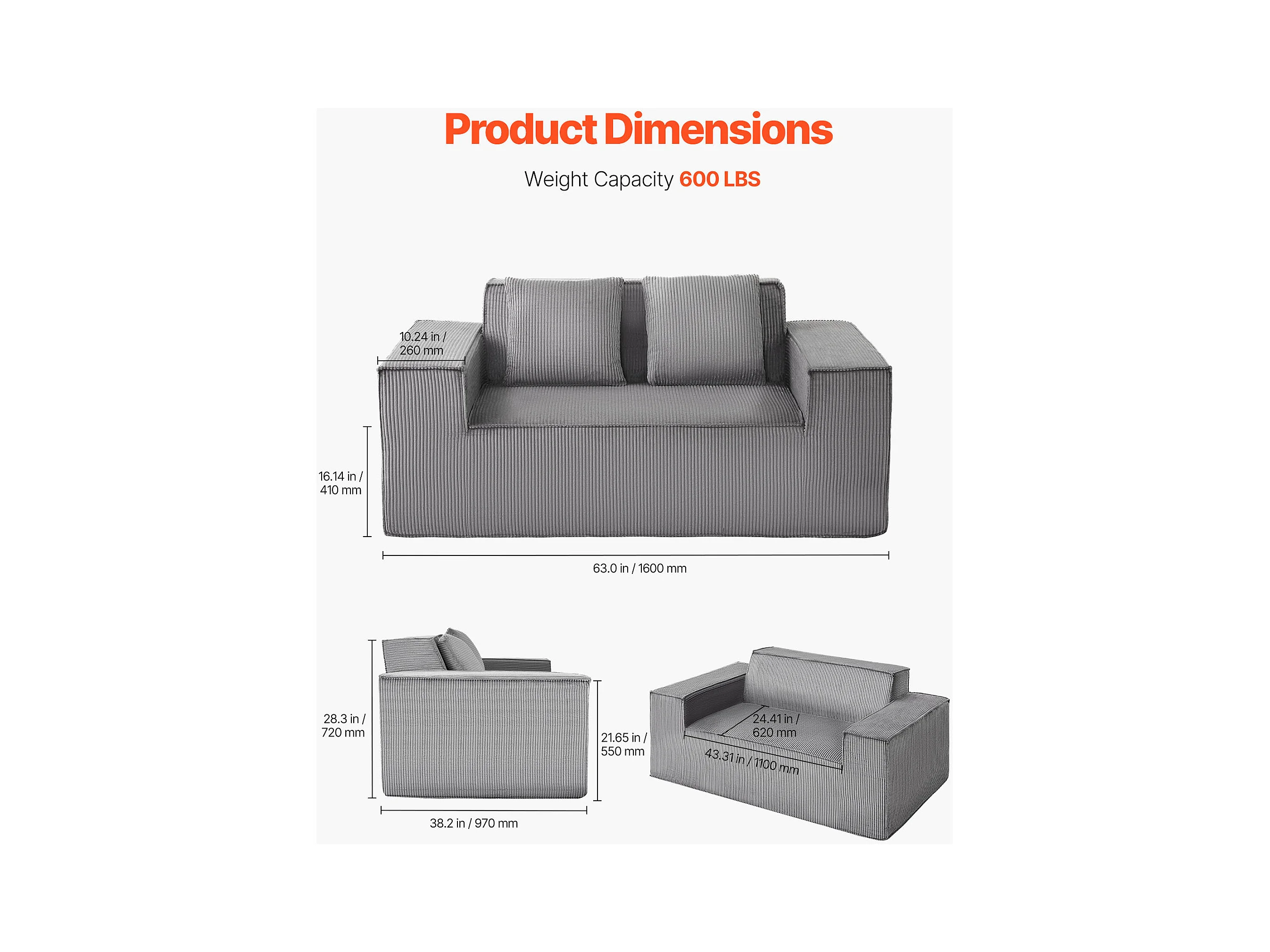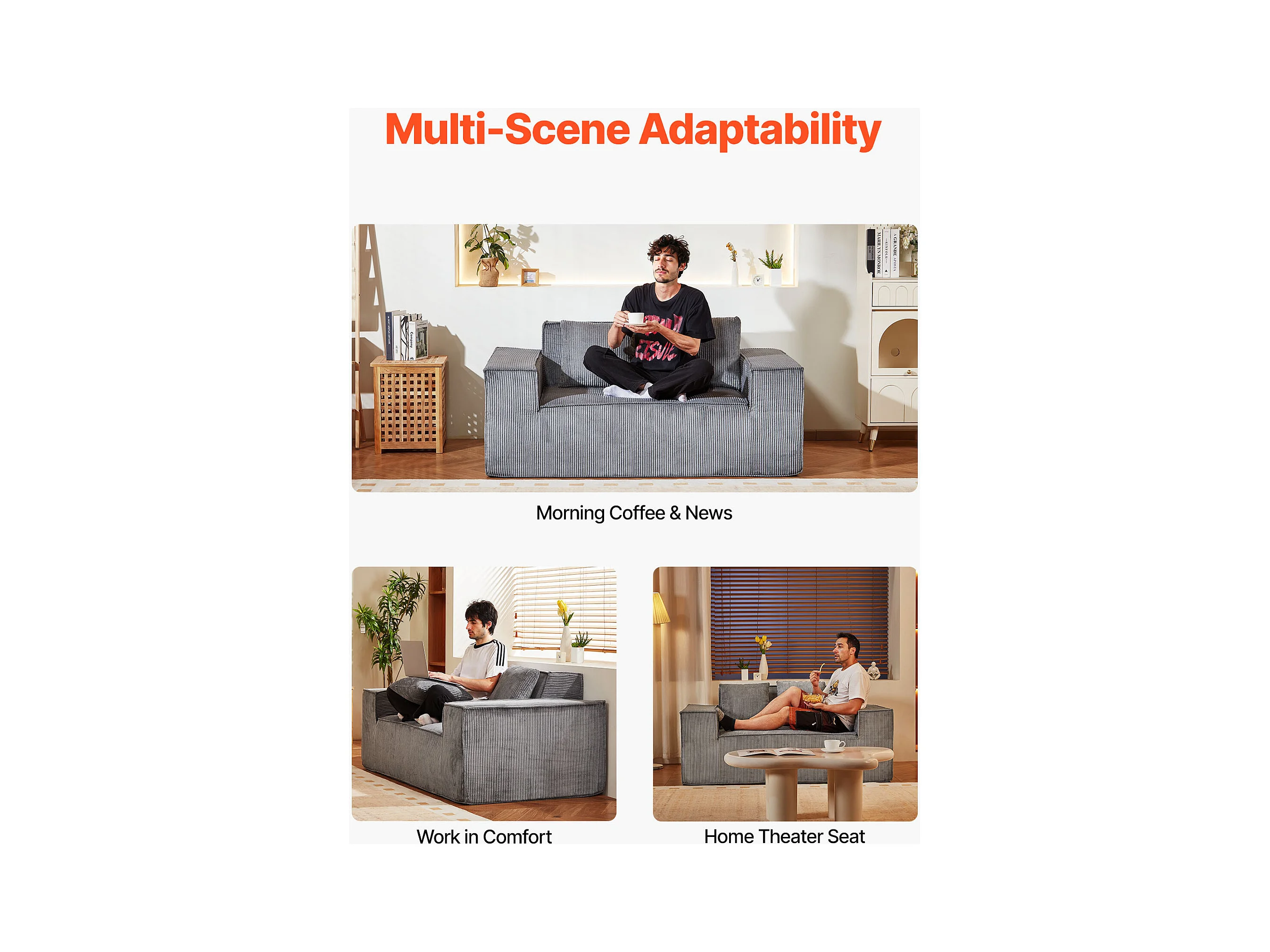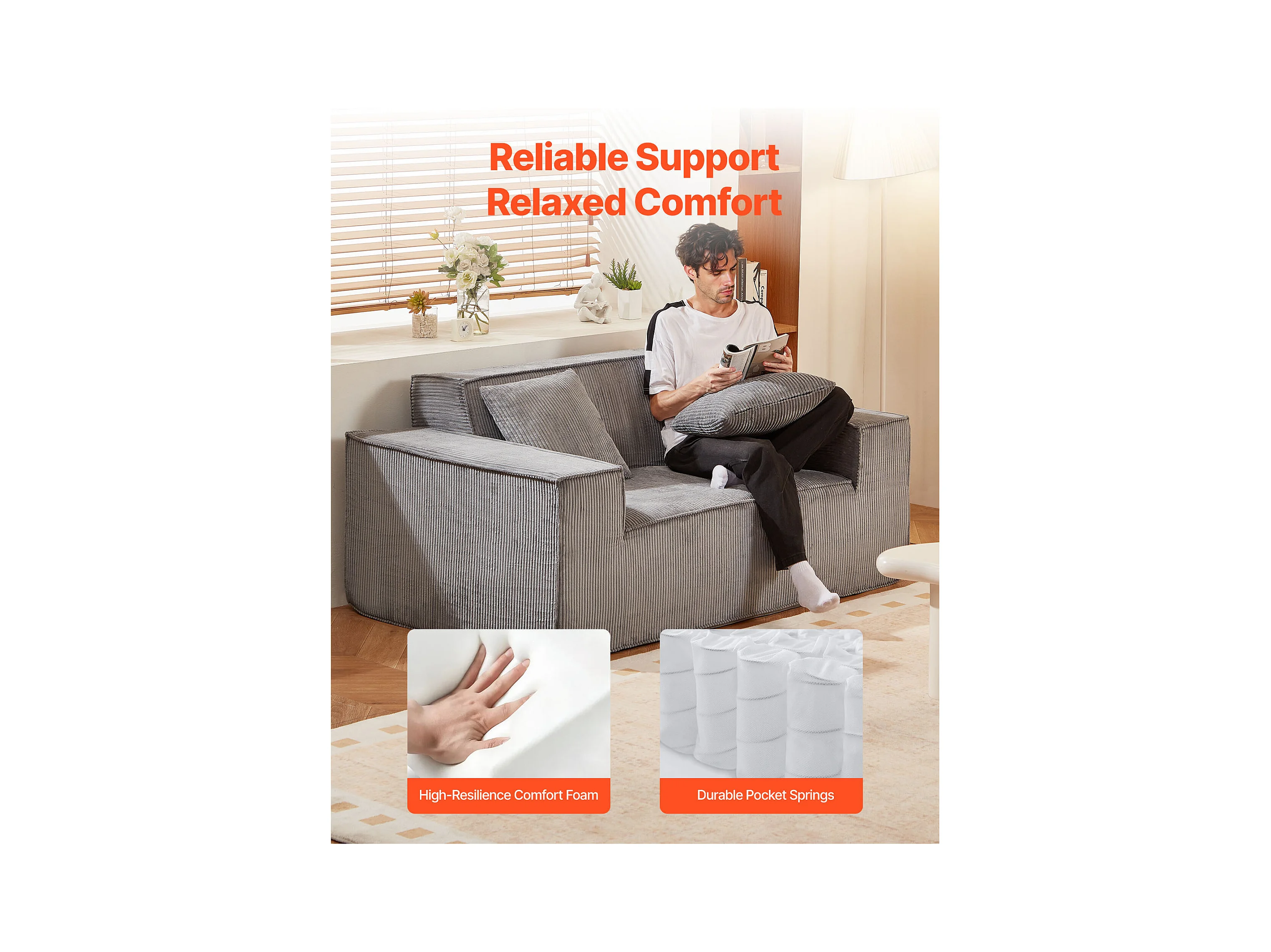 Canapé 2 Places SucceBuy 160cm, Canapé Moderne en Velours Côtelé avec Ressorts Ensachés, Coussins Confortables pour Salon, Bureau ou Appartement, Gris
