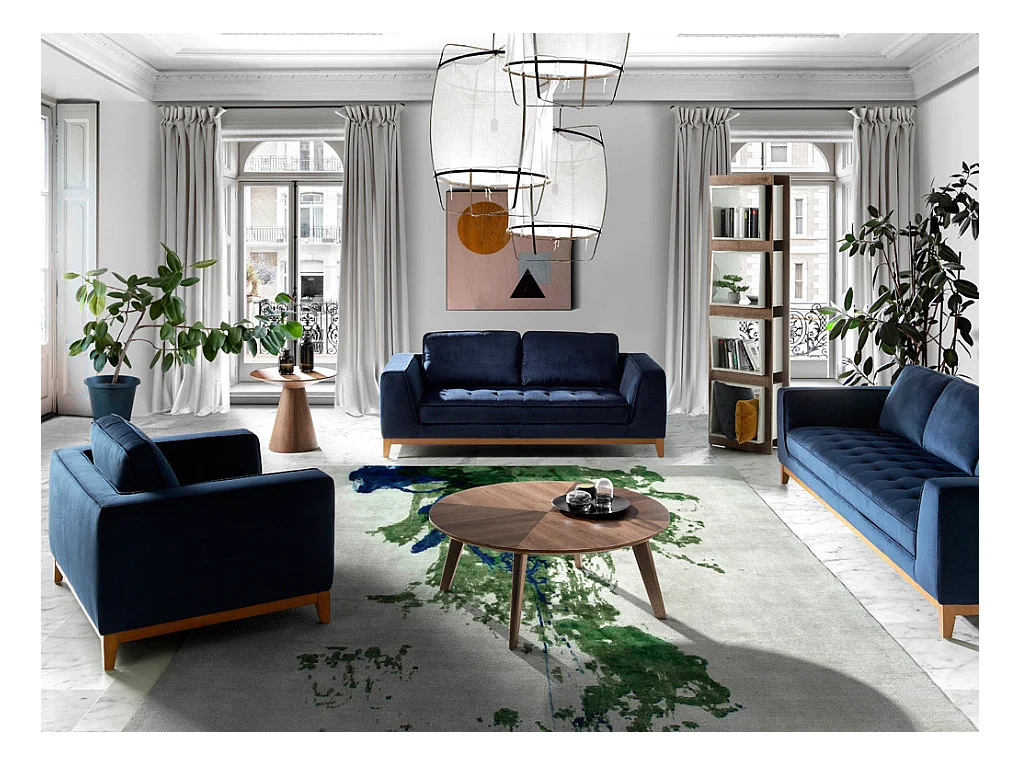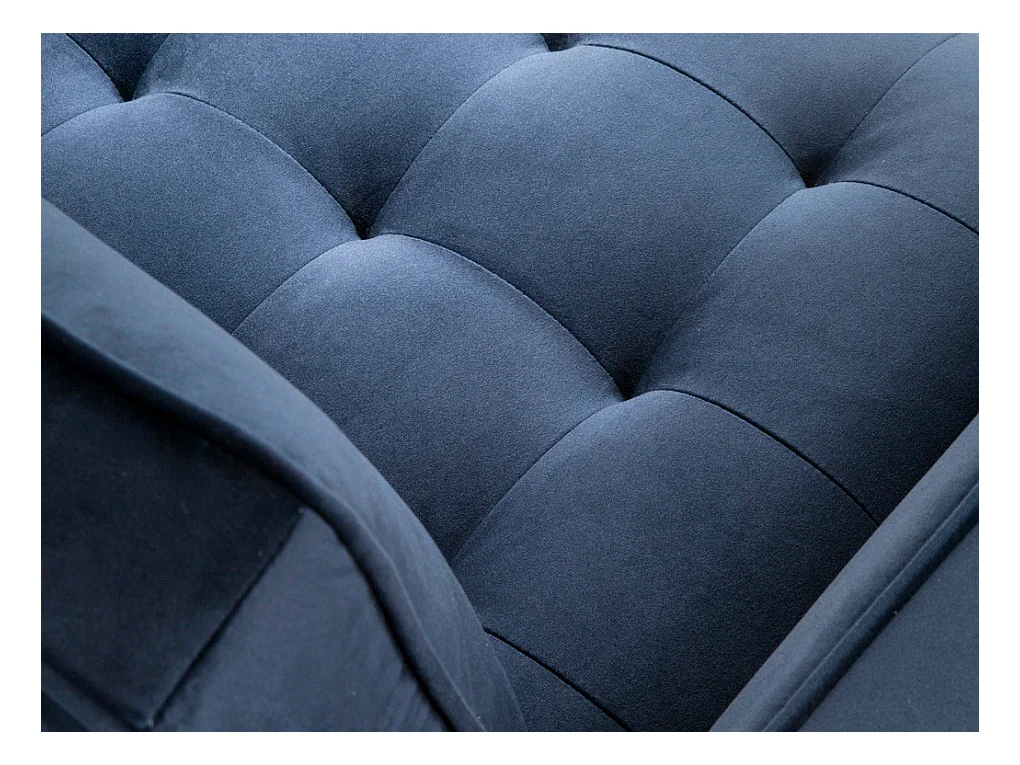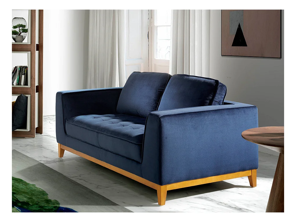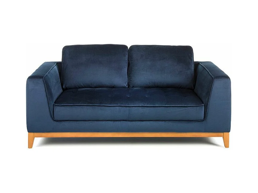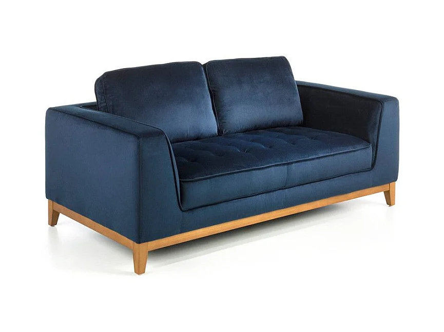 Canapé 2 places tissu bleu effet velours et bois de noyer Hastin