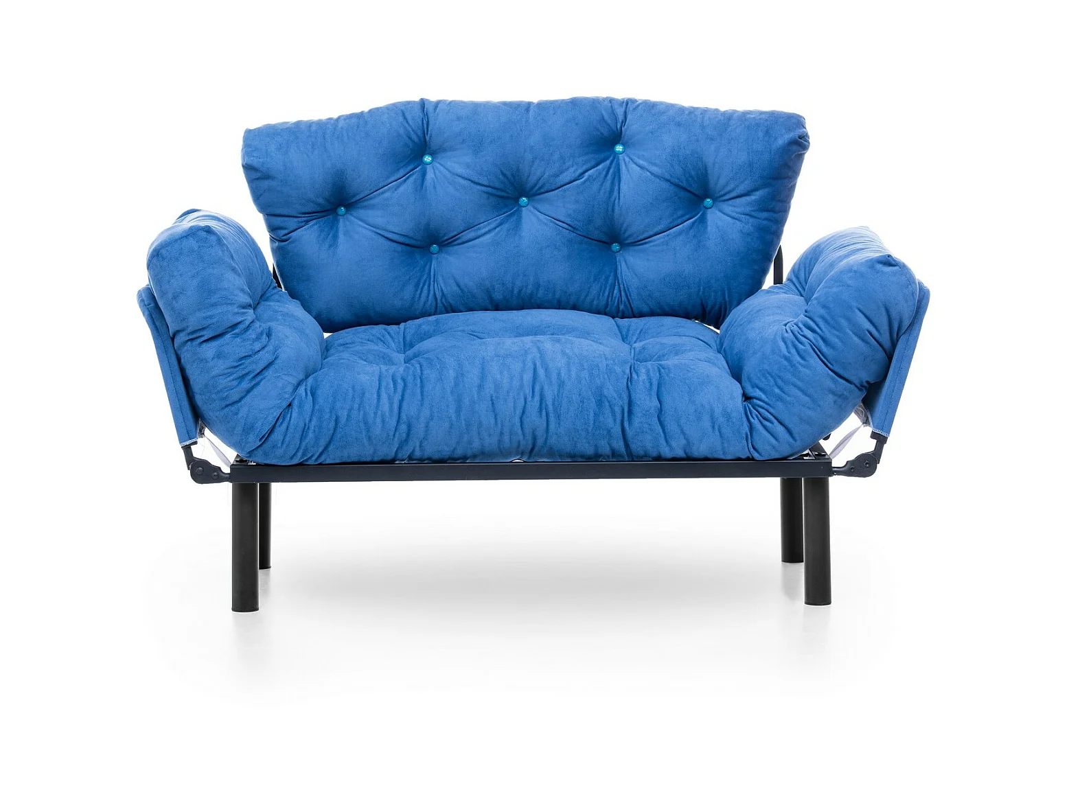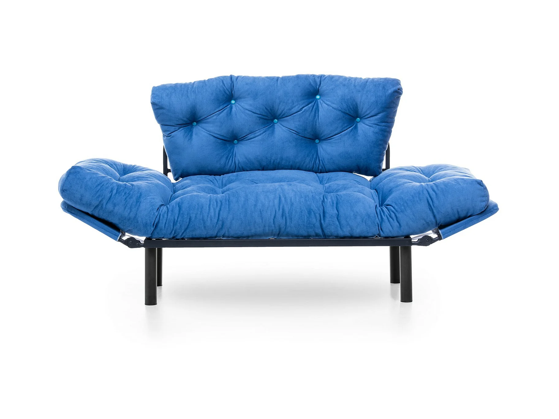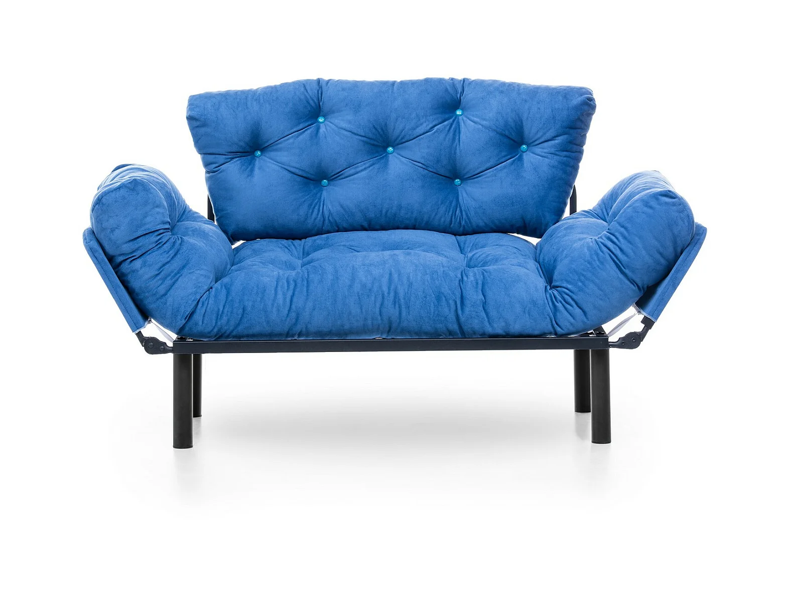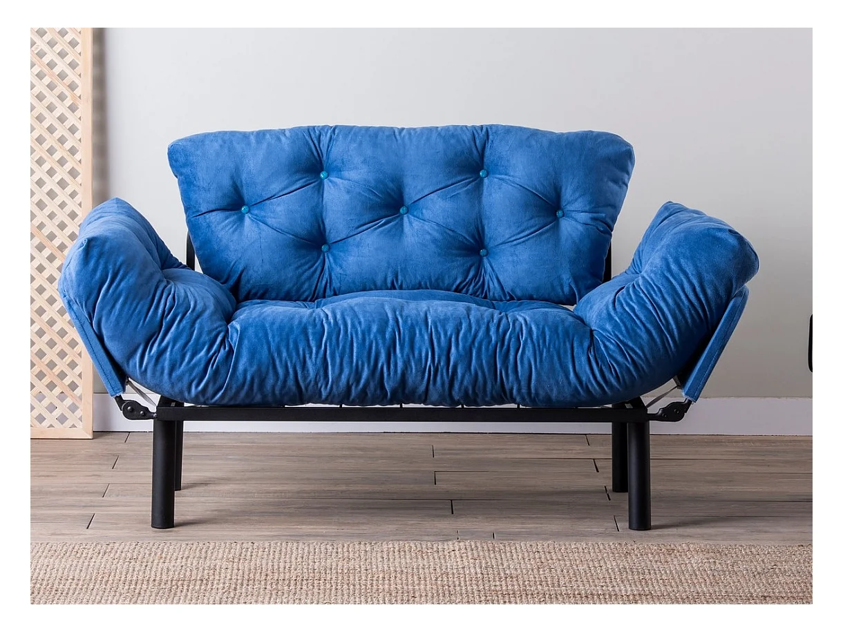 Canapé 2 places transformable en lit tissu bleu Pliaz 155cm