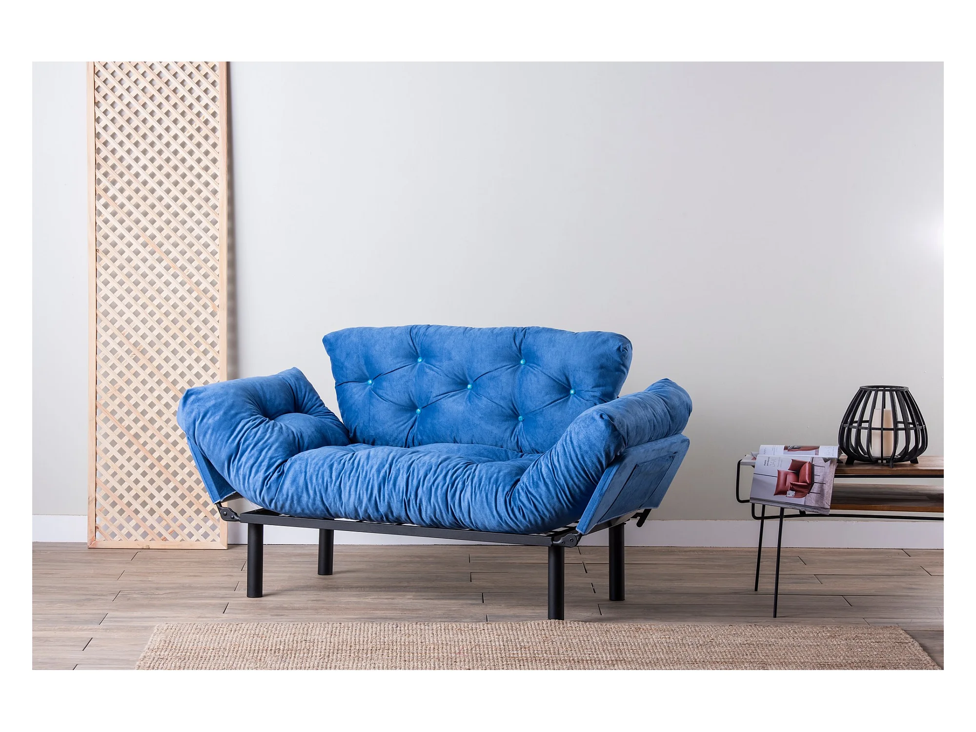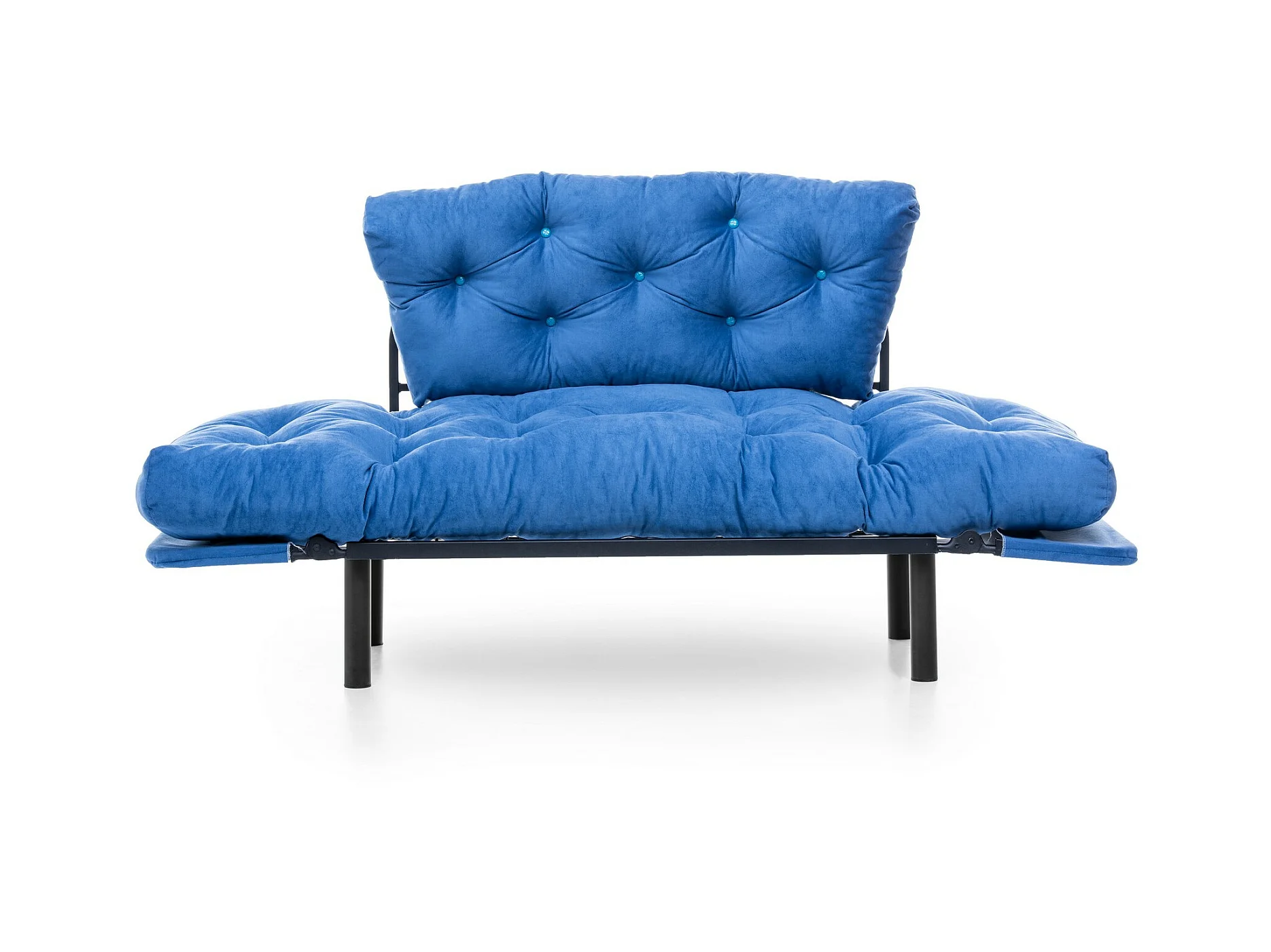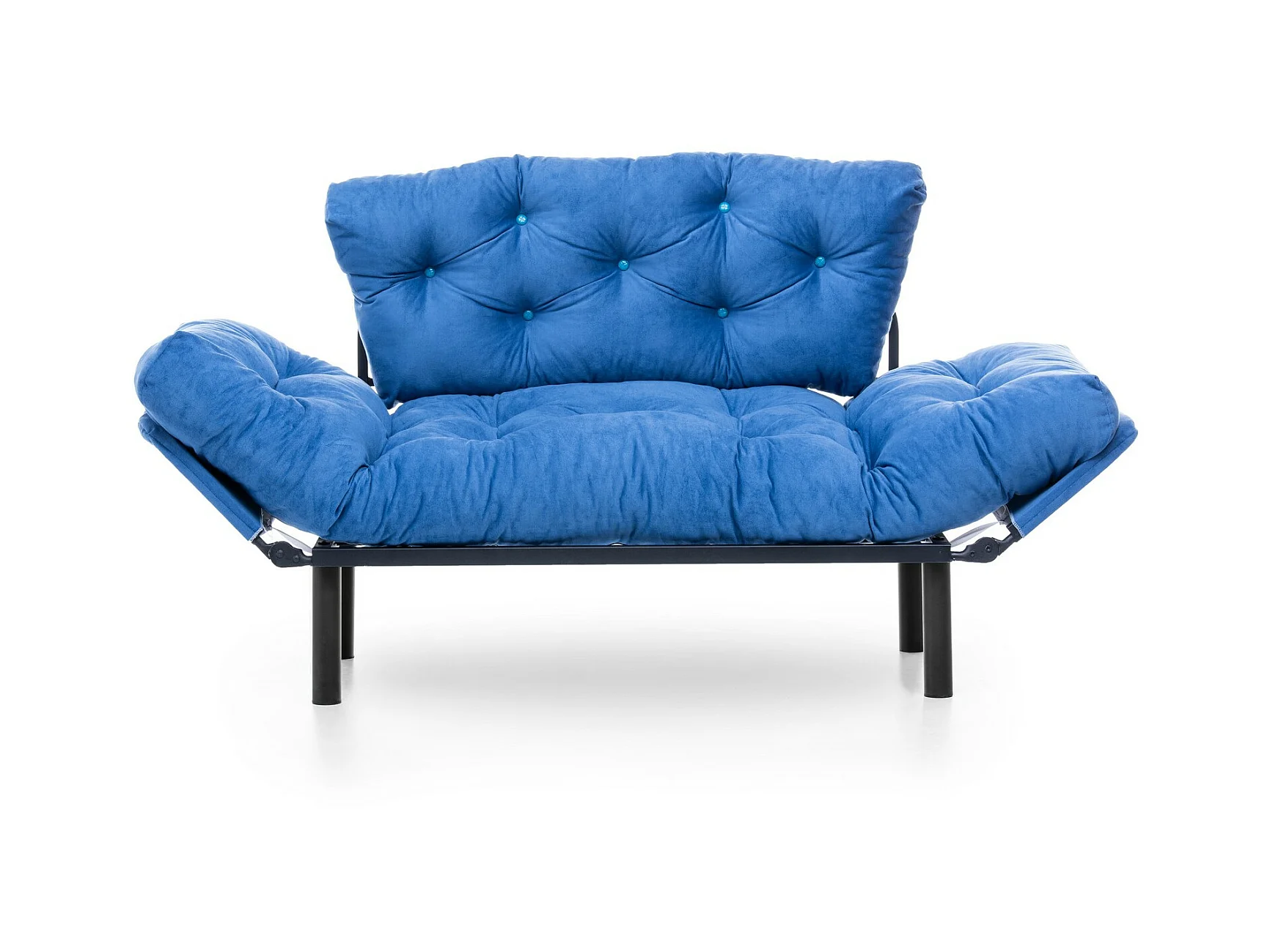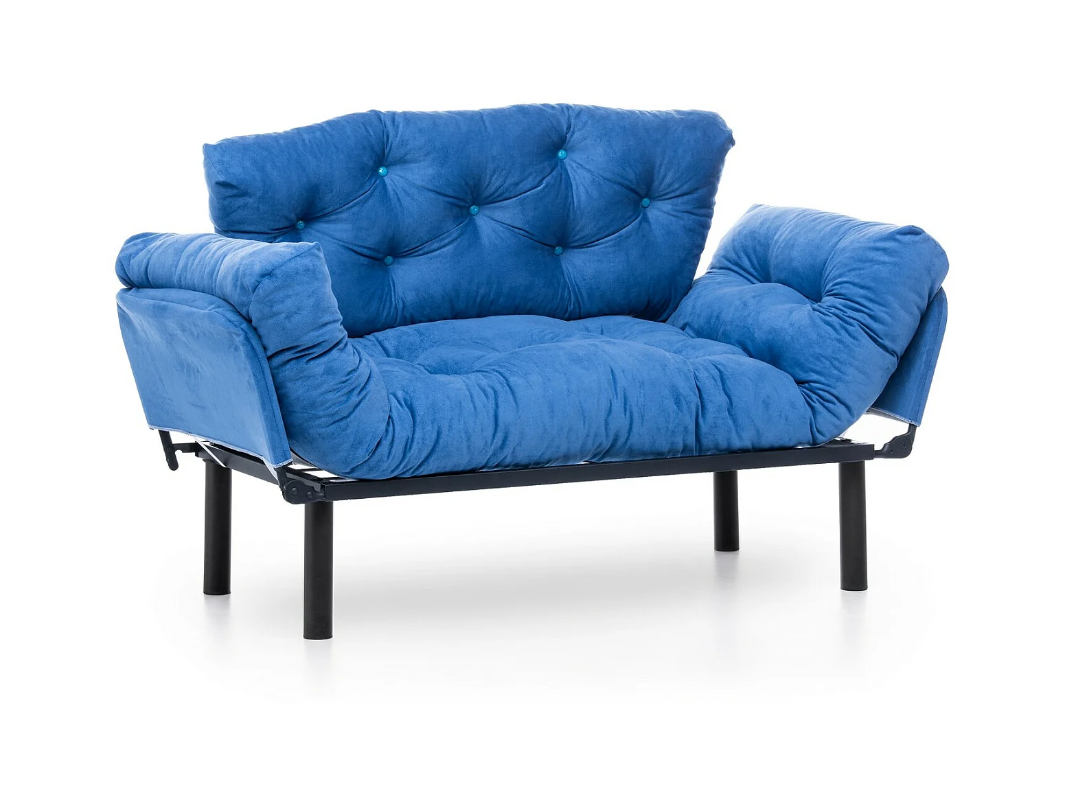 Canapé 2 places transformable en lit tissu bleu Pliaz 155cm
