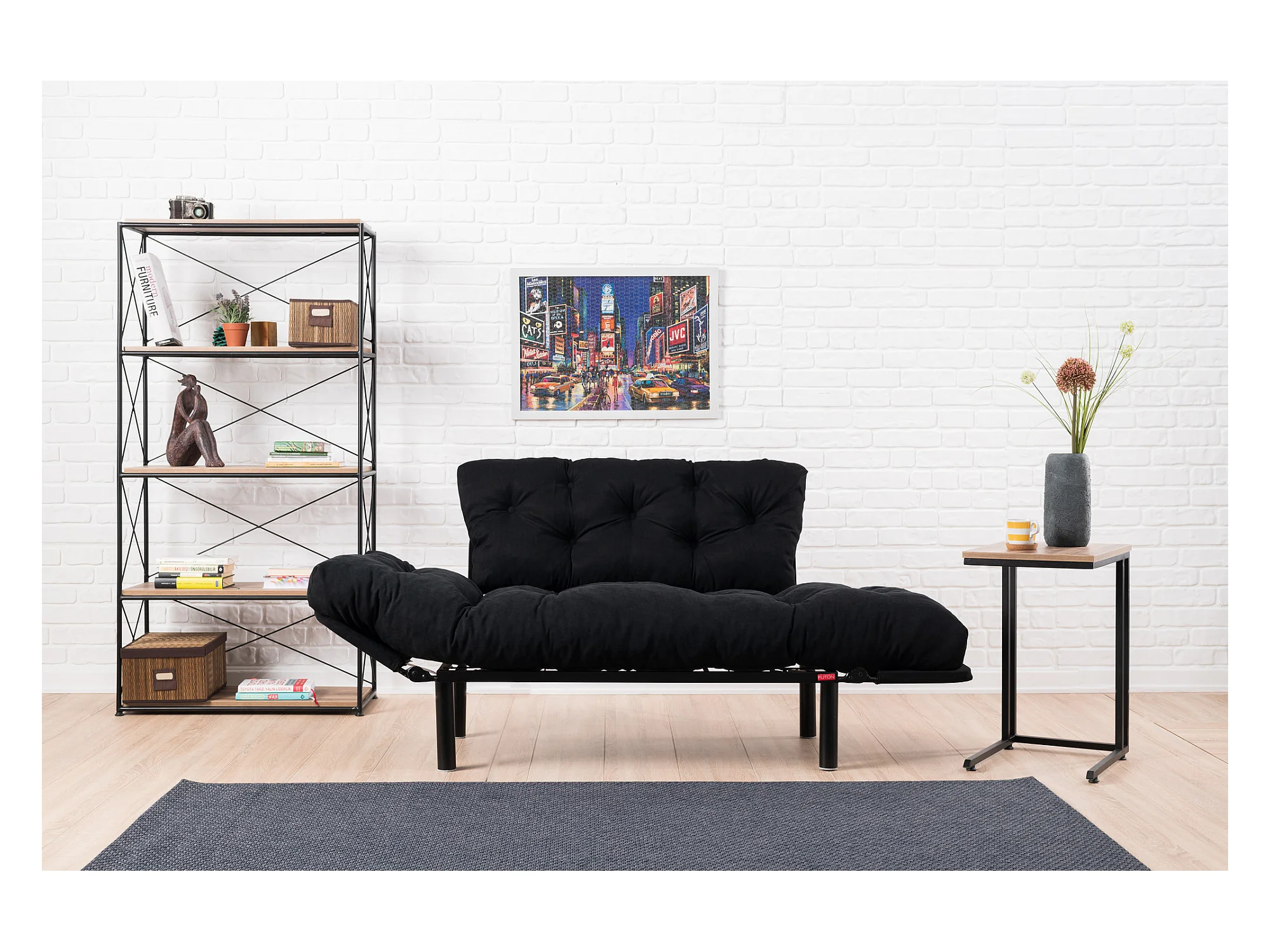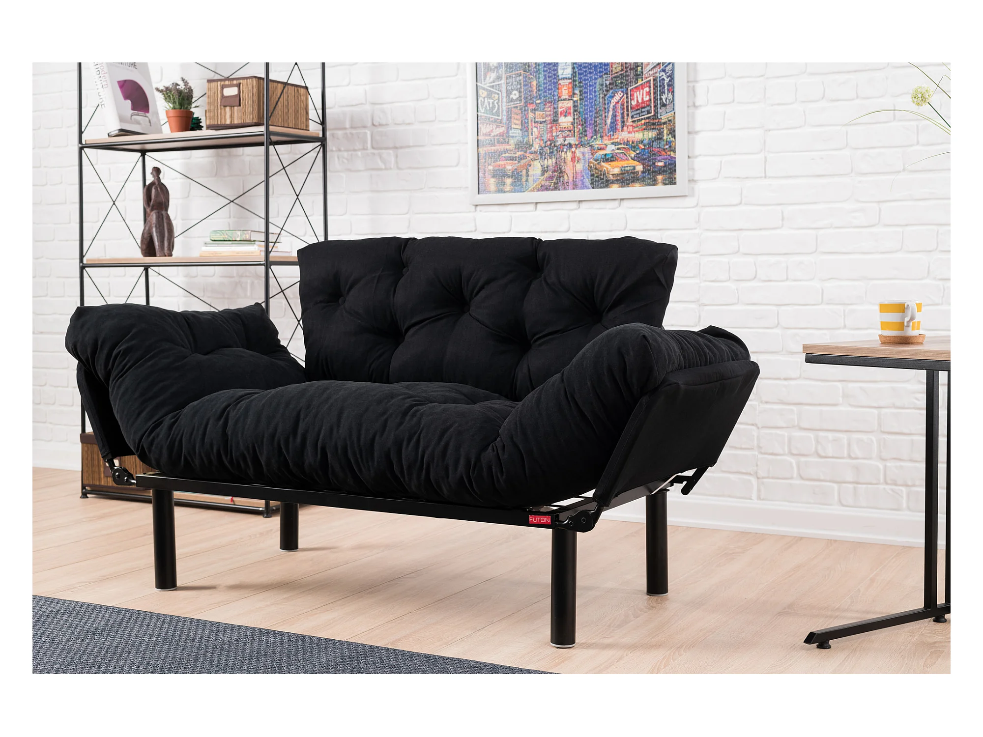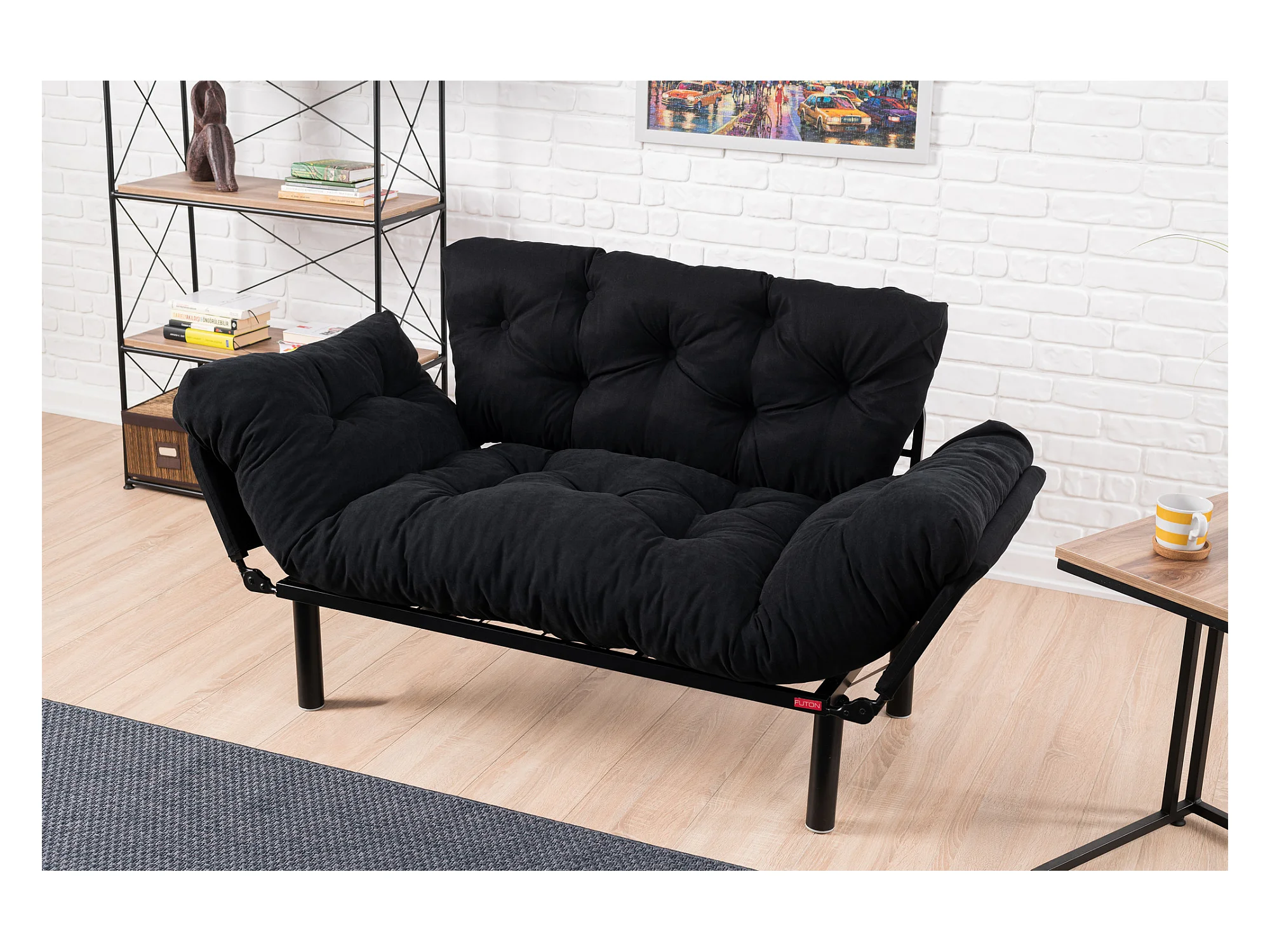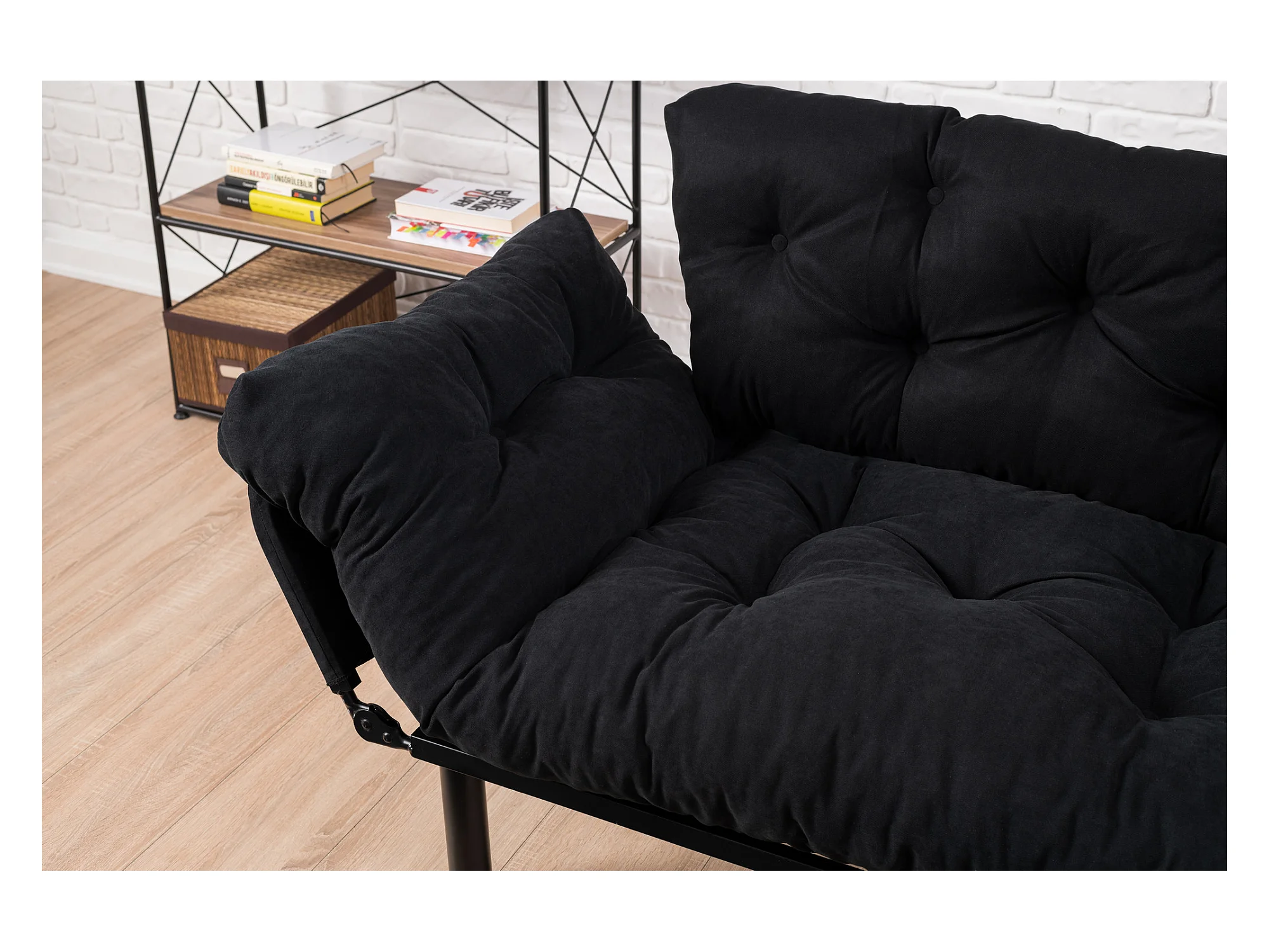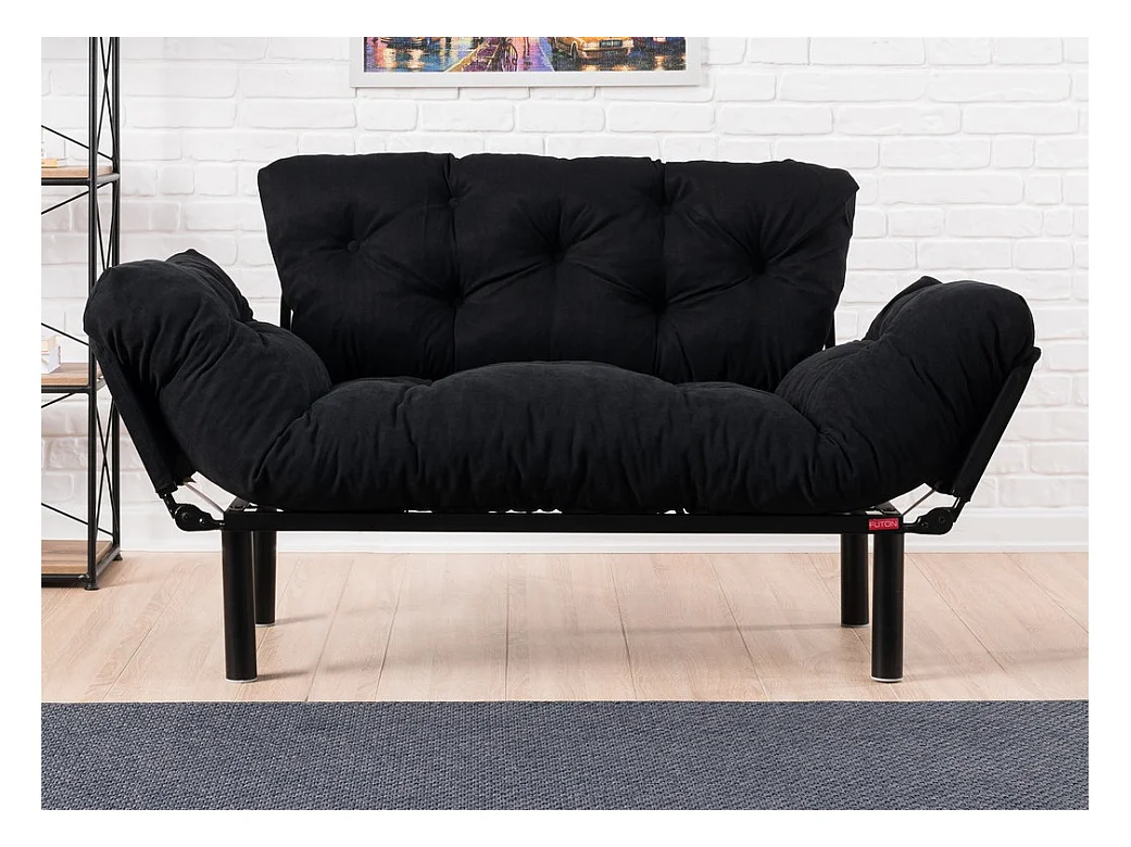 Canapé 2 places transformable en lit tissu noir Pliaz 155cm
