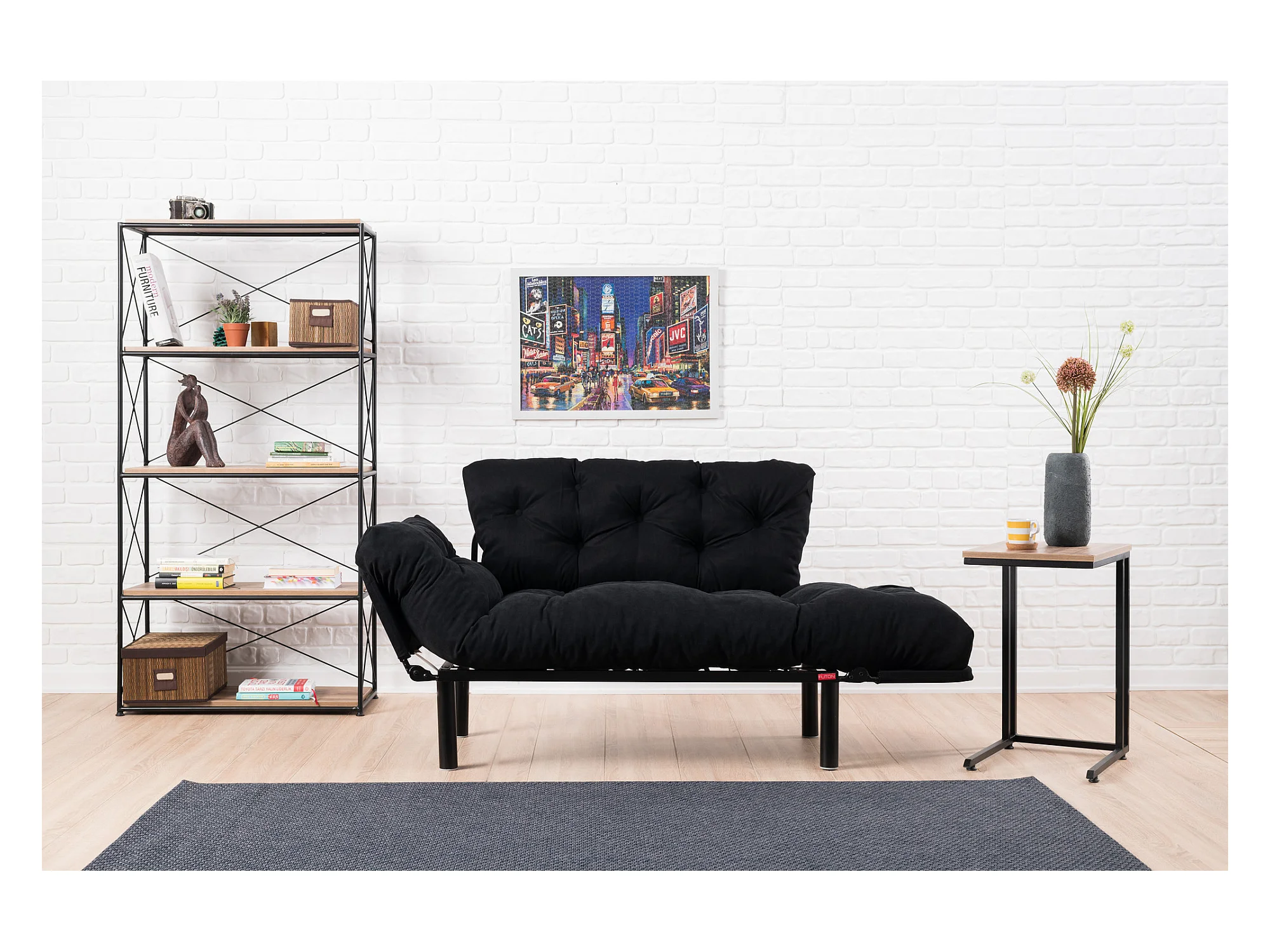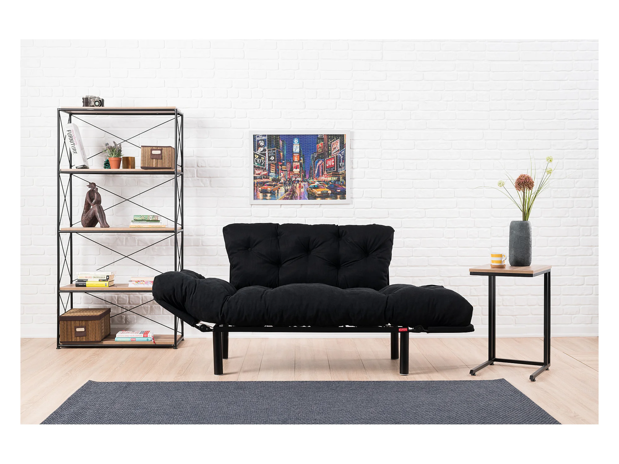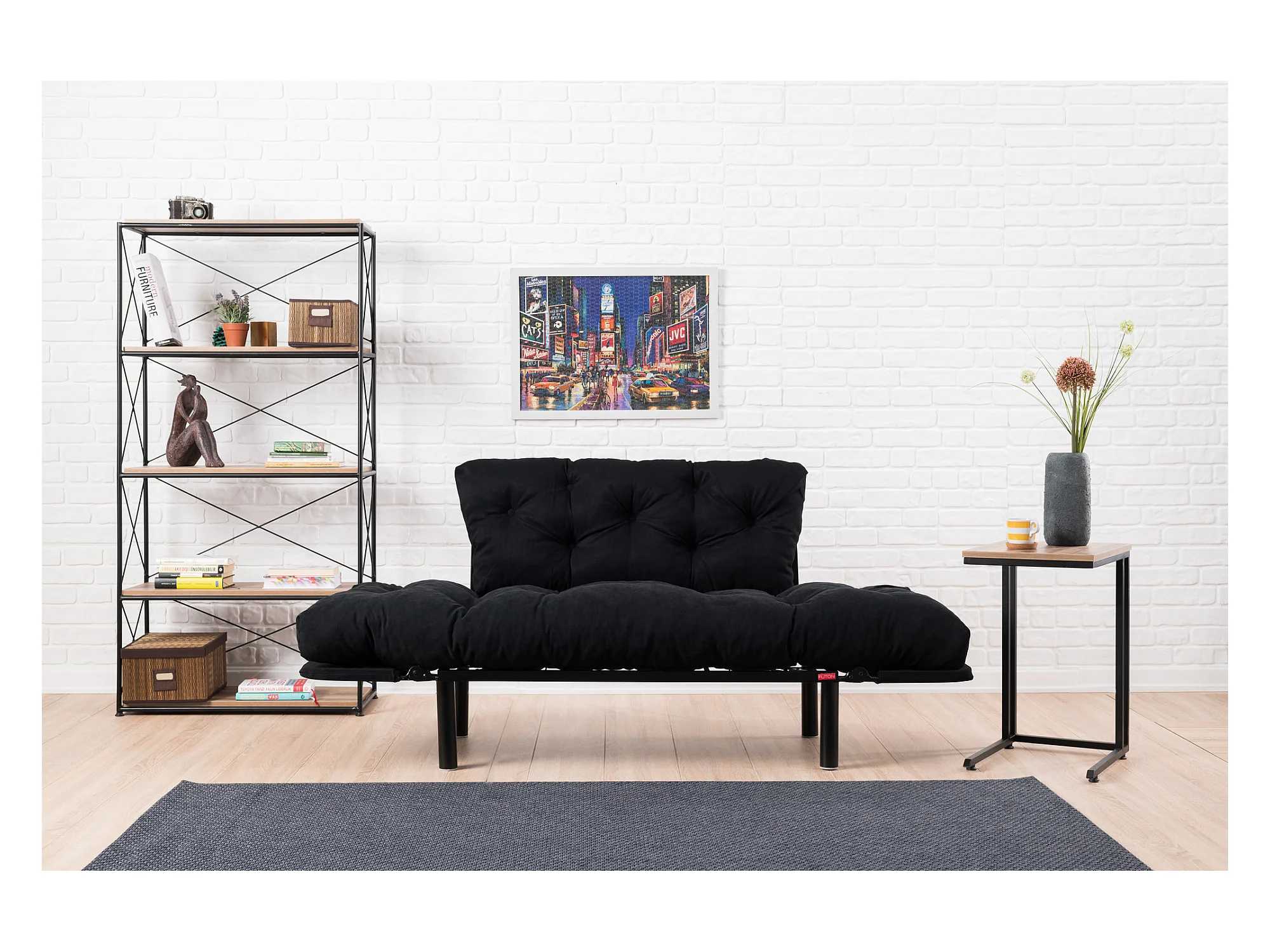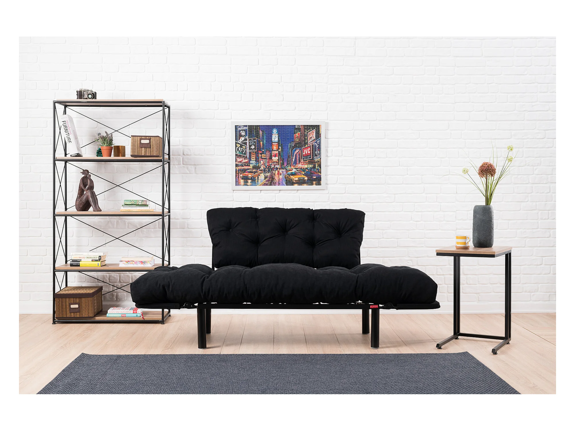 Canapé 2 places transformable en lit tissu noir Pliaz 155cm