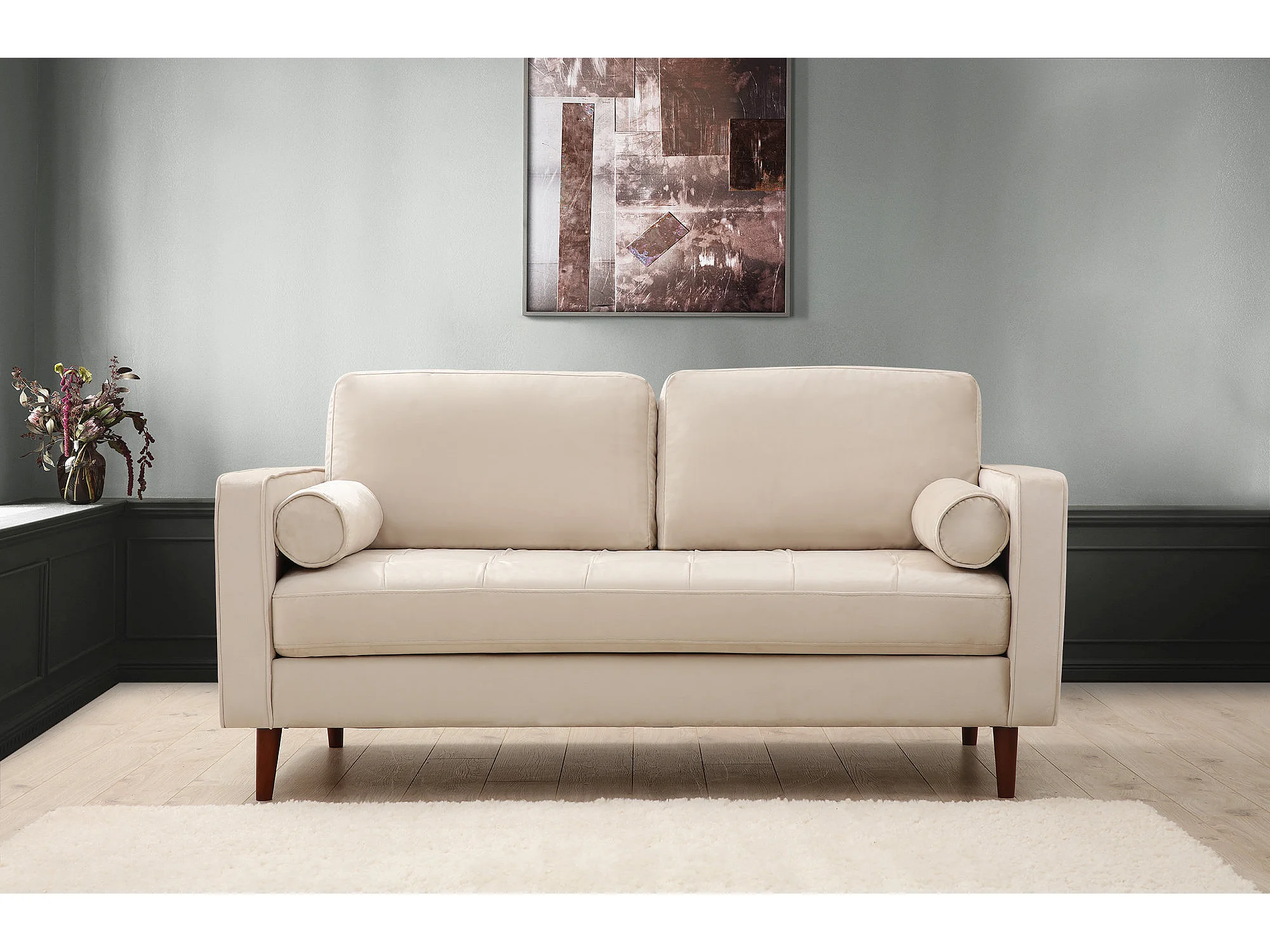 Canapé 2 places velours beige Romuza 175cm